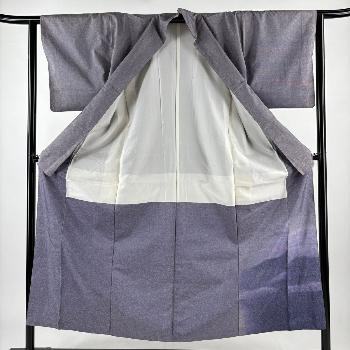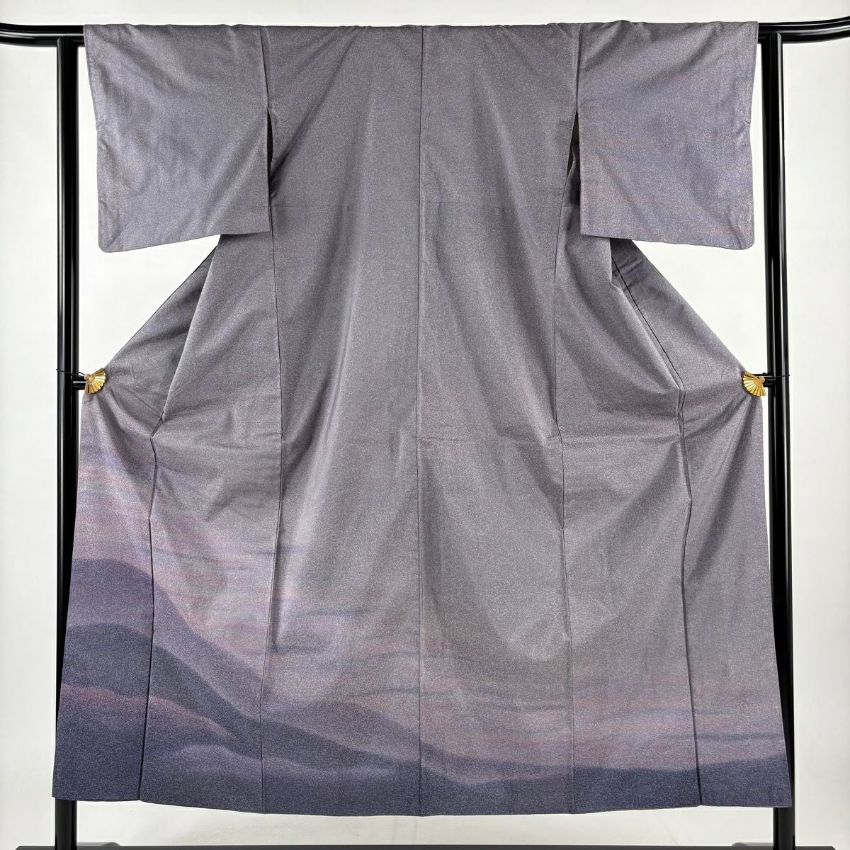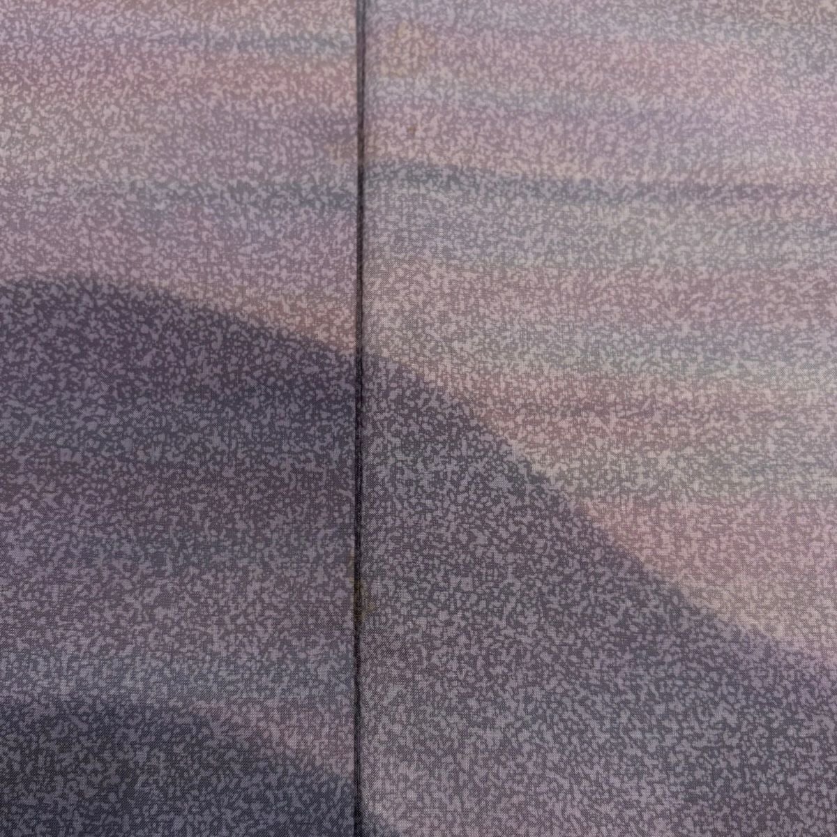 【在庫一掃】 付下げ 身丈152cm 裄丈63cm S 袷 紬地 山並み 霞 ぼかし 灰紫 正絹 秀品