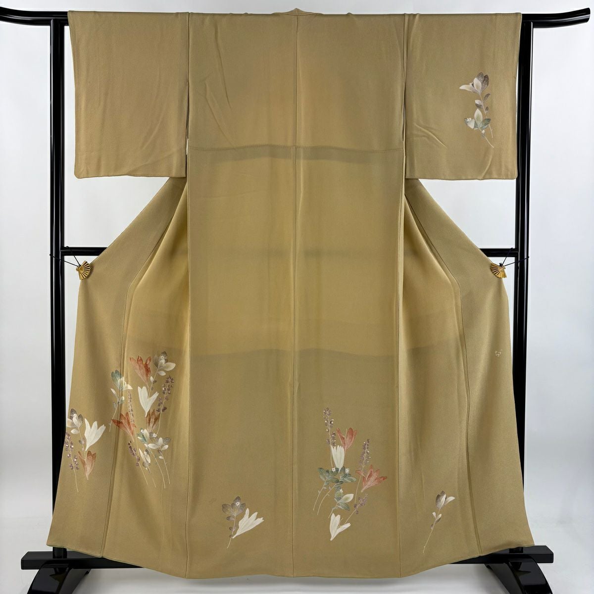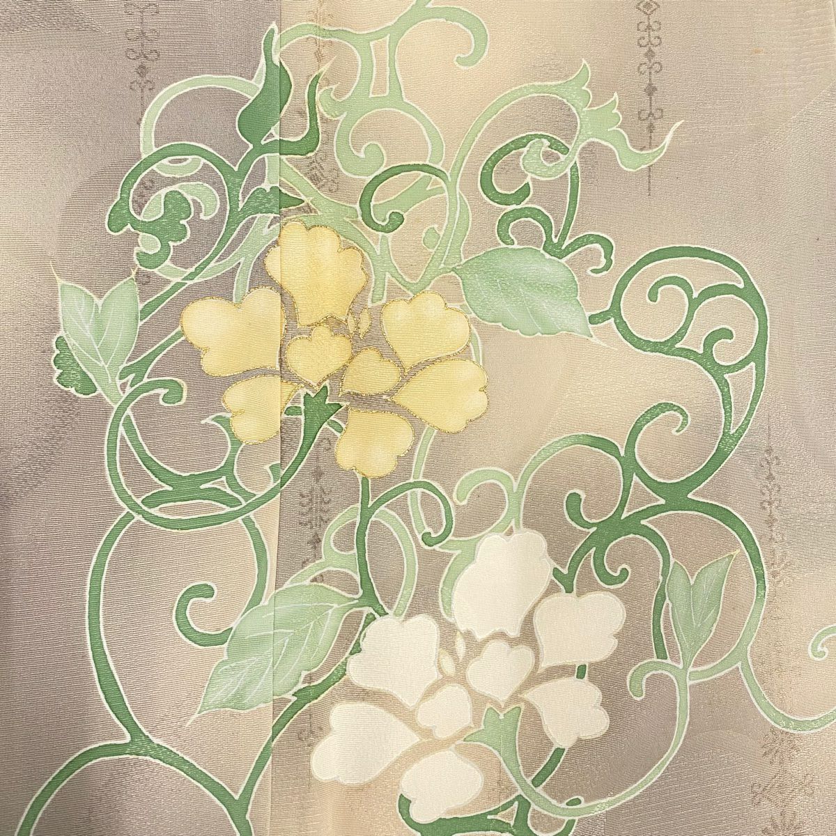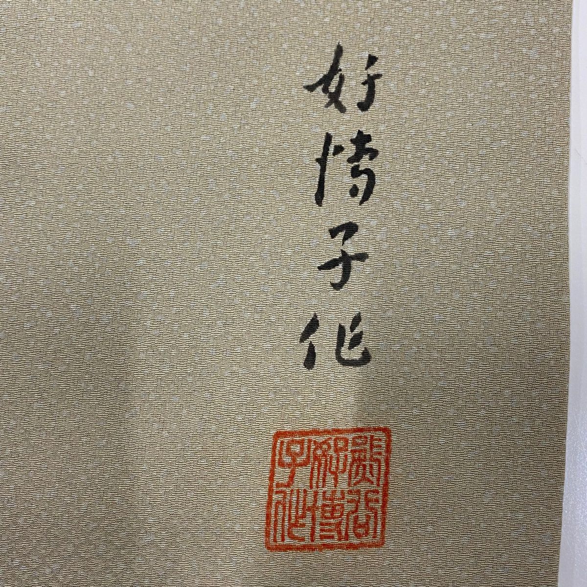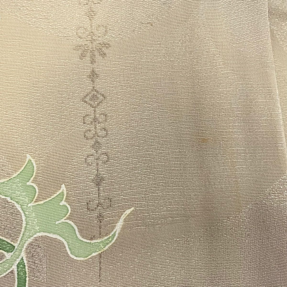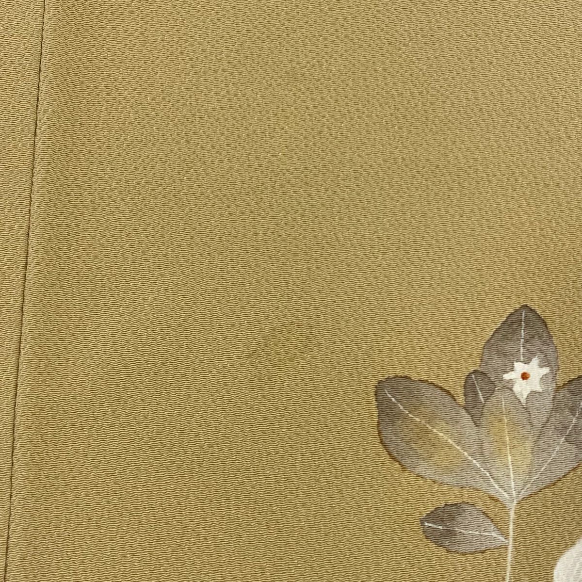 【在庫一掃】 付下げ 身丈162cm 裄丈62cm S 袷 落款あり 草花 ちりめん 薄黄土色 正絹 秀品