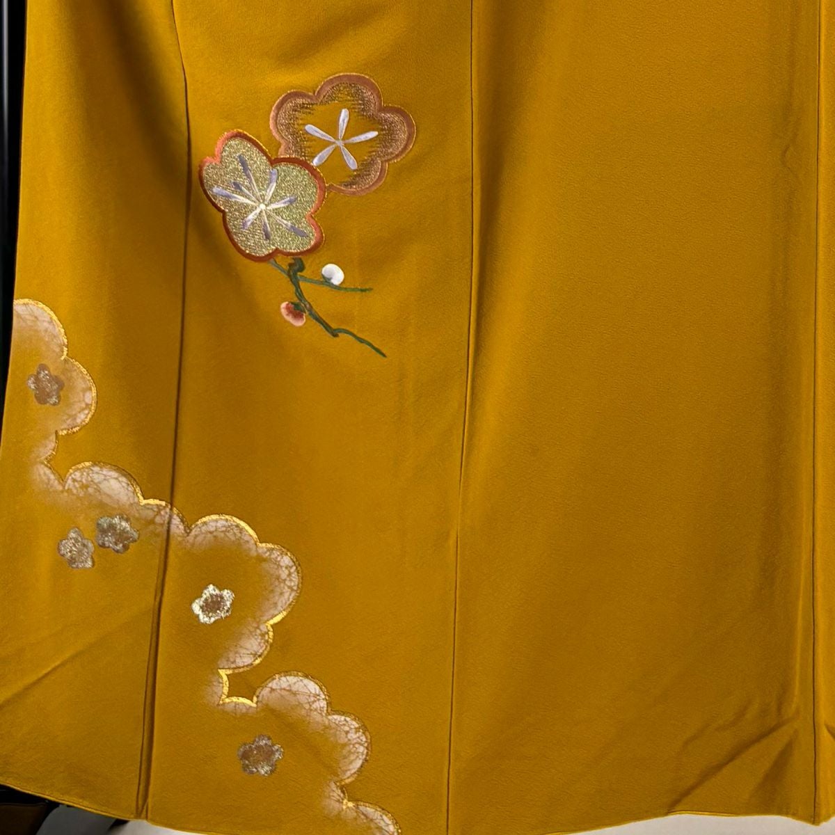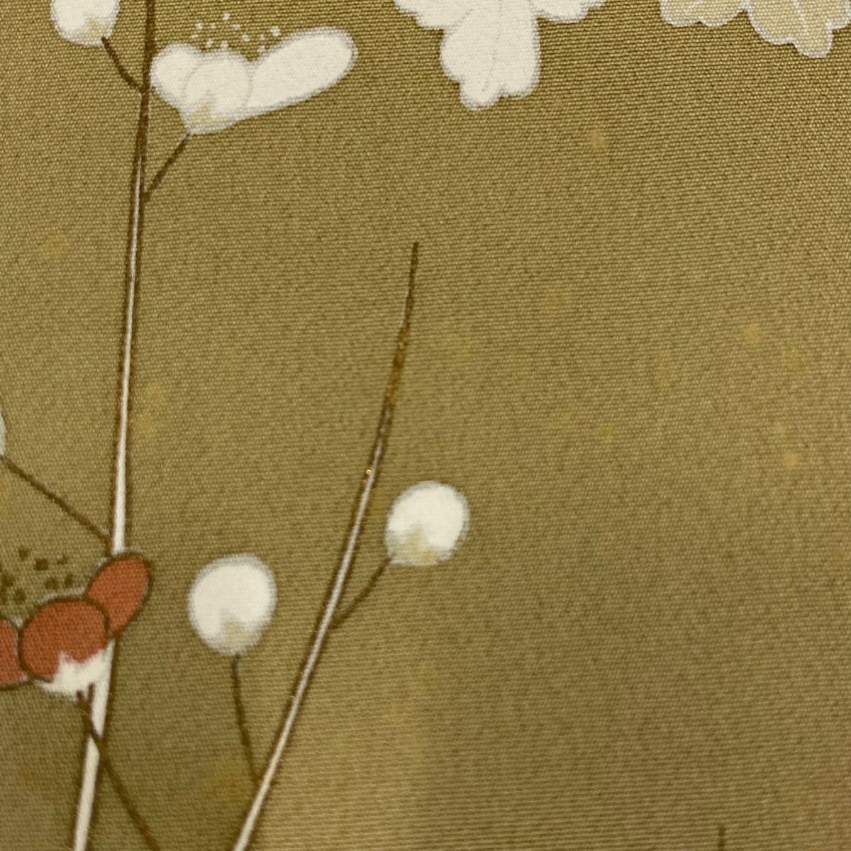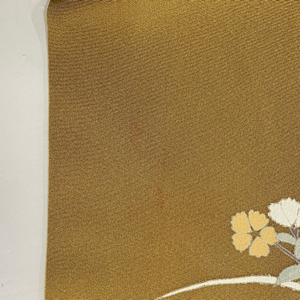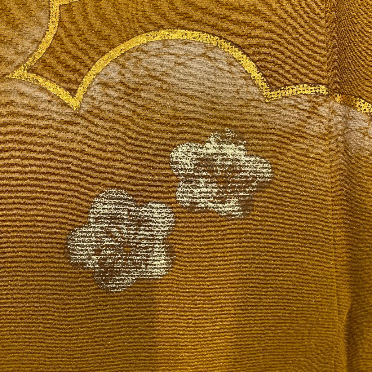 【在庫一掃】 付下げ 身丈161cm 裄丈65.5cm M 袷 梅 刺繍 金銀彩 山吹茶色 正絹 秀品