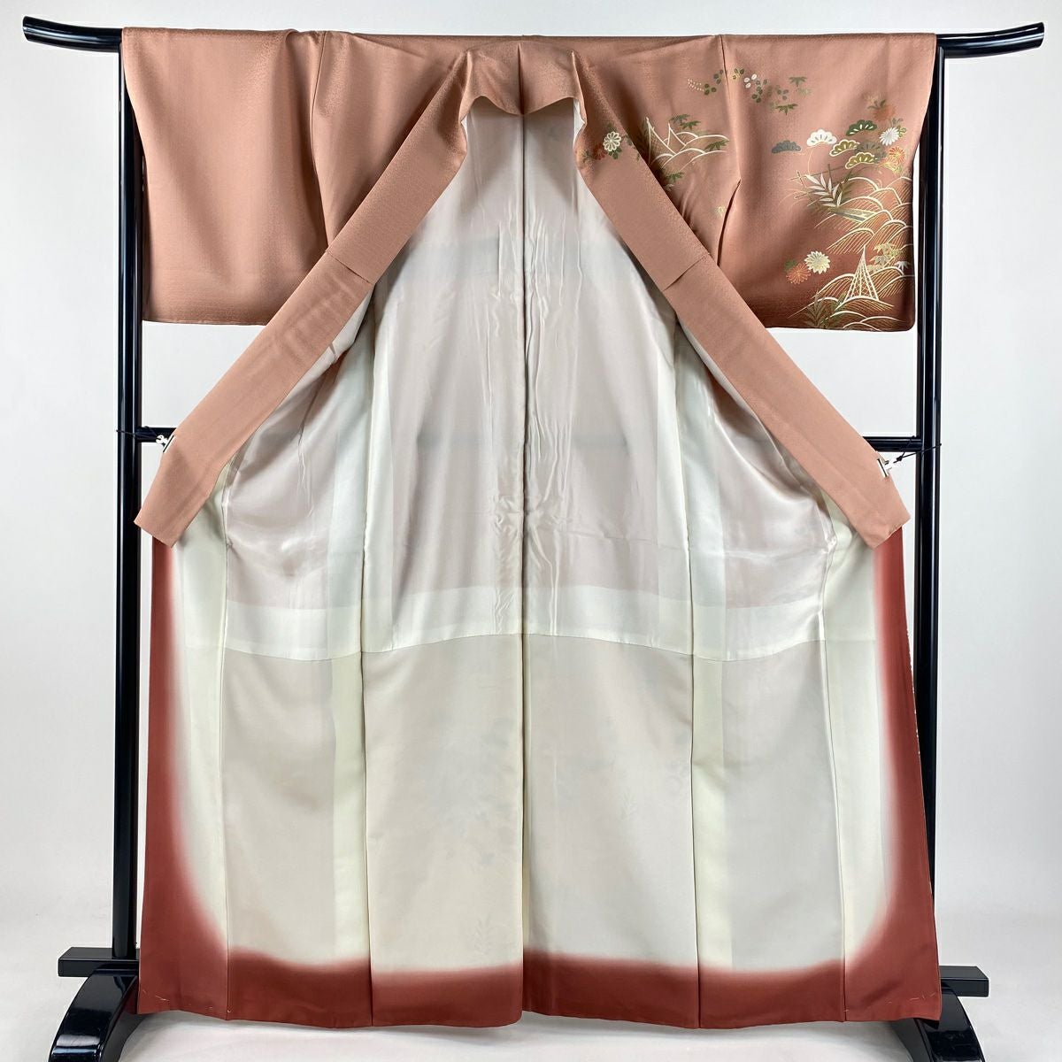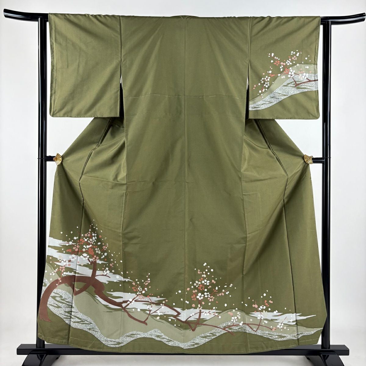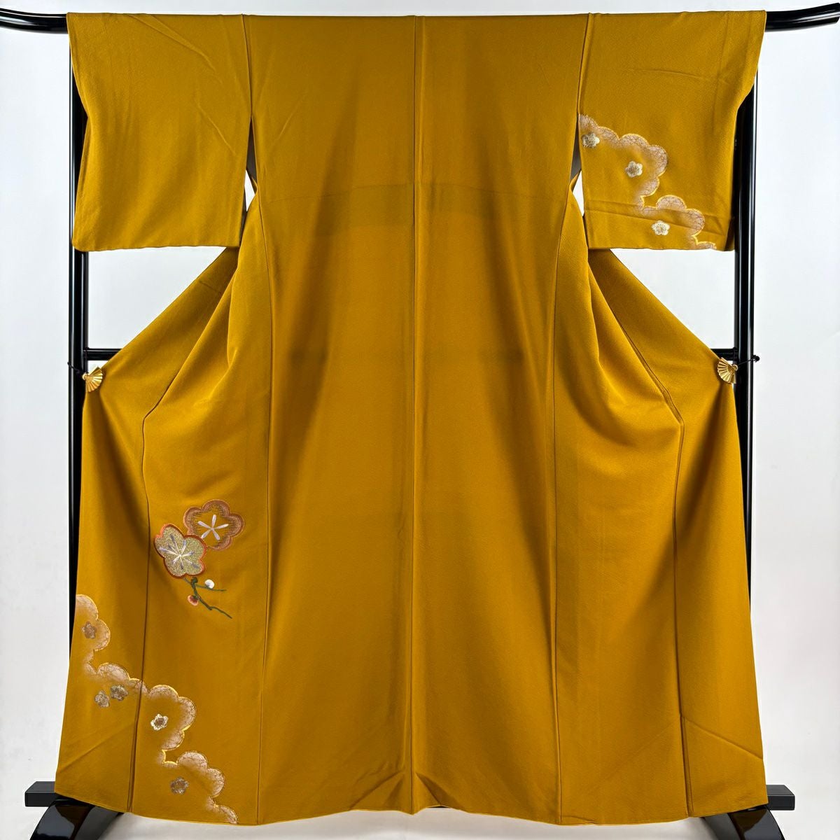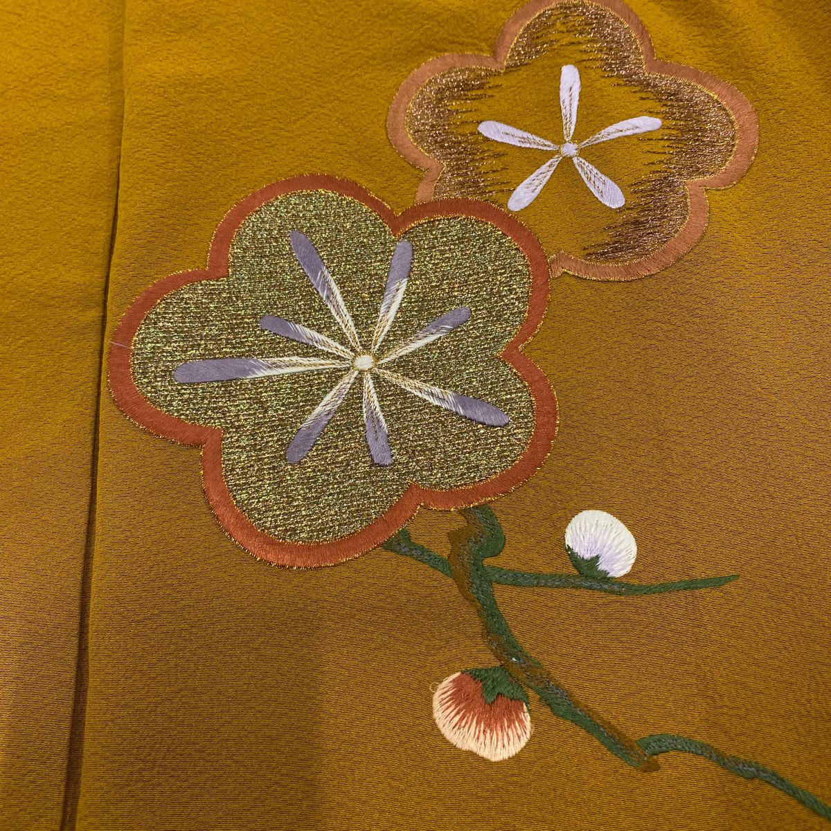 【在庫一掃】 付下げ 身丈161cm 裄丈65.5cm M 袷 梅 刺繍 金銀彩 山吹茶色 正絹 秀品