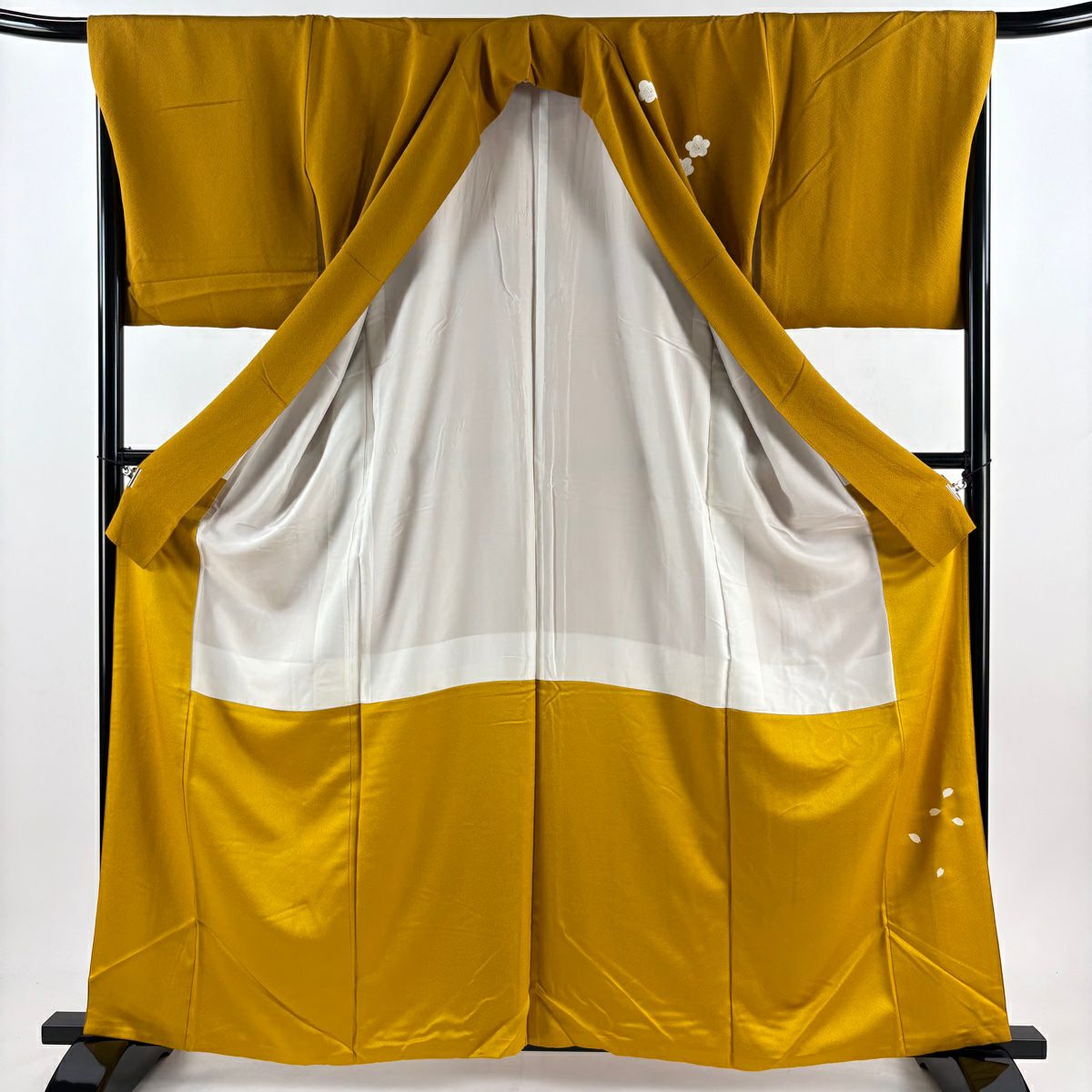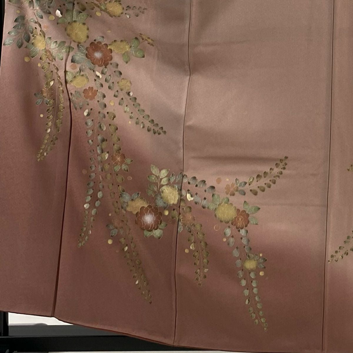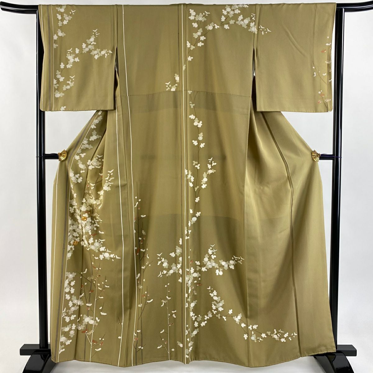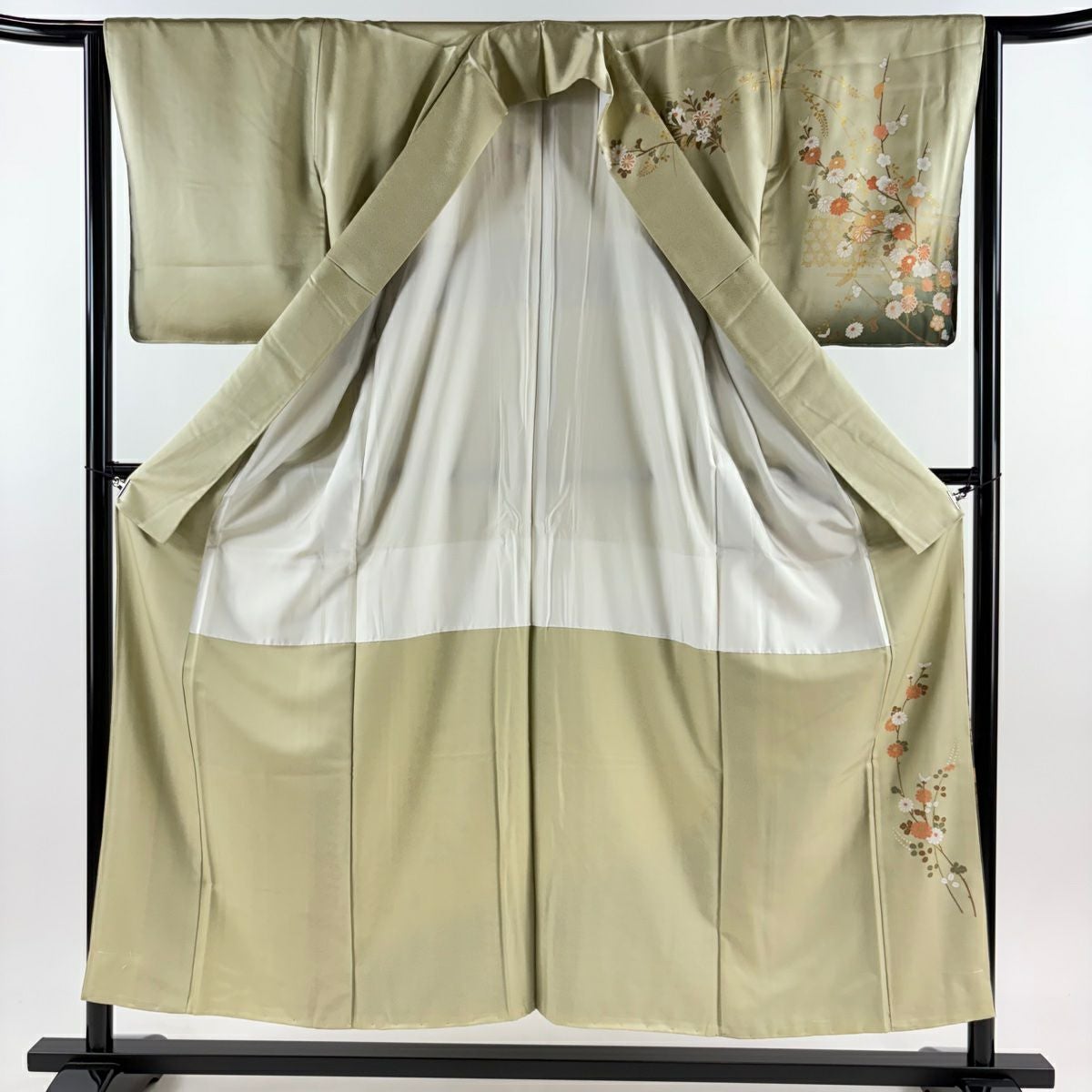 【在庫一掃】 付下げ 身丈161cm 裄丈65.5cm M 袷 梅 刺繍 金銀彩 山吹茶色 正絹 秀品