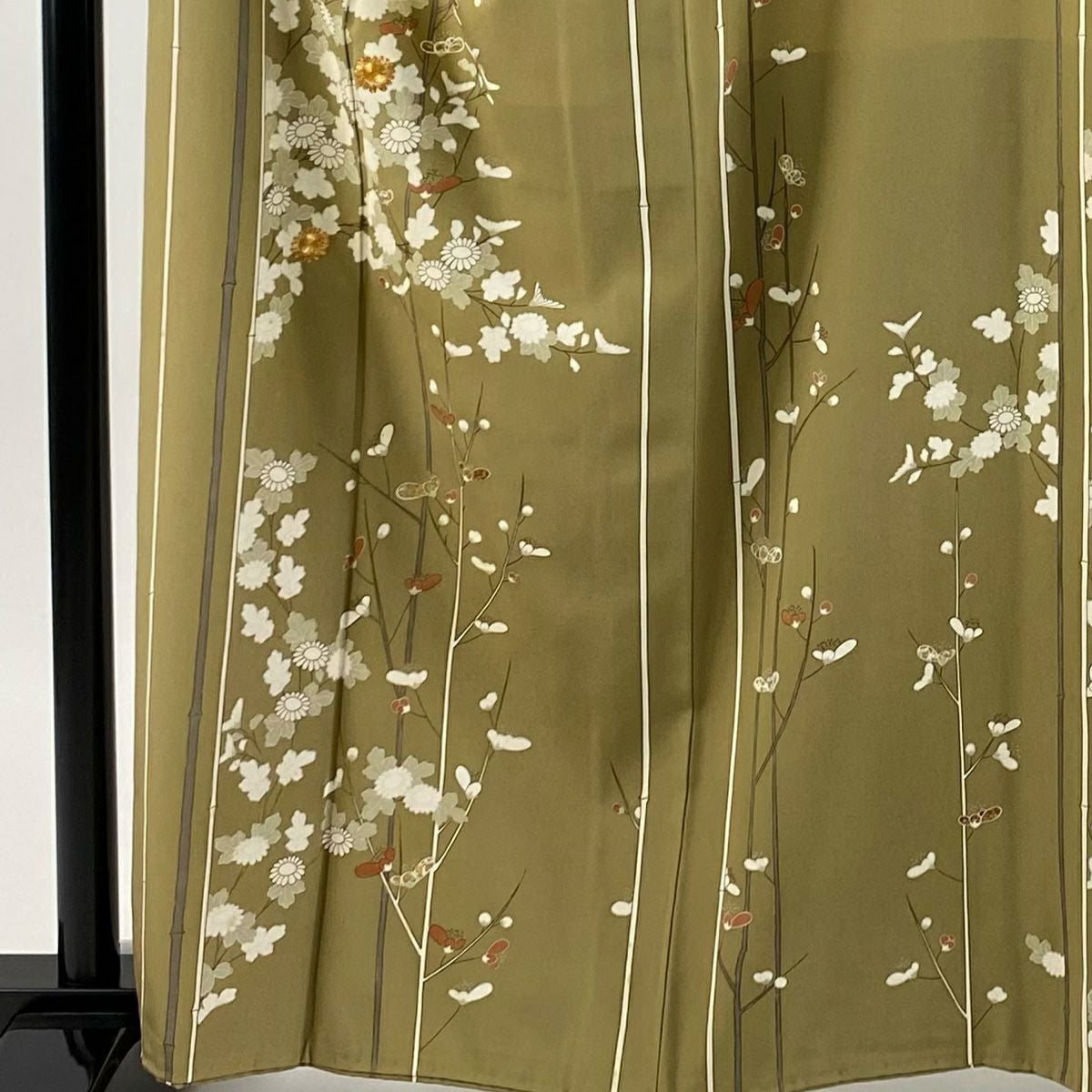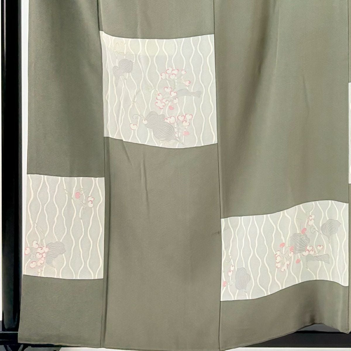 【在庫一掃】 【美品】 付下げ 身丈160cm 裄丈62cm S 袷 紬地 枝花 霞 茶緑色 正絹 秀品