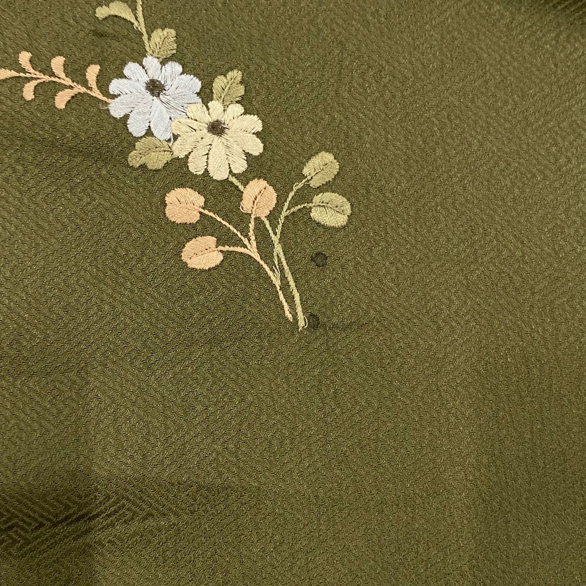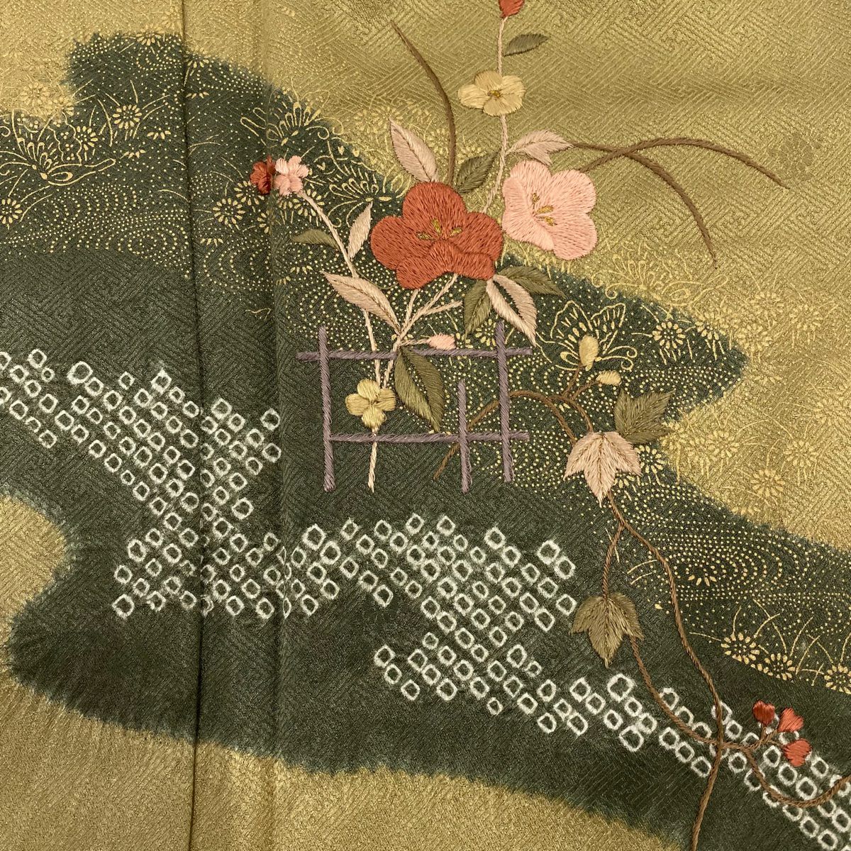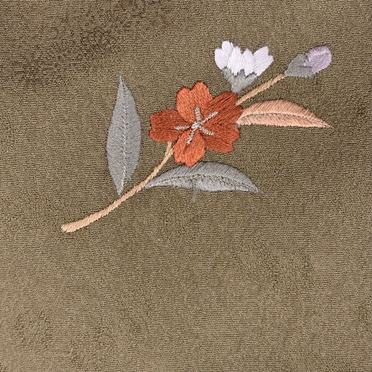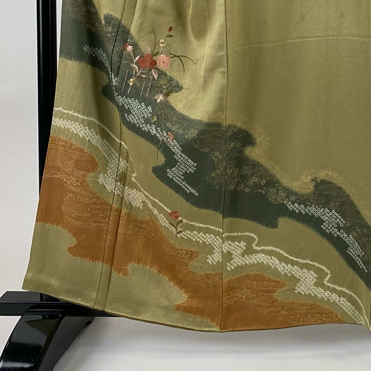 【在庫一掃】 付下げ 身丈155.5cm 裄丈67cm M 袷 菊 萩 刺繍 絞り 茶緑色 正絹 秀品