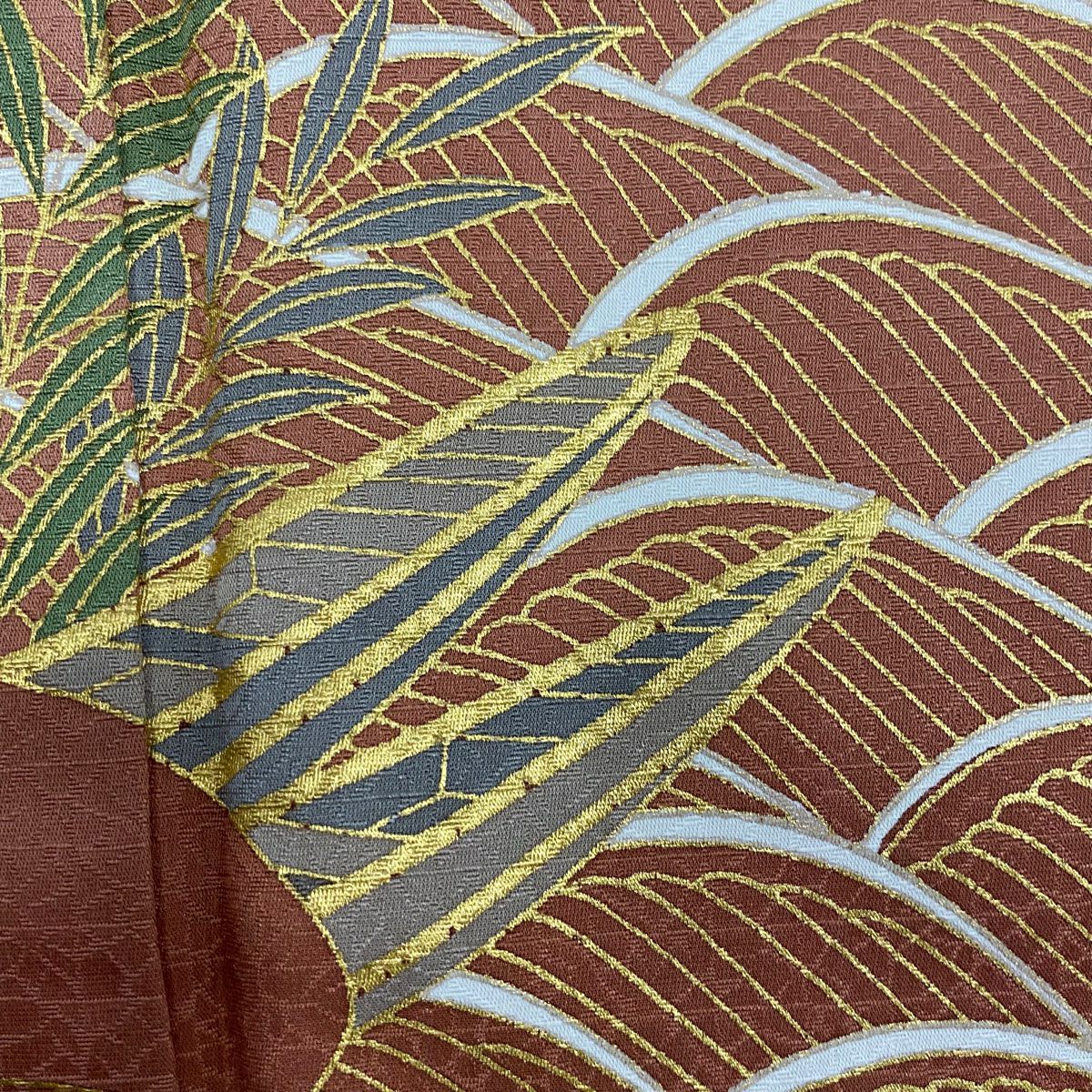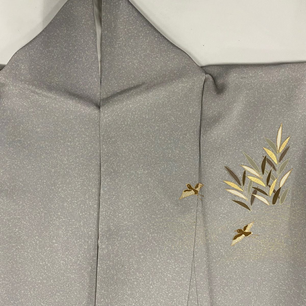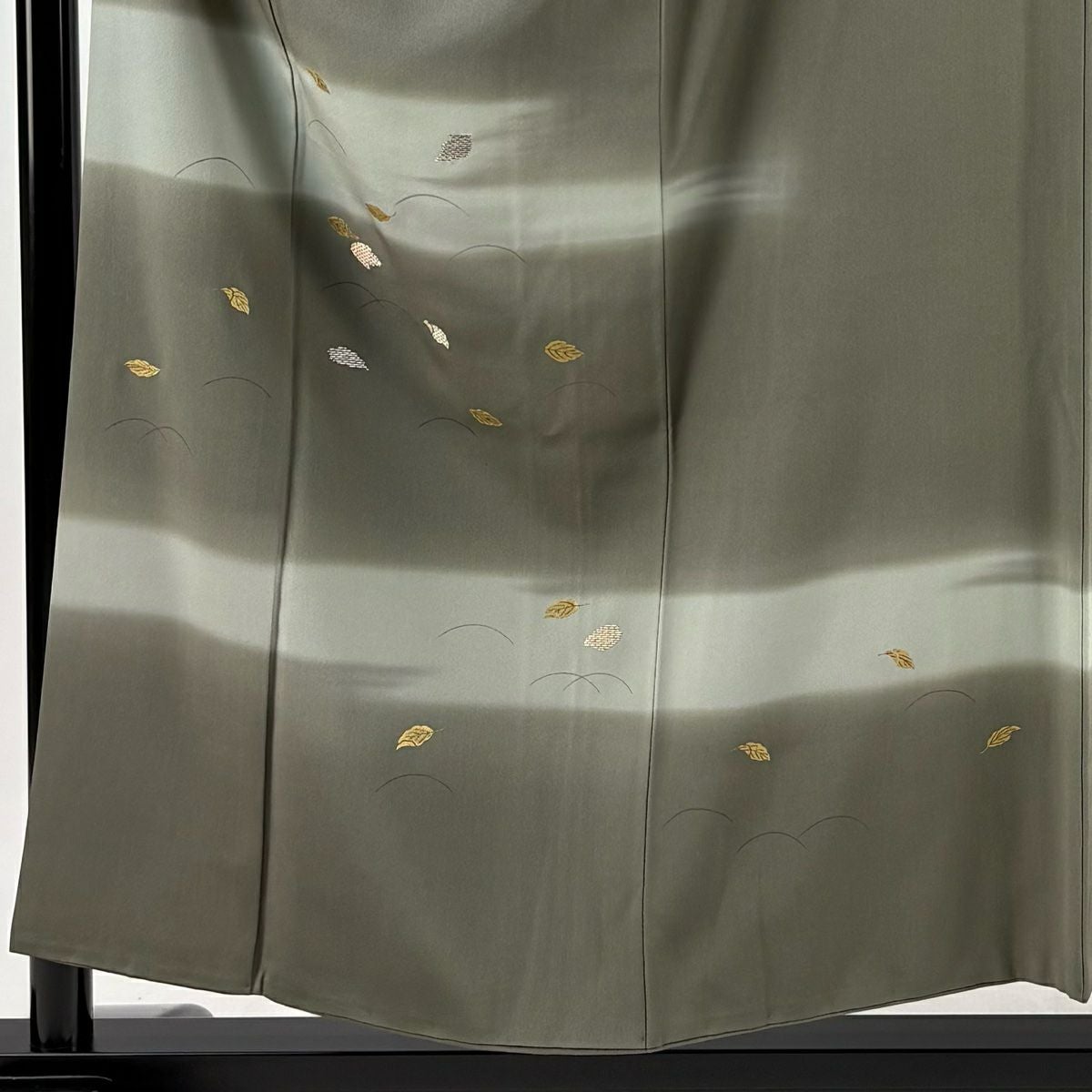 【在庫一掃】 付下げ 身丈155.5cm 裄丈63.5cm S 袷 葉柄 芝 金糸 刺繍 灰緑 正絹 秀品