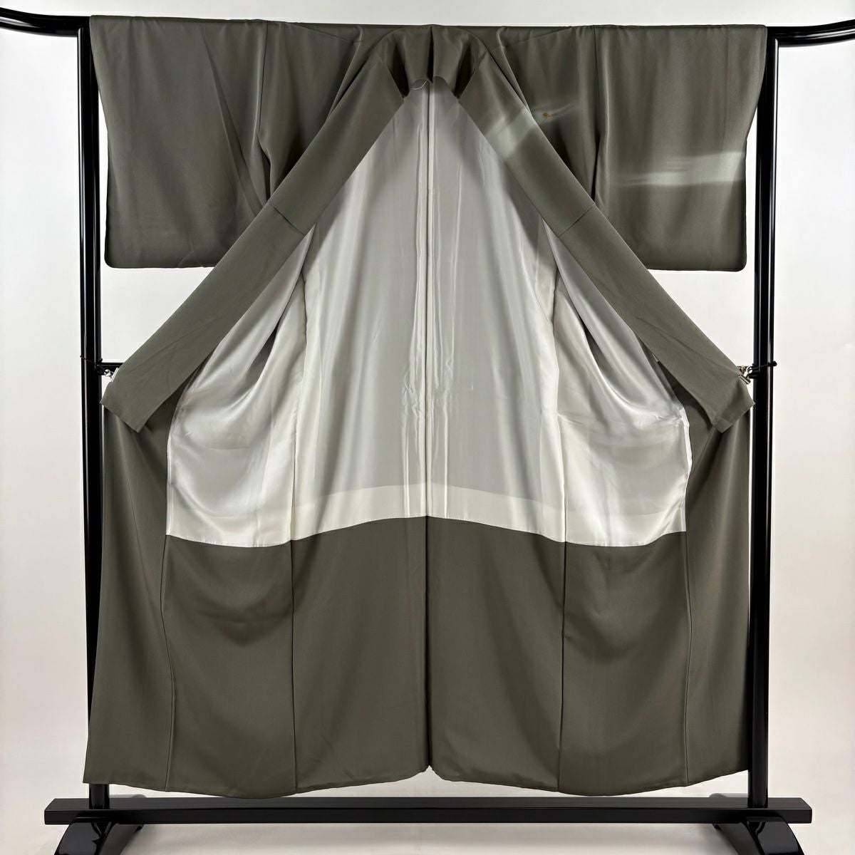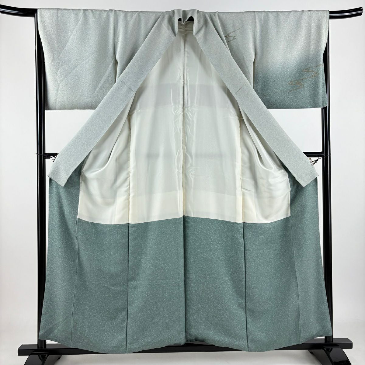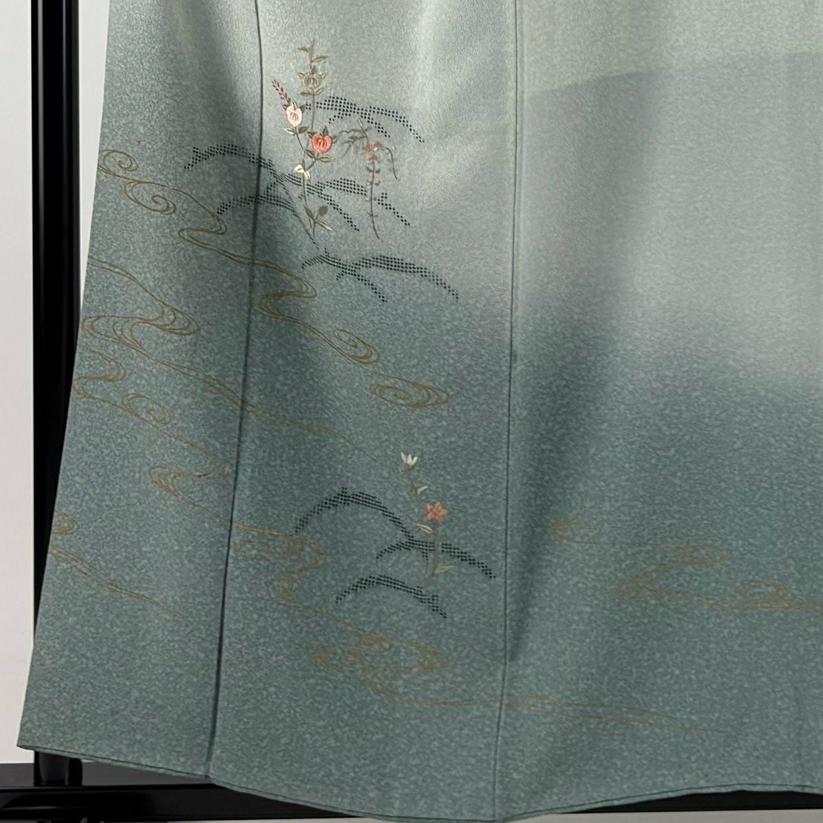【在庫一掃】 付下げ 身丈157.5cm 裄丈64.5cm M 袷 橘 流水 刺繍 金彩 灰緑 正絹 秀品