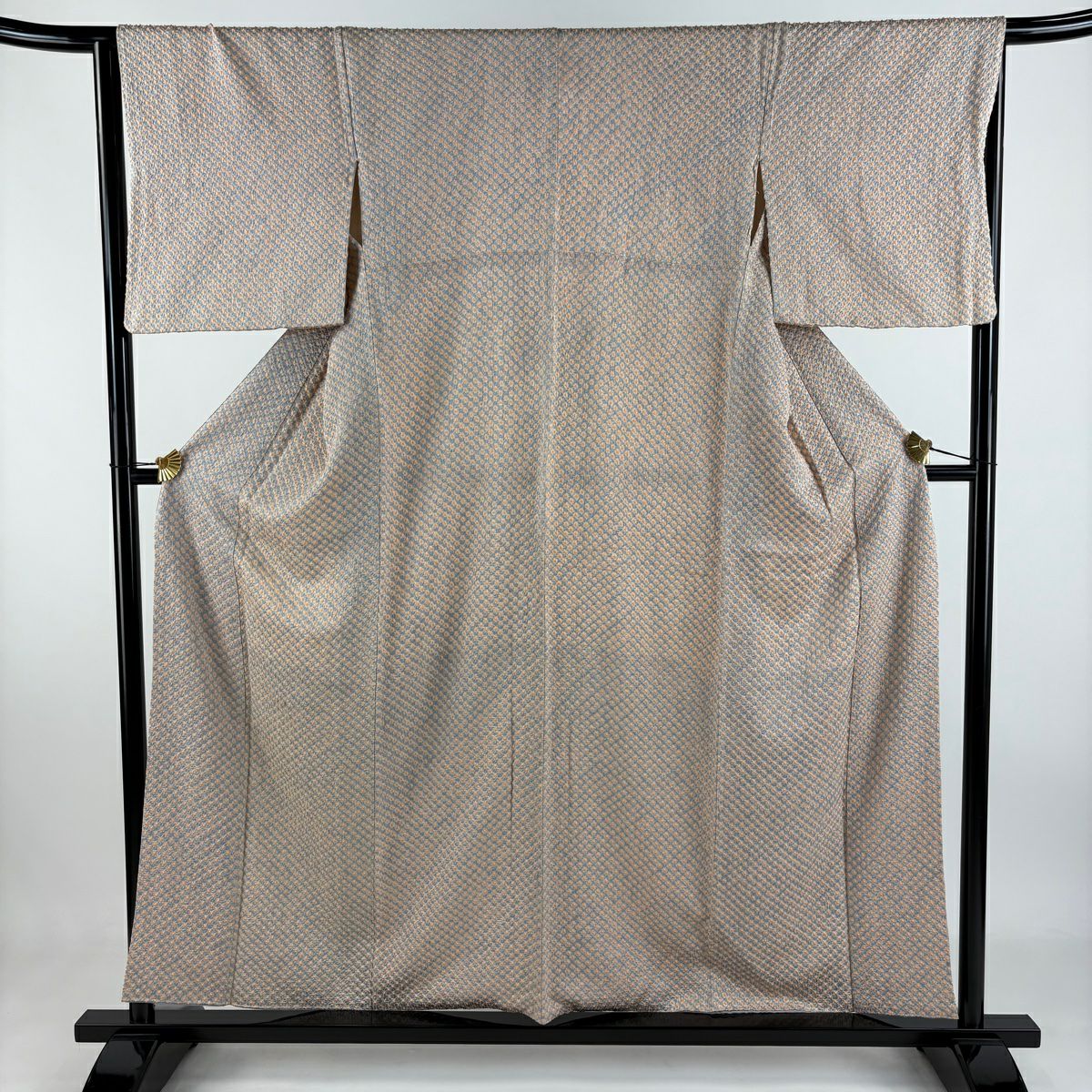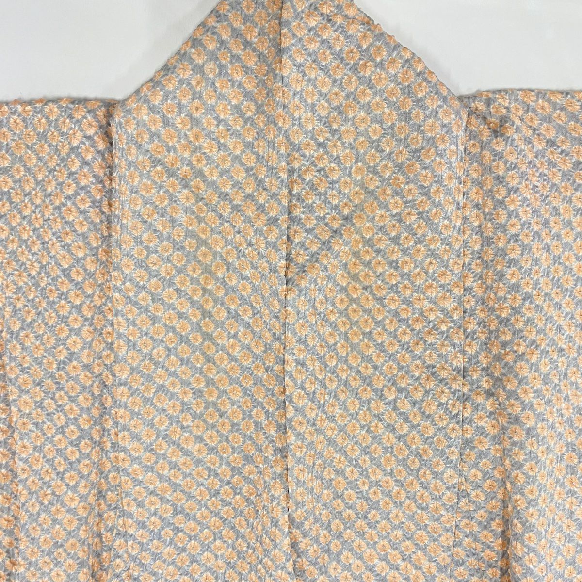 【在庫一掃】 付下げ 身丈156cm 裄丈65cm M 袷 幾何学模様 絞り 薄オレンジ 正絹 秀品