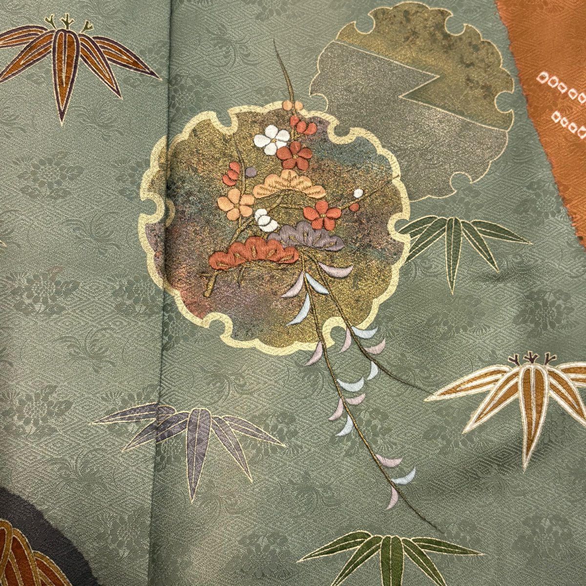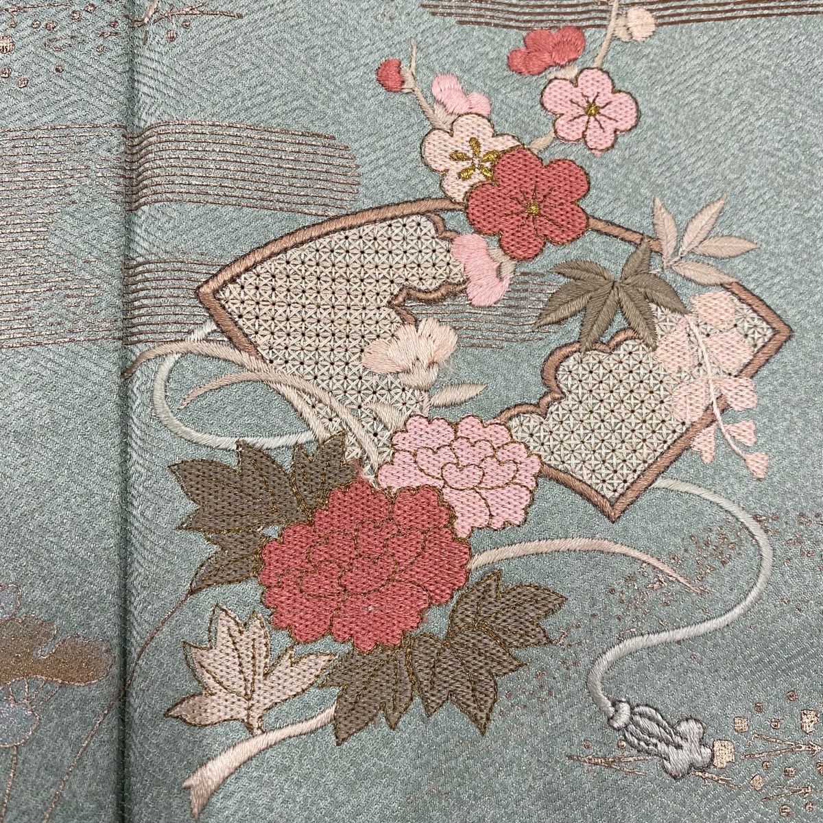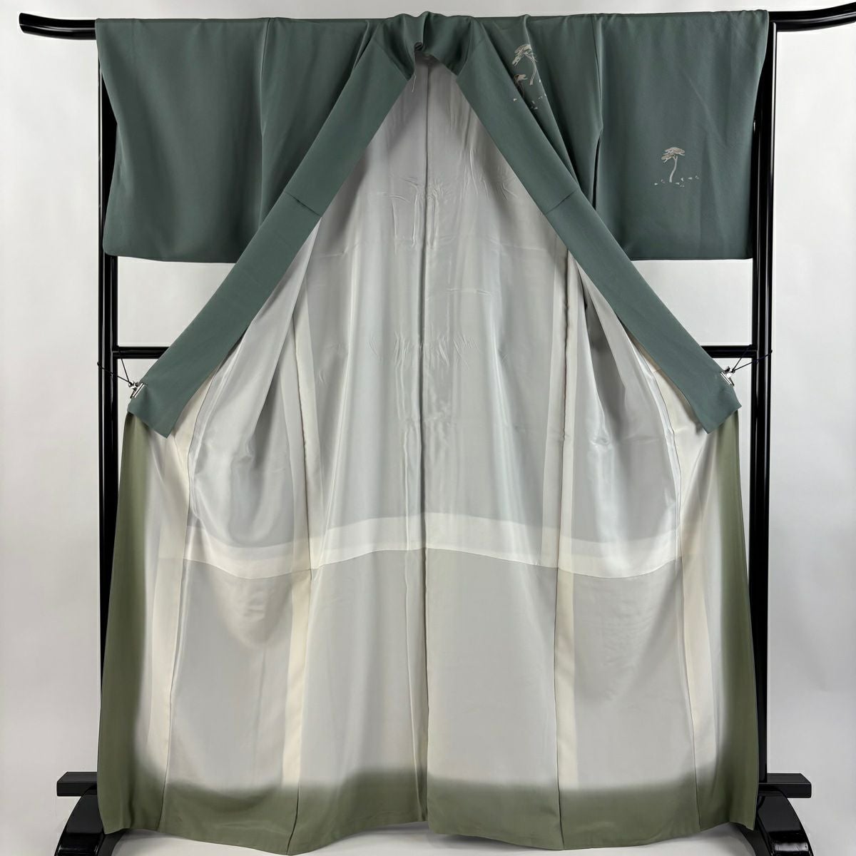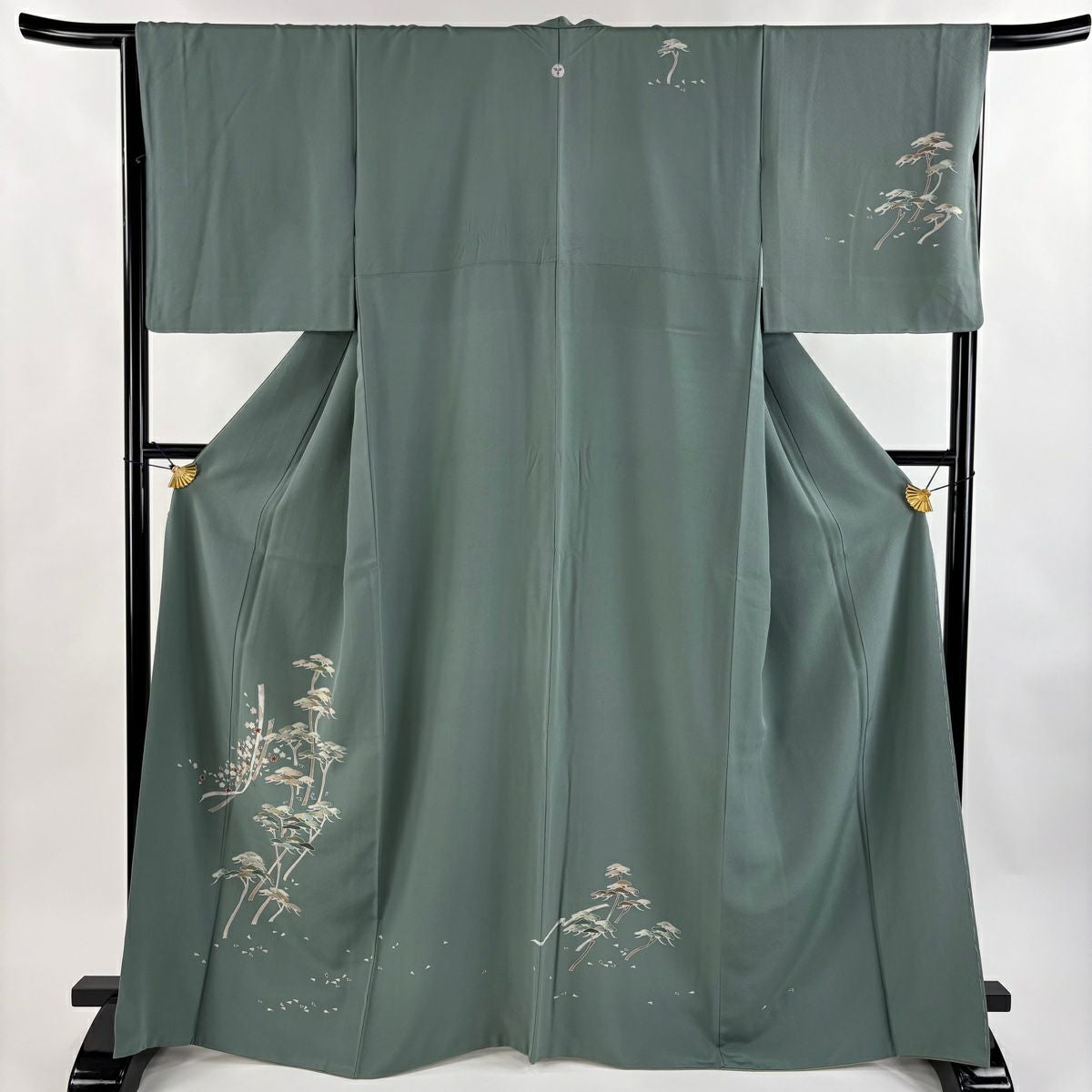 【在庫一掃】 訪問着 身丈151cm 裄丈62cm S 袷 雪輪 松竹梅 刺繍 金糸 灰緑 正絹 秀品
