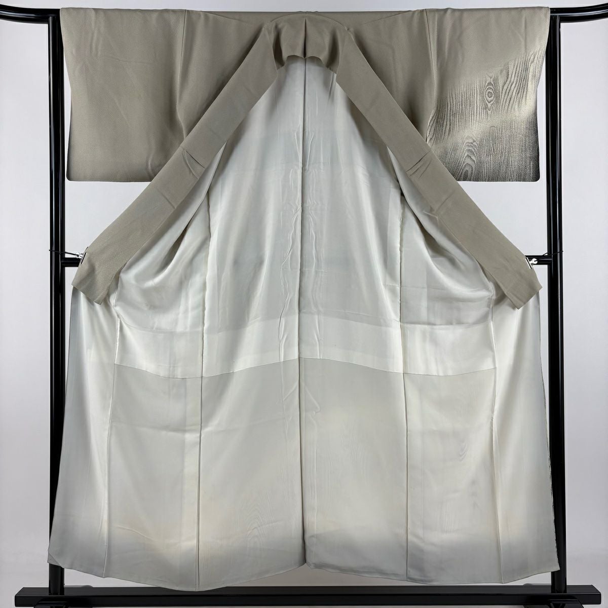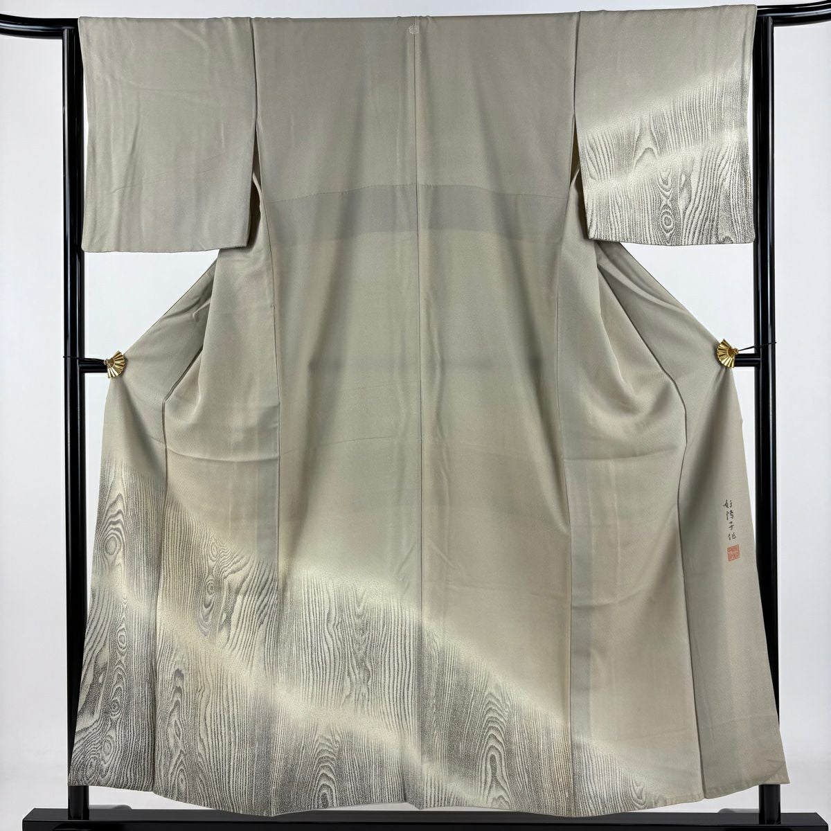 【在庫一掃】 付下げ 身丈154.5cm 裄丈63.5cm S 袷 落款あり 木目 刺繍 灰茶 正絹 秀品