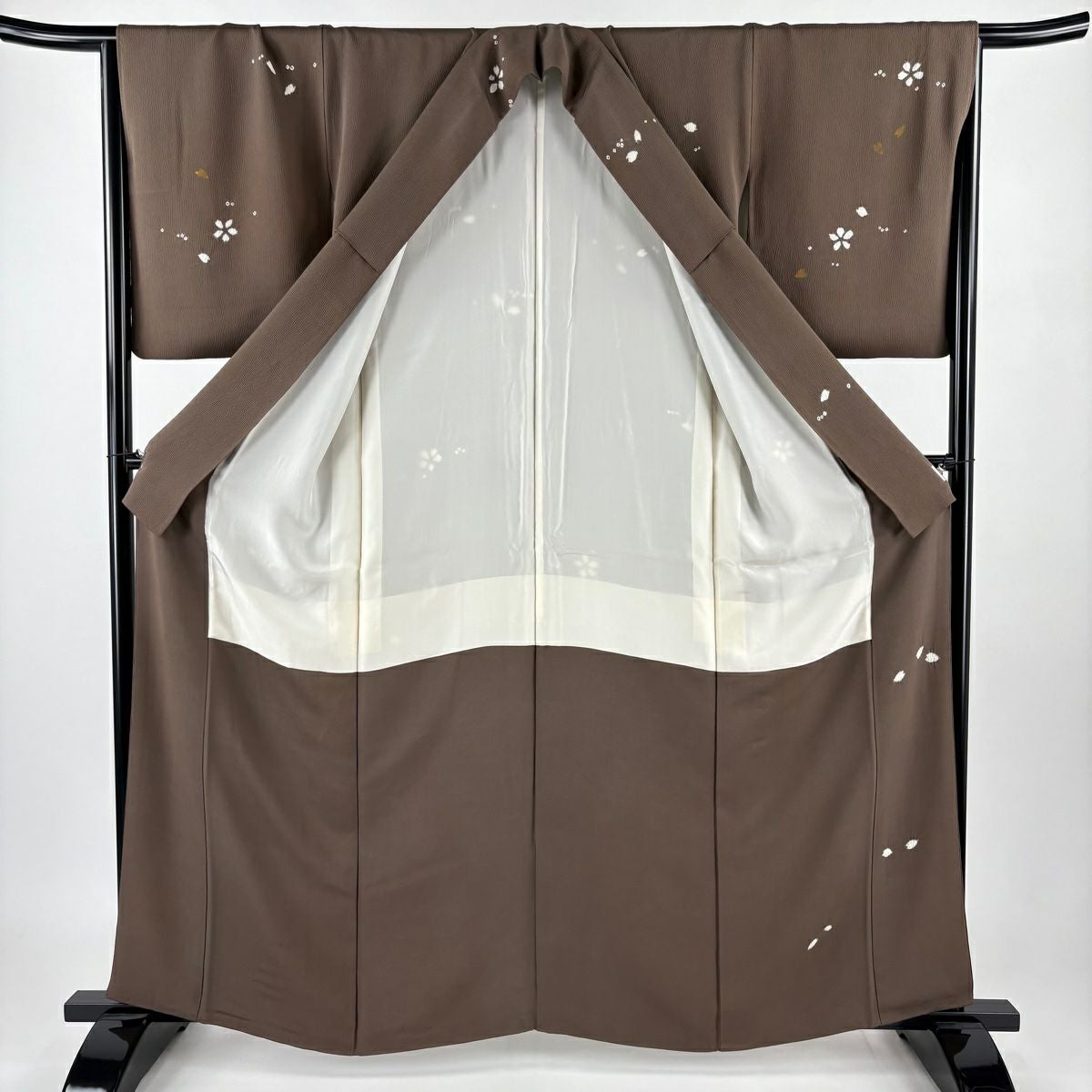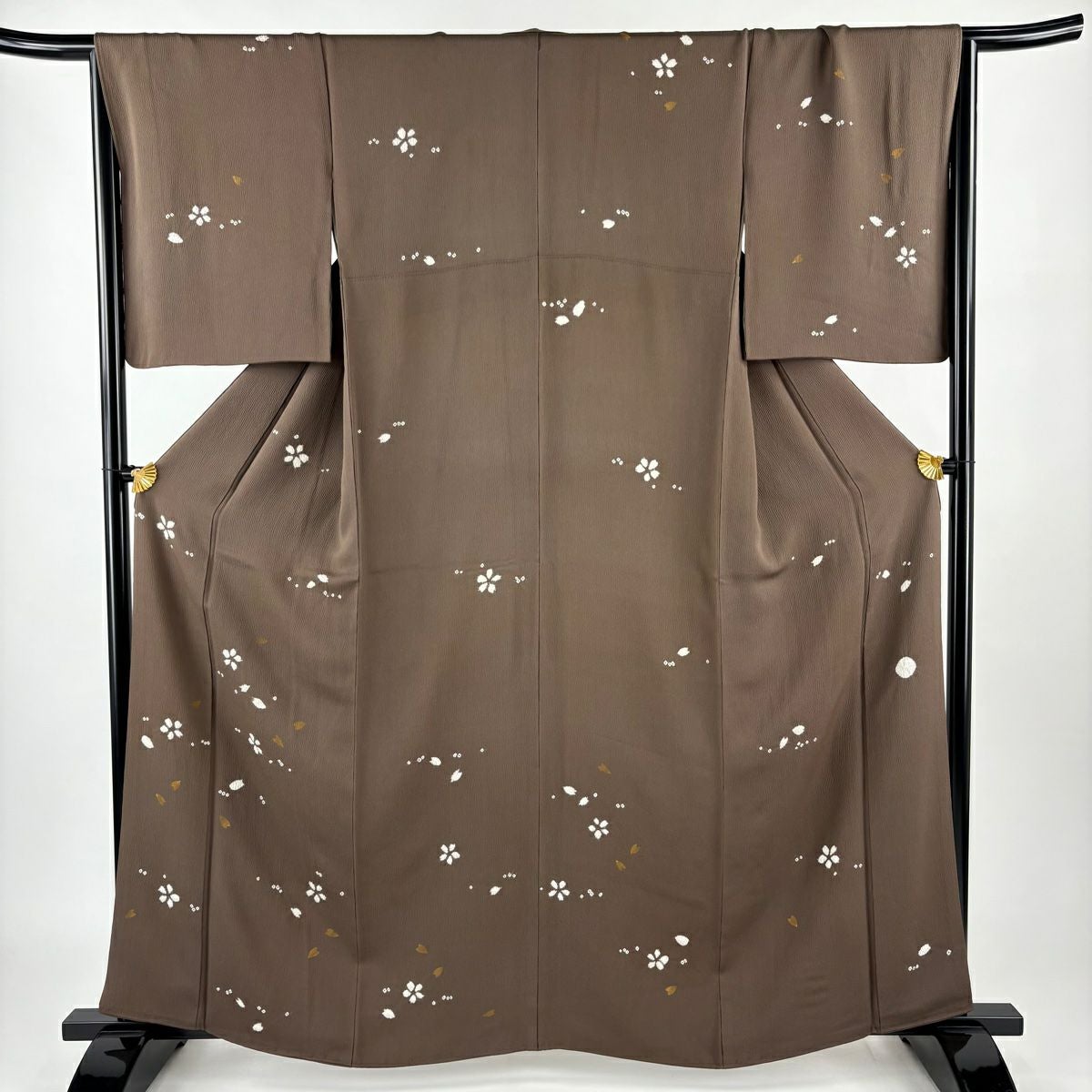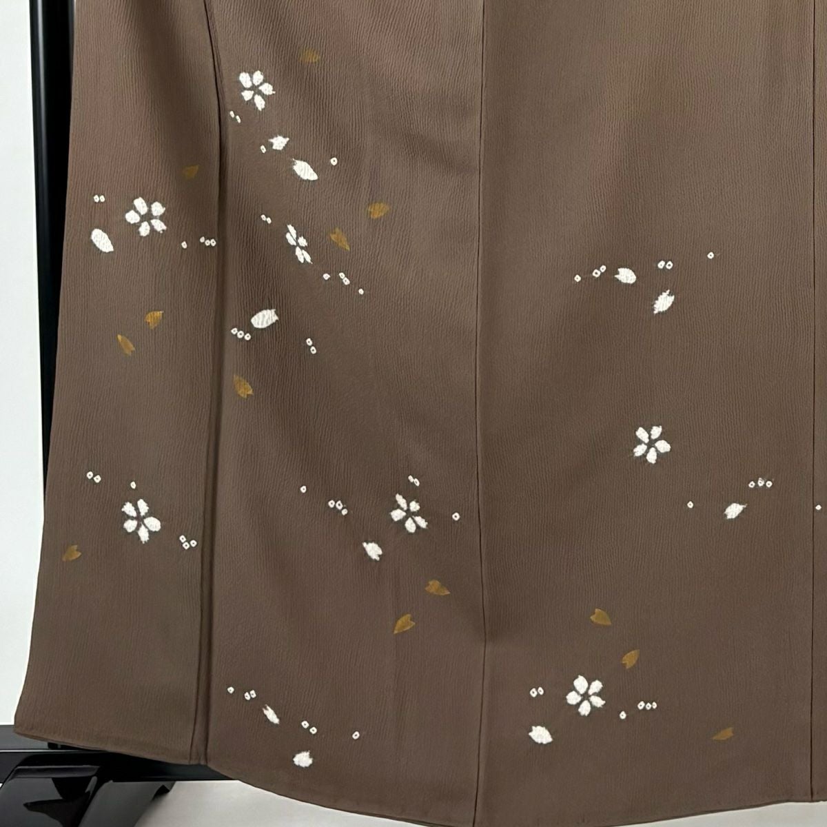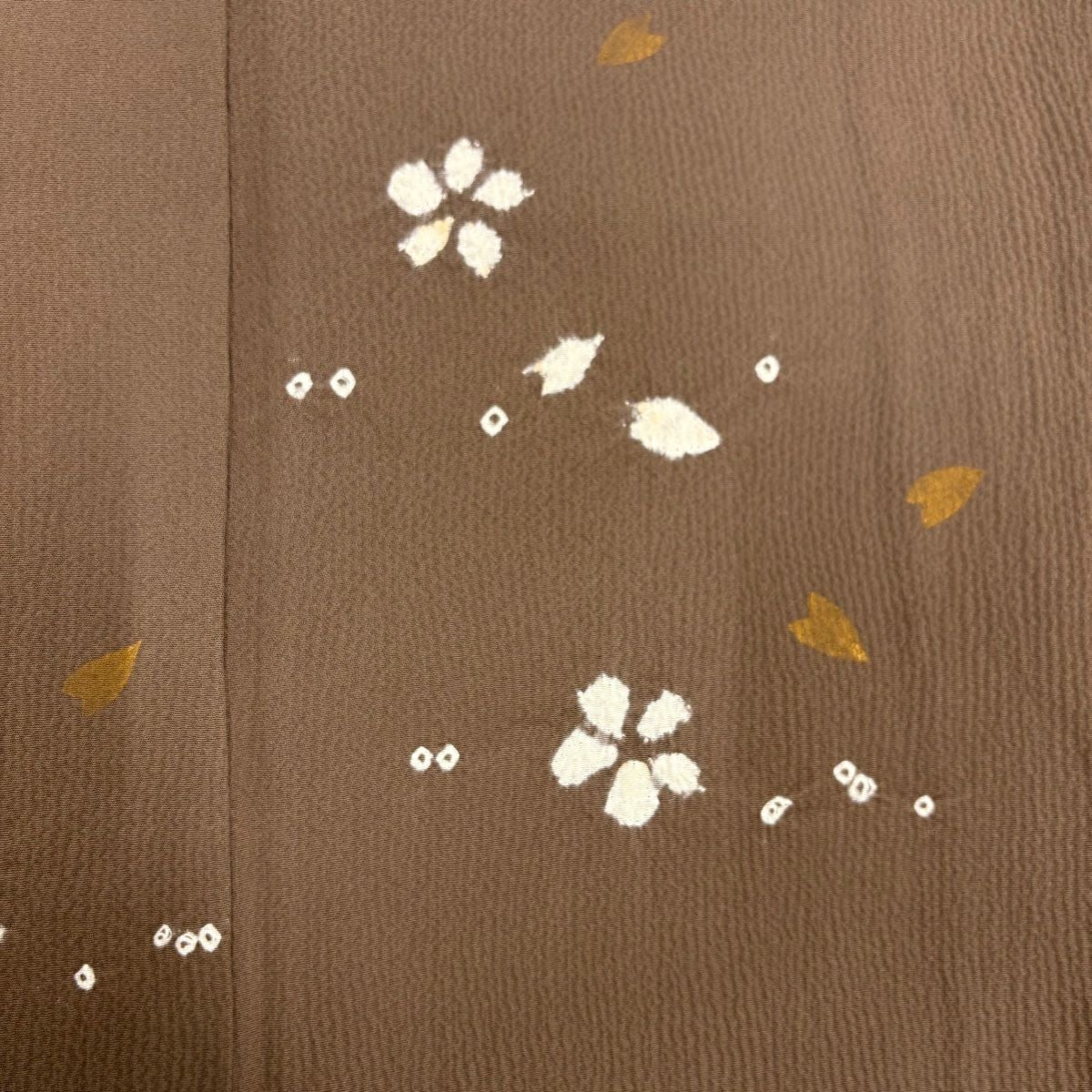 【在庫一掃】 付下げ 身丈161cm 裄丈66cm M 袷 桜 桜の花びら 金彩 絞り 茶色 正絹 秀品