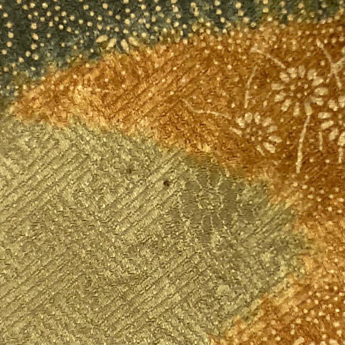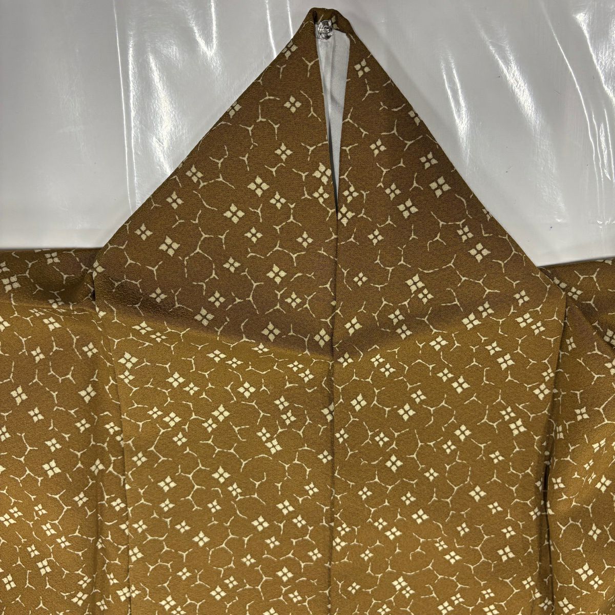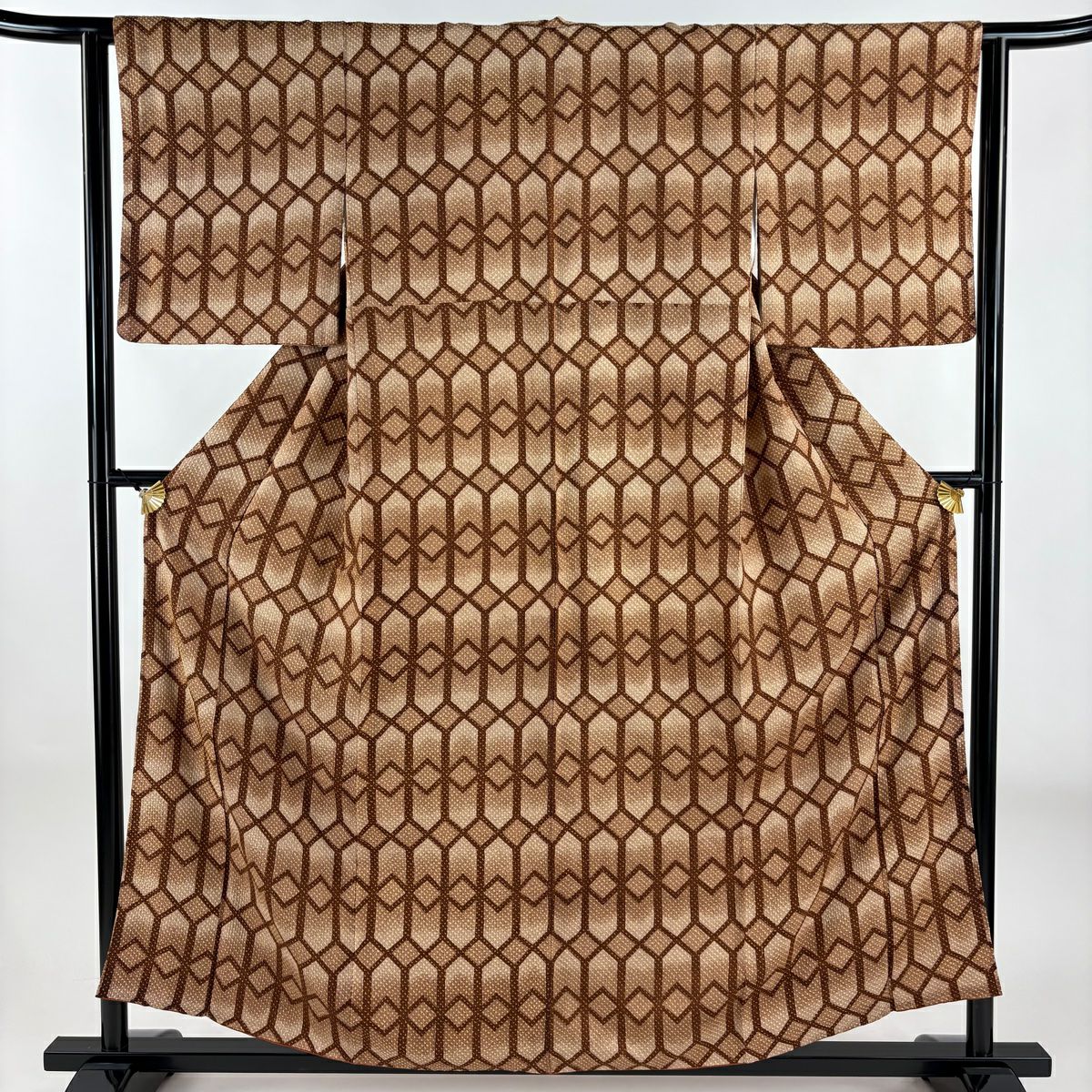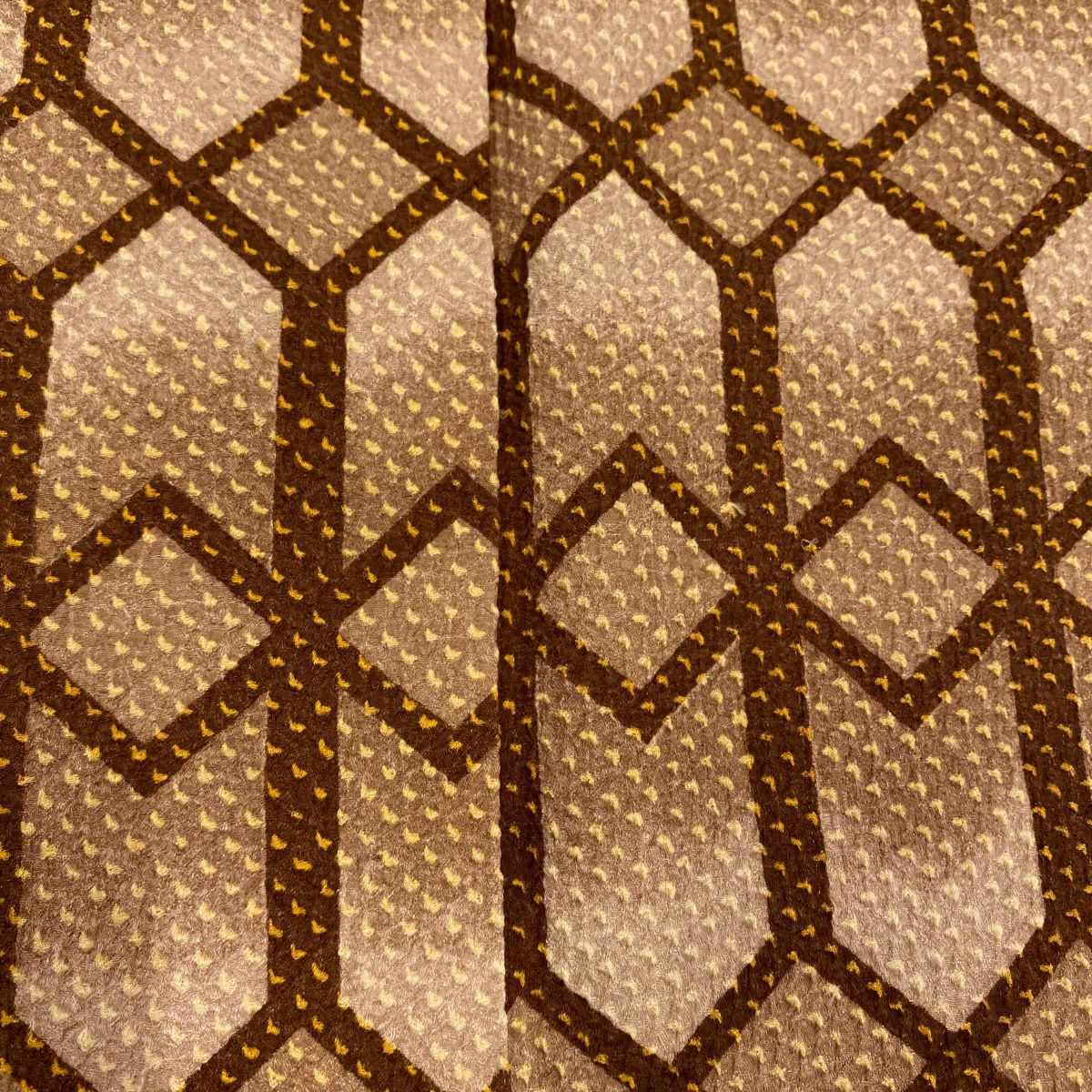 【美品】 付下げ 身丈157.5cm 裄丈64cm M 袷 矢羽 幾何学模様 ぼかし 黄土色 正絹 秀品