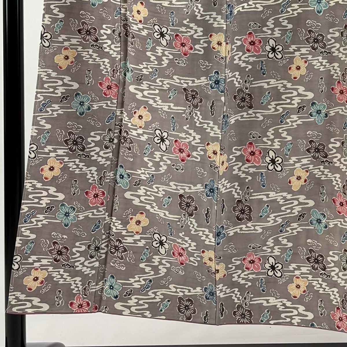 【在庫一掃】 付下げ 身丈158cm 裄丈65cm M 袷 落款あり 草花 よろけ縞 灰茶 正絹 秀品