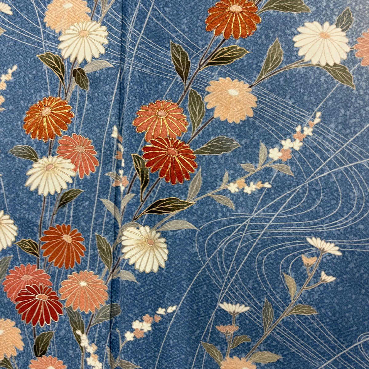 【美品】 訪問着 身丈156cm 裄丈64cm M 袷 落款あり 菊 流水 金糸 金彩 青灰色 正絹 秀品
