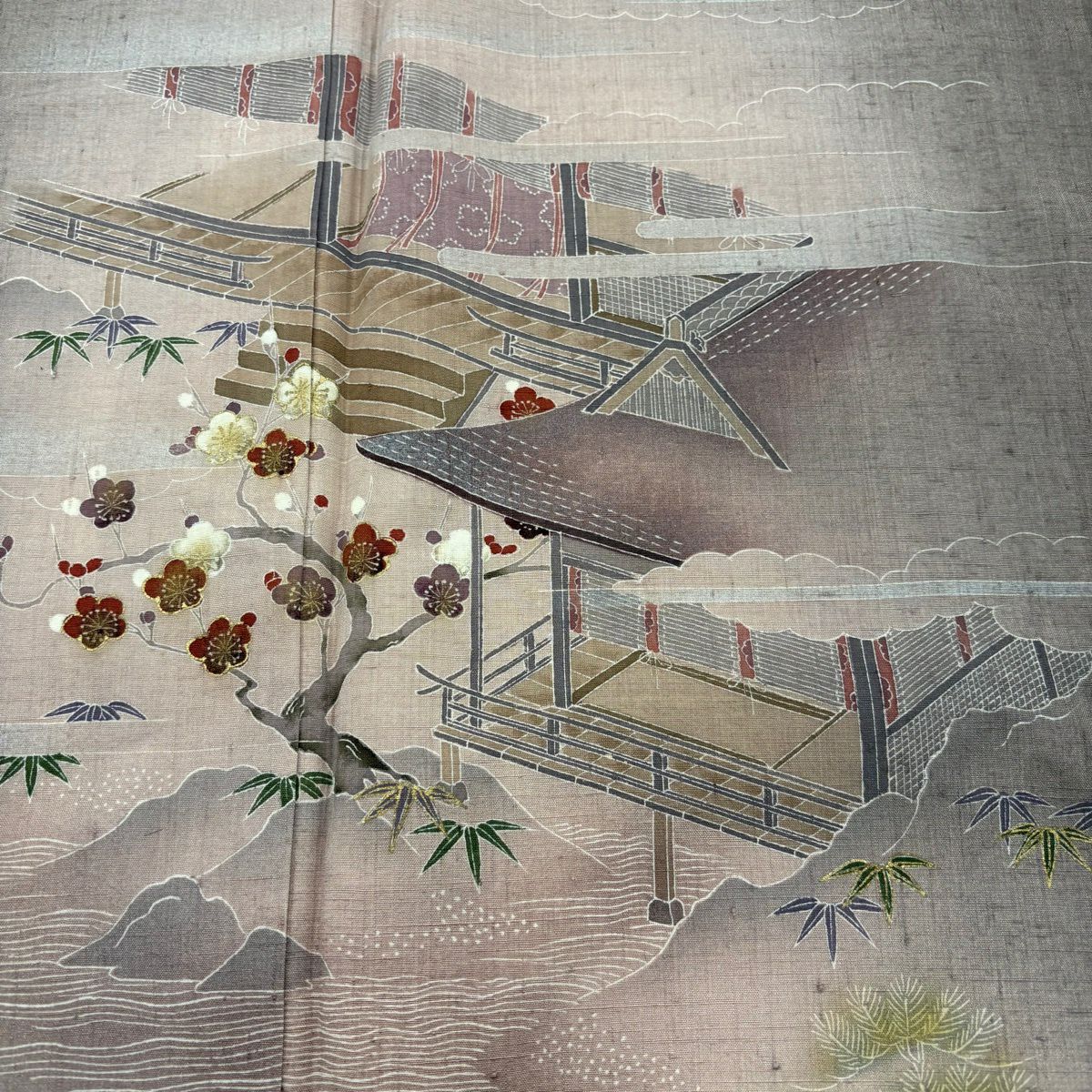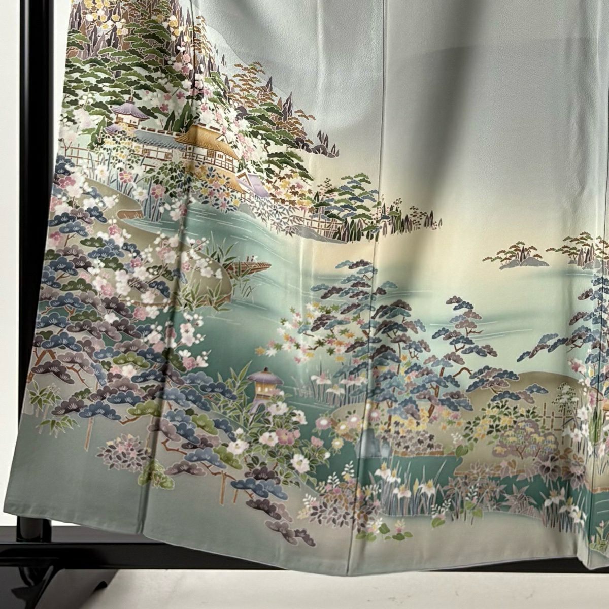 色留袖 身丈158cm 裄丈68.5cm L 袷 落款あり 松竹梅 建物 ぼかし 灰色 正絹 秀品 一つ紋