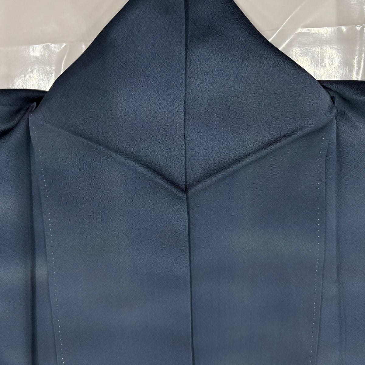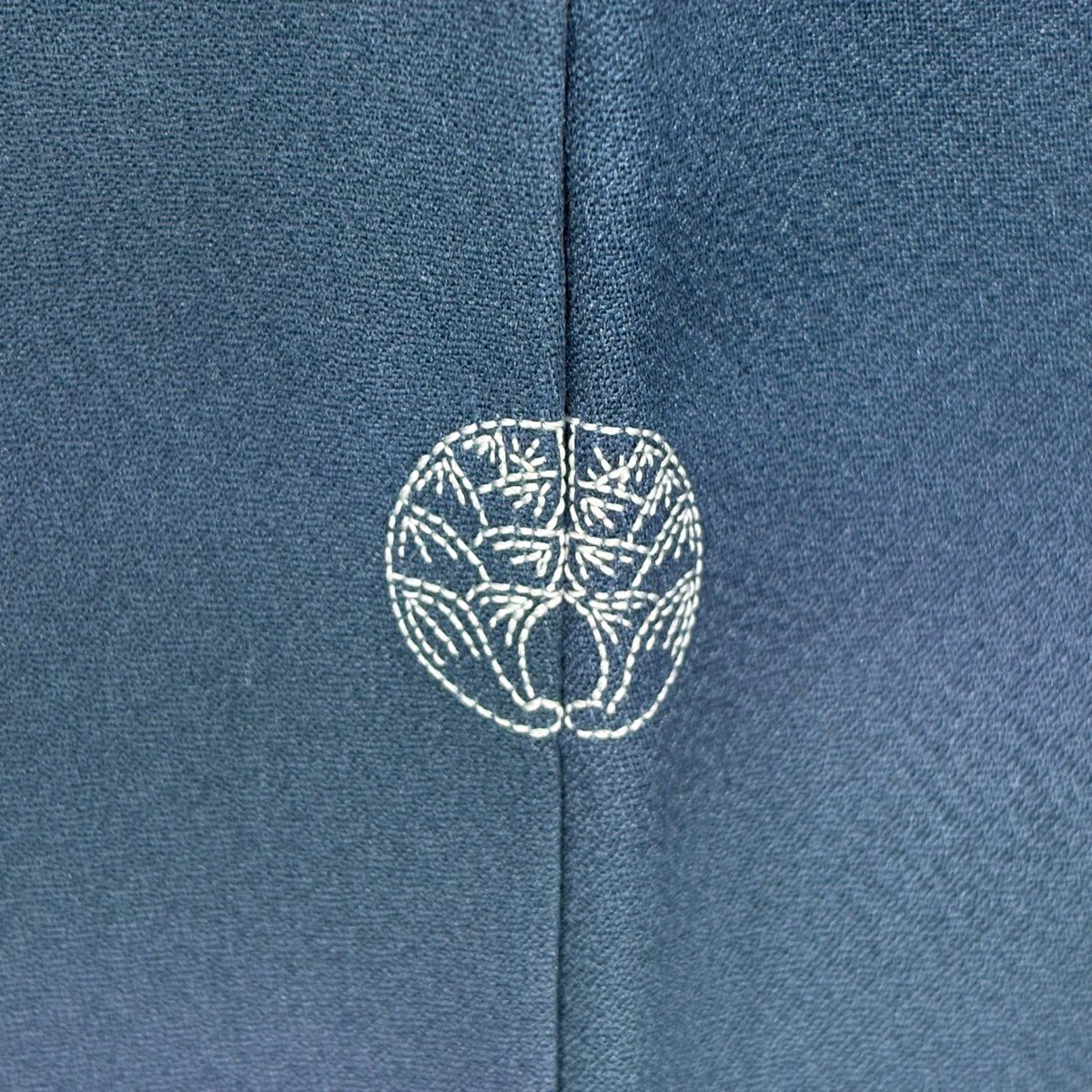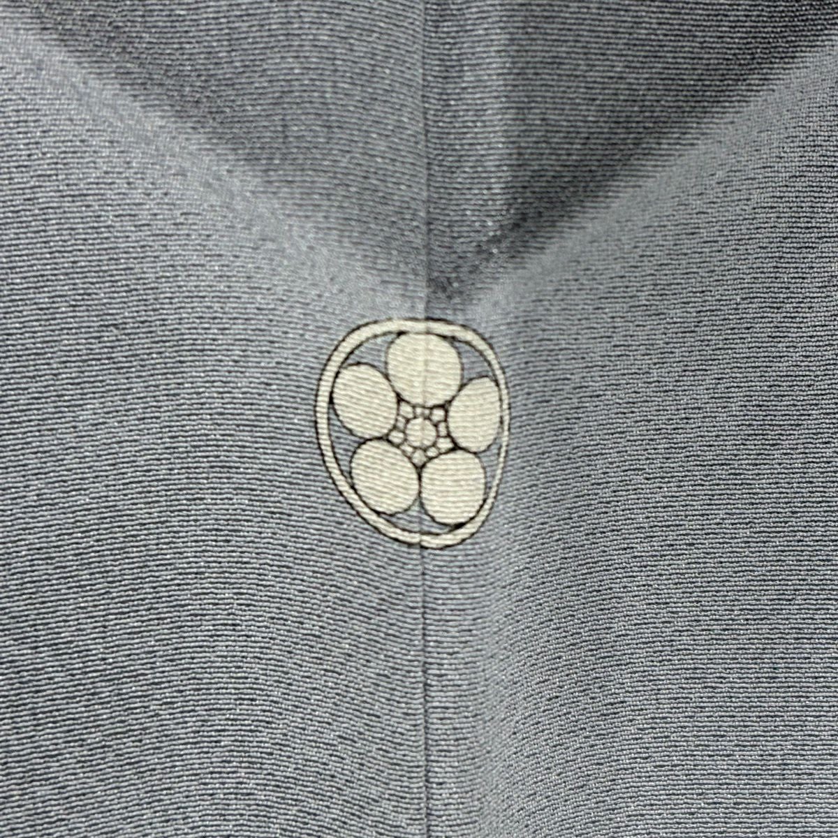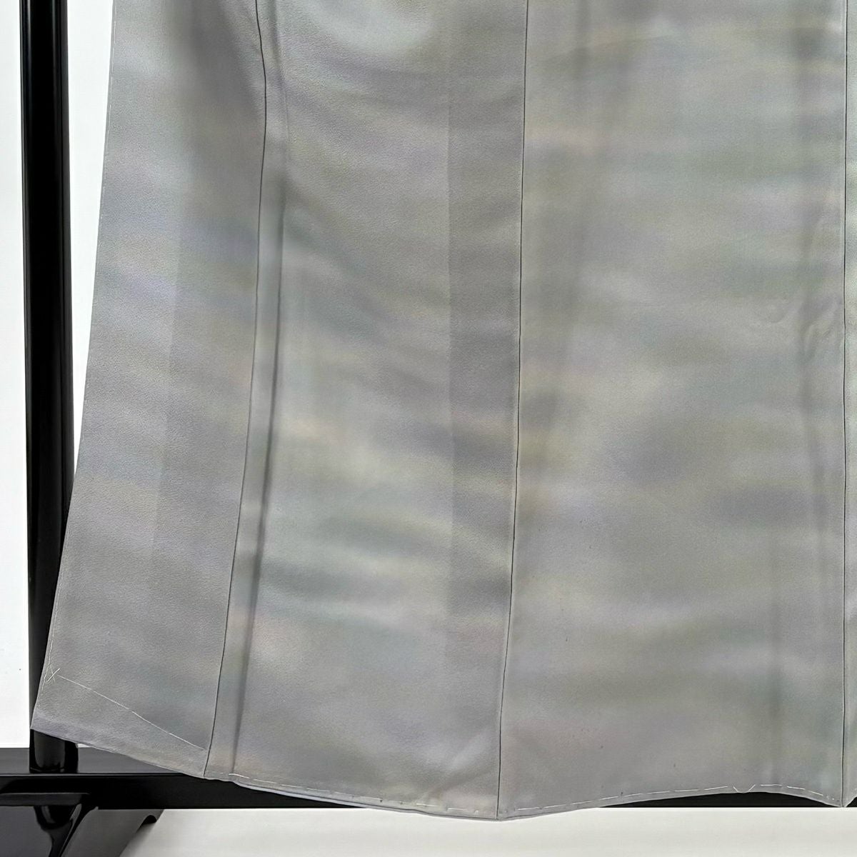 色留袖 身丈168cm 裄丈69.5cm L 袷 落款あり 風景 樹木 ぼかし 青灰色 正絹 秀品 一つ紋