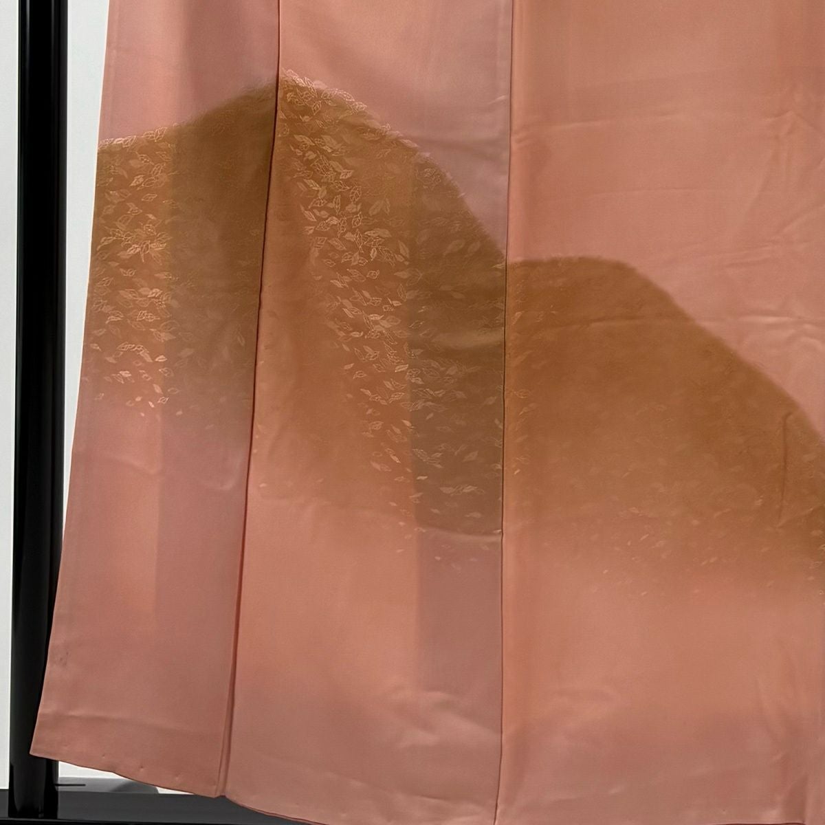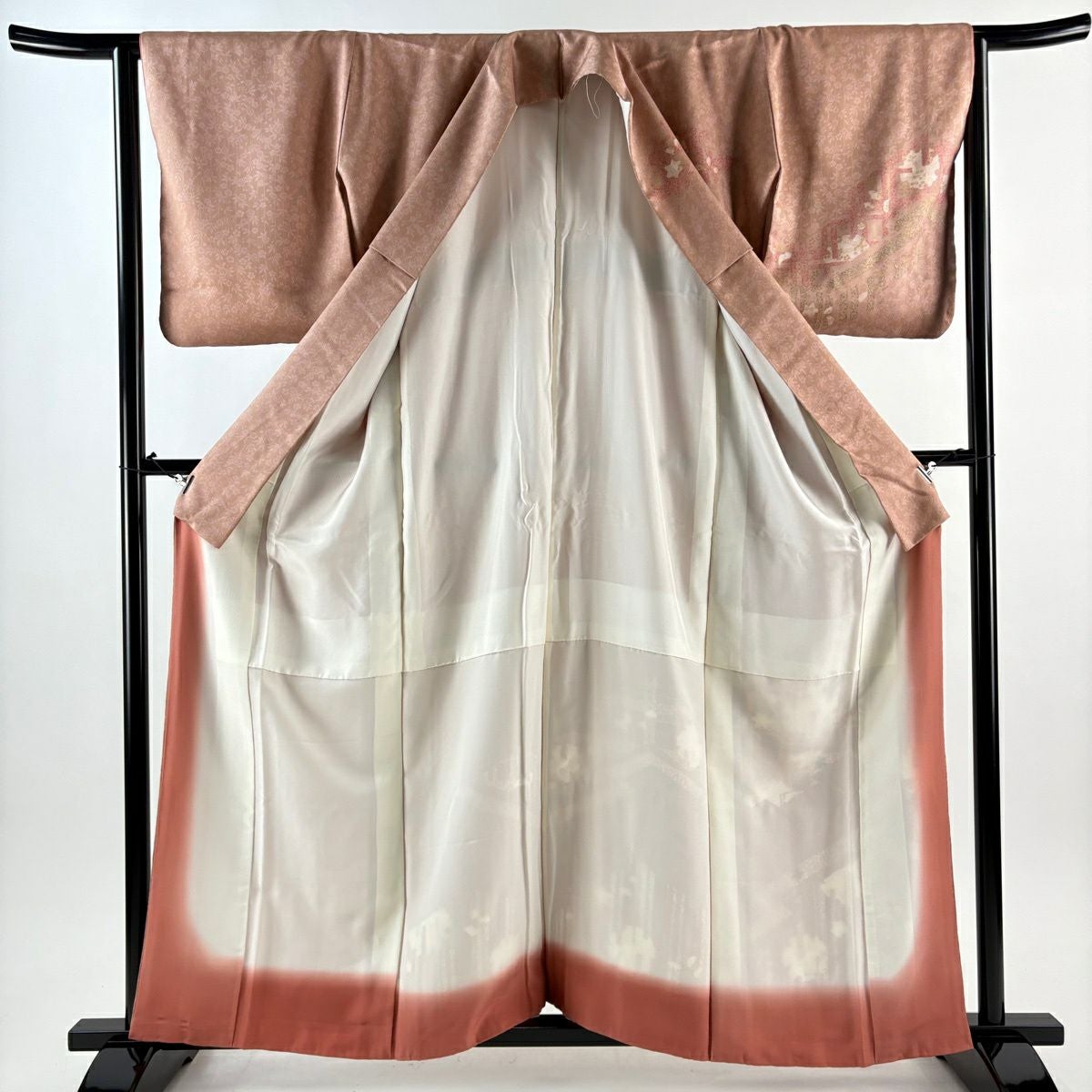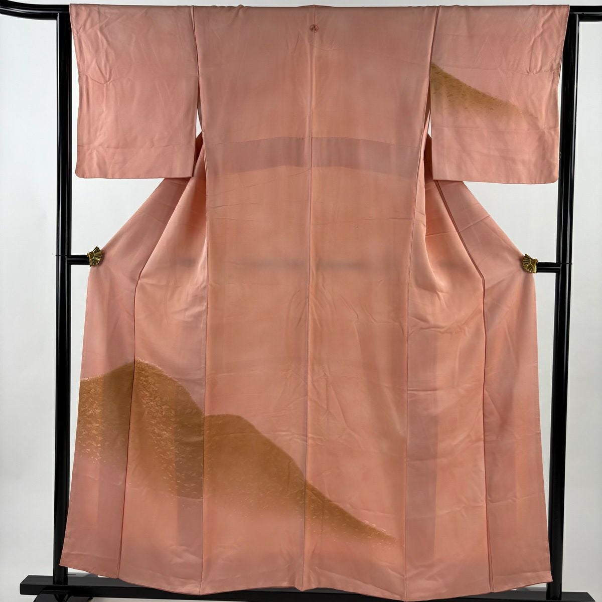 付下げ 身丈156cm 裄丈64cm M 袷 地紋 山並み 染め分け ぼかし ピンク 正絹 秀品 一つ紋