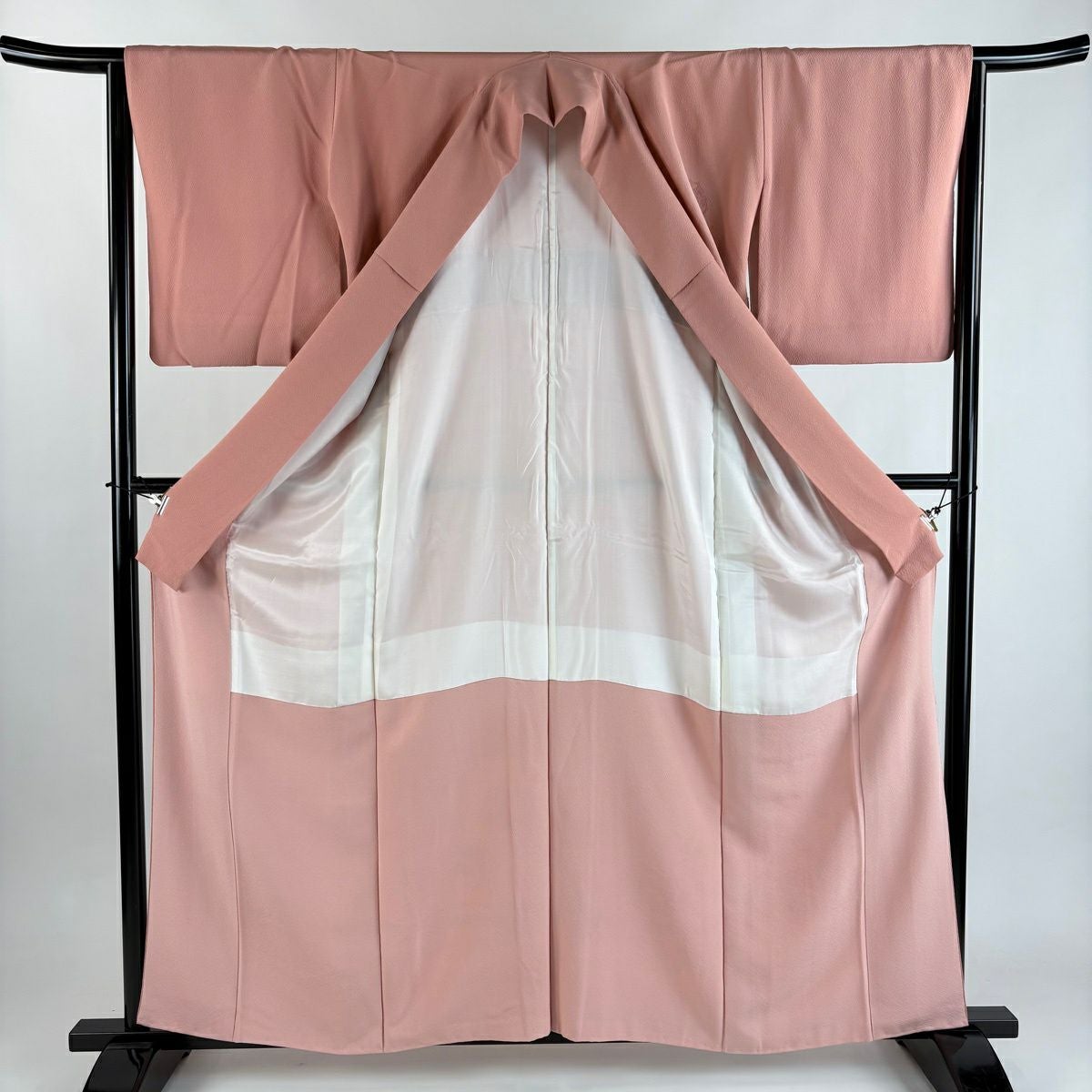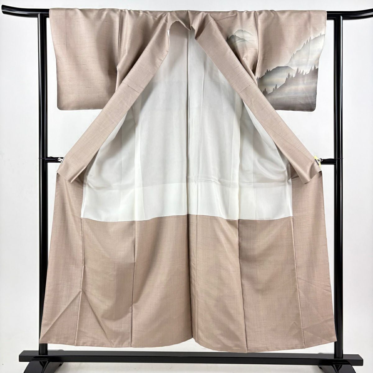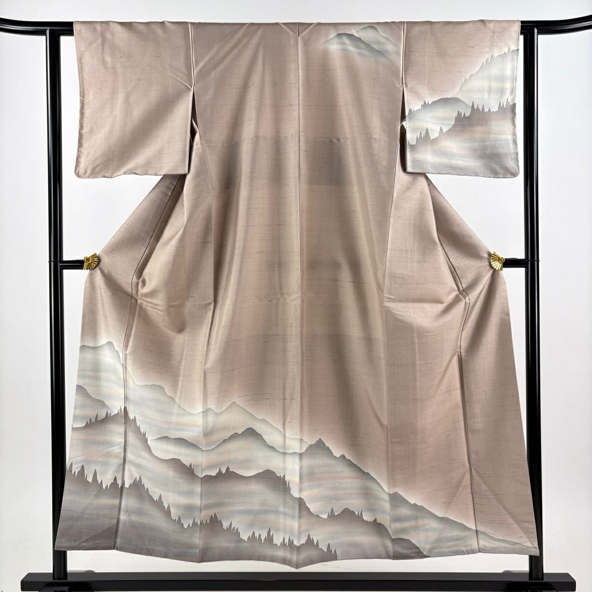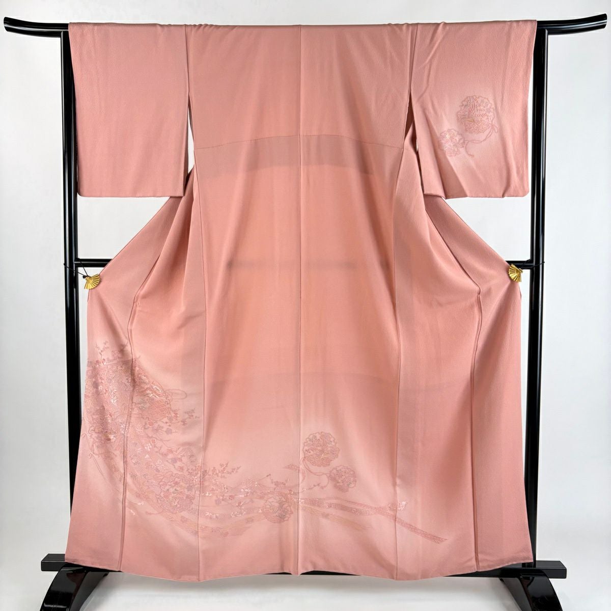 付下げ 身丈156cm 裄丈64cm M 袷 地紋 山並み 染め分け ぼかし ピンク 正絹 秀品 一つ紋