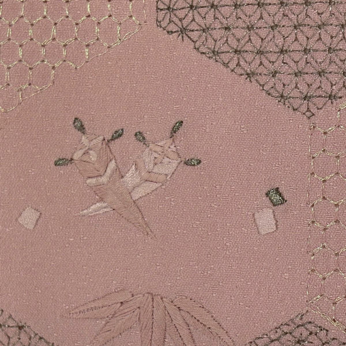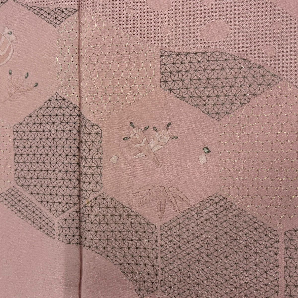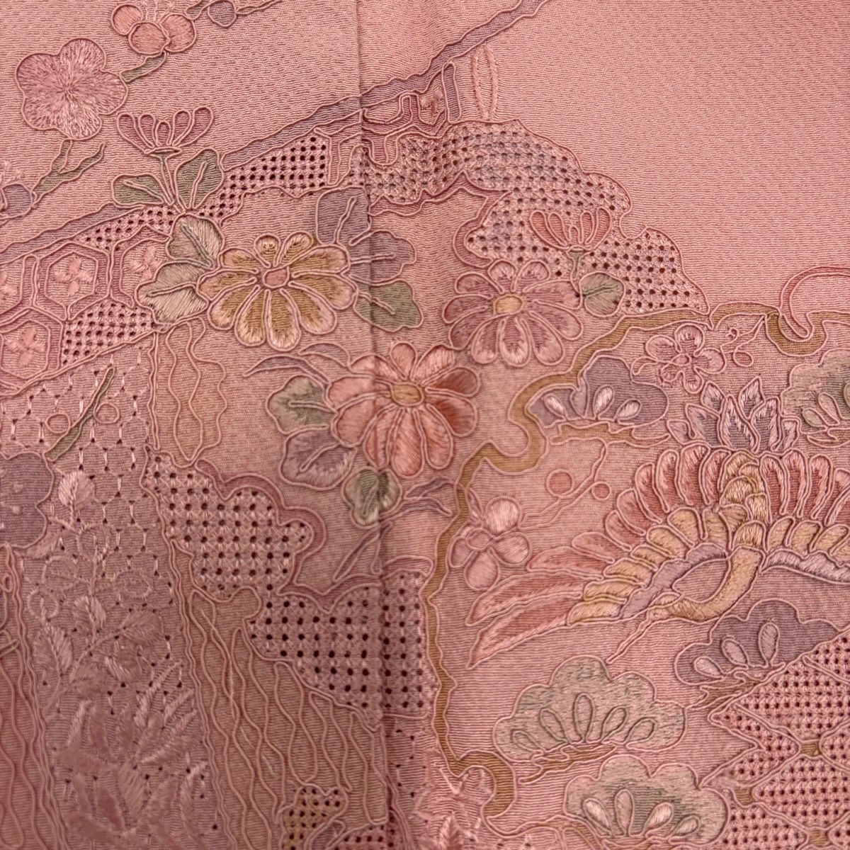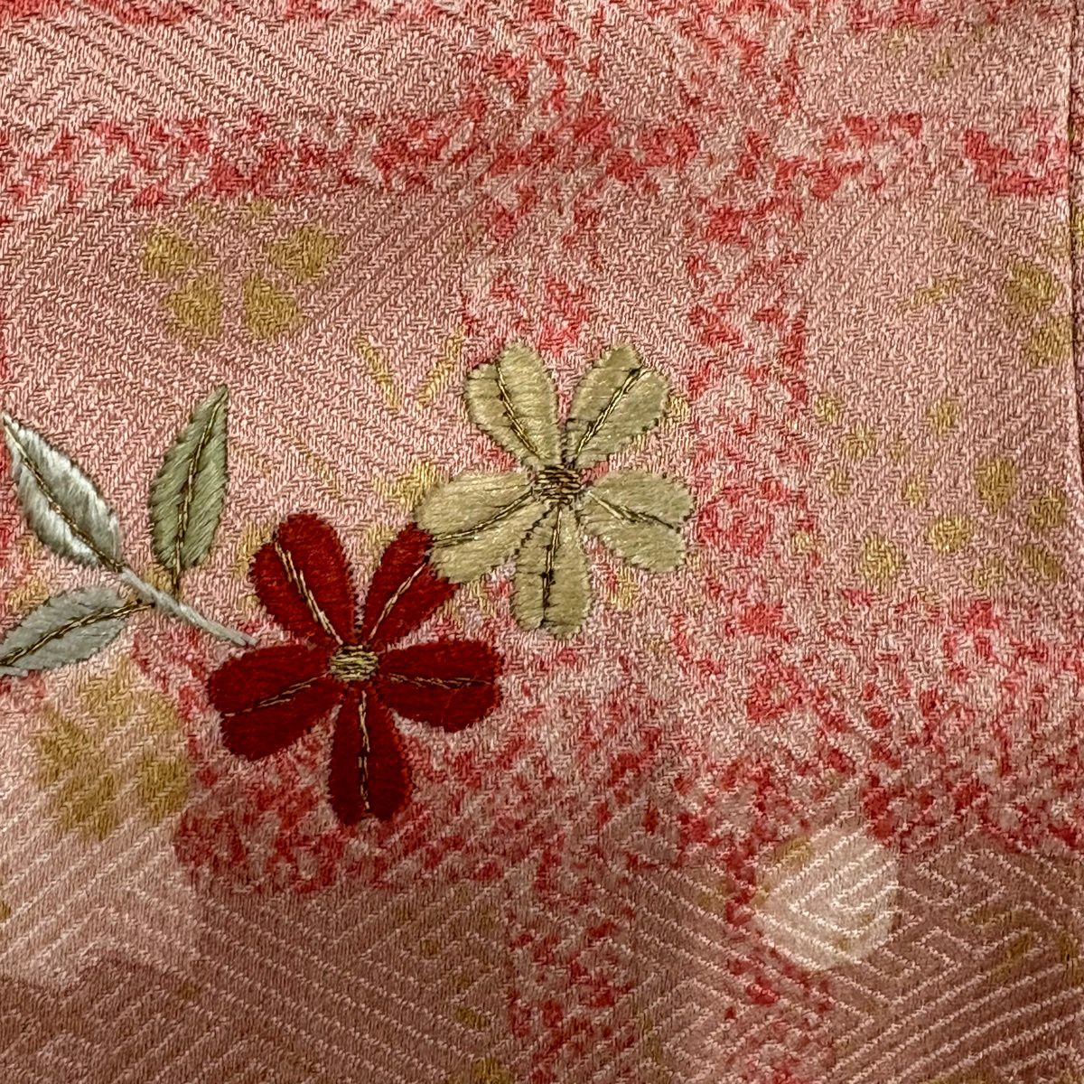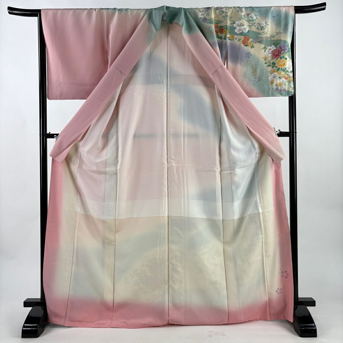 【美品】 付下げ 身丈161cm 裄丈64.5cm M 袷 雪輪 草花 刺繍 ぼかし ピンク 正絹 秀品