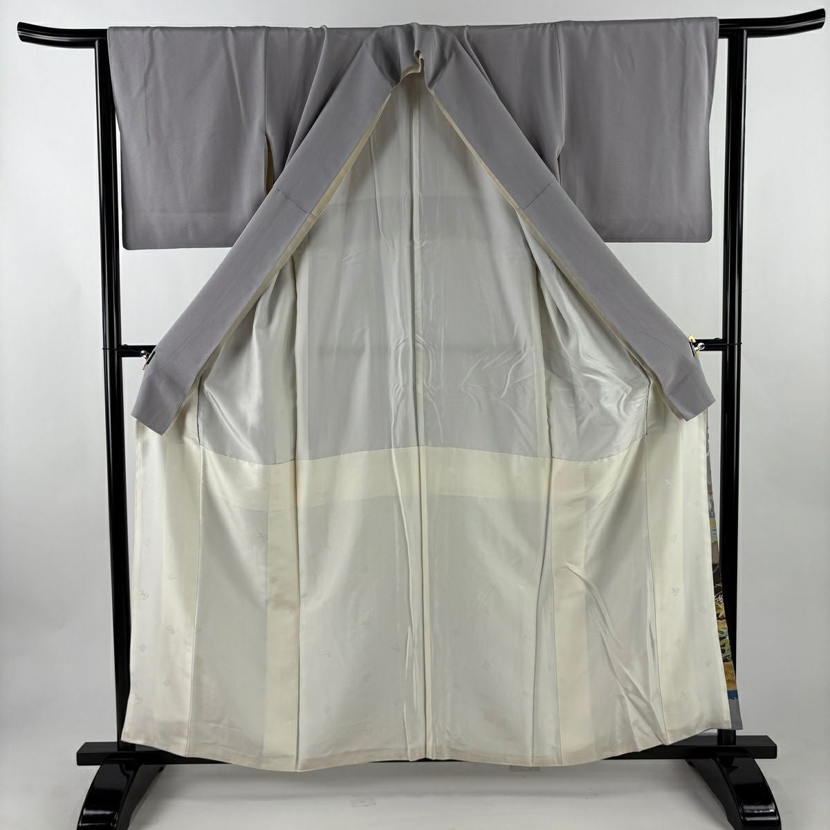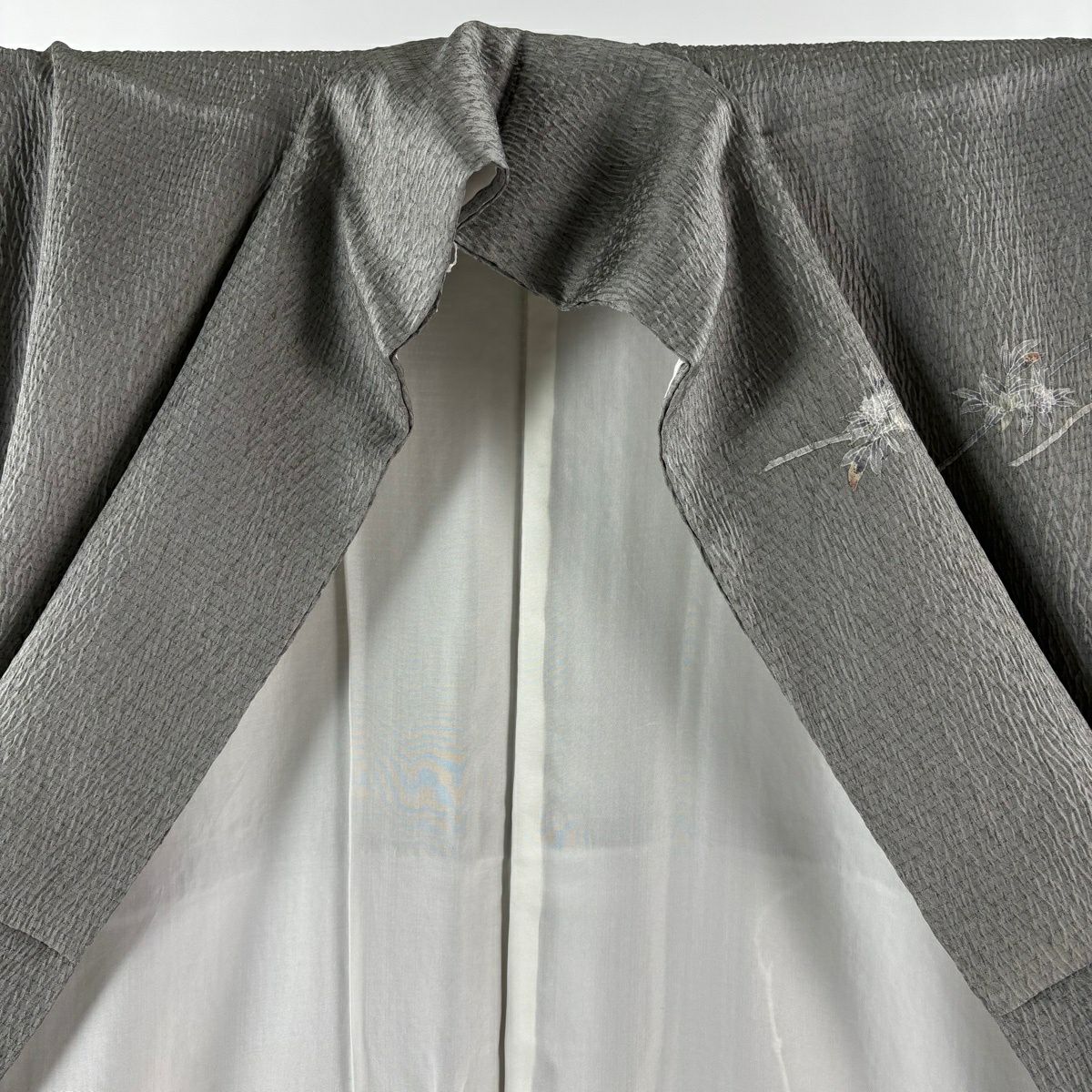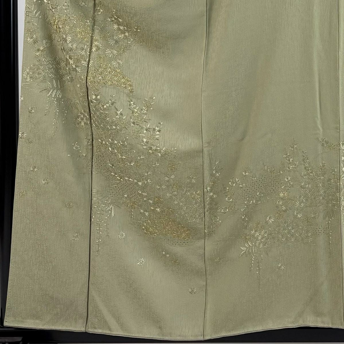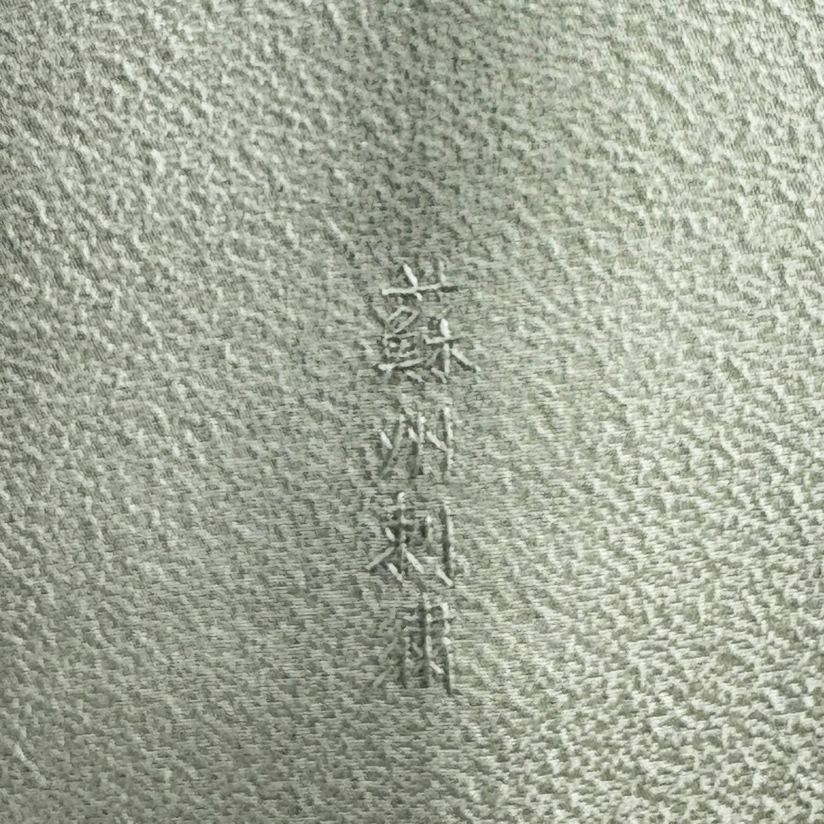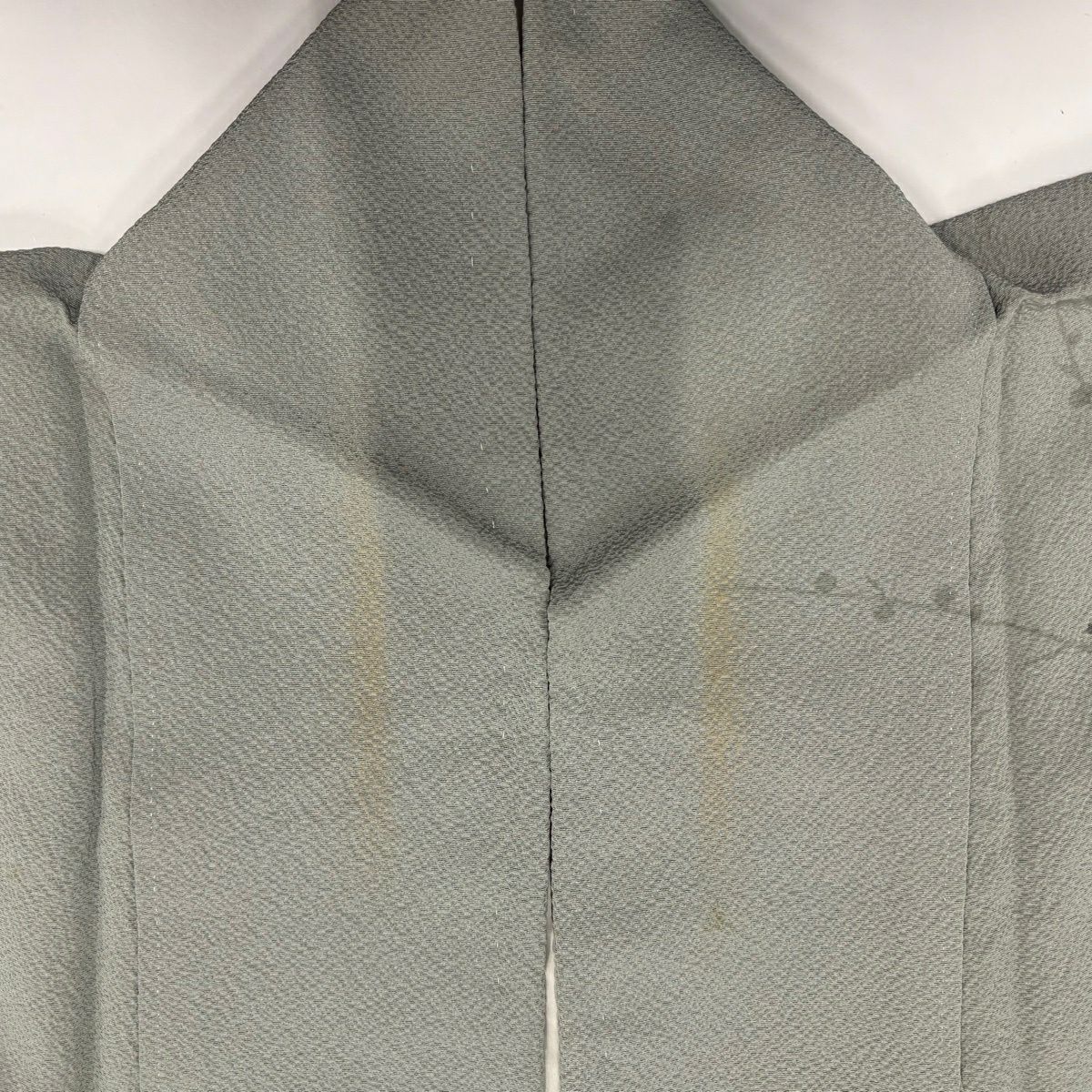 【美品】 付下げ 身丈159.5cm 裄丈62cm S 袷 松梅 菊 刺繍 金糸 灰緑 正絹 秀品 一つ紋