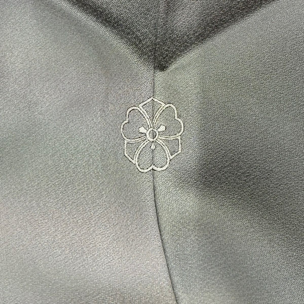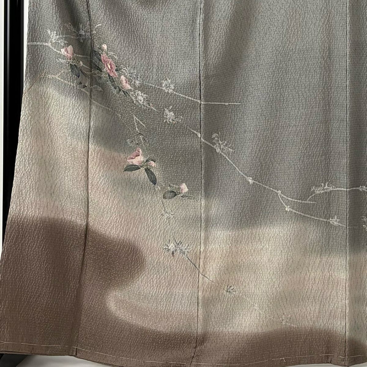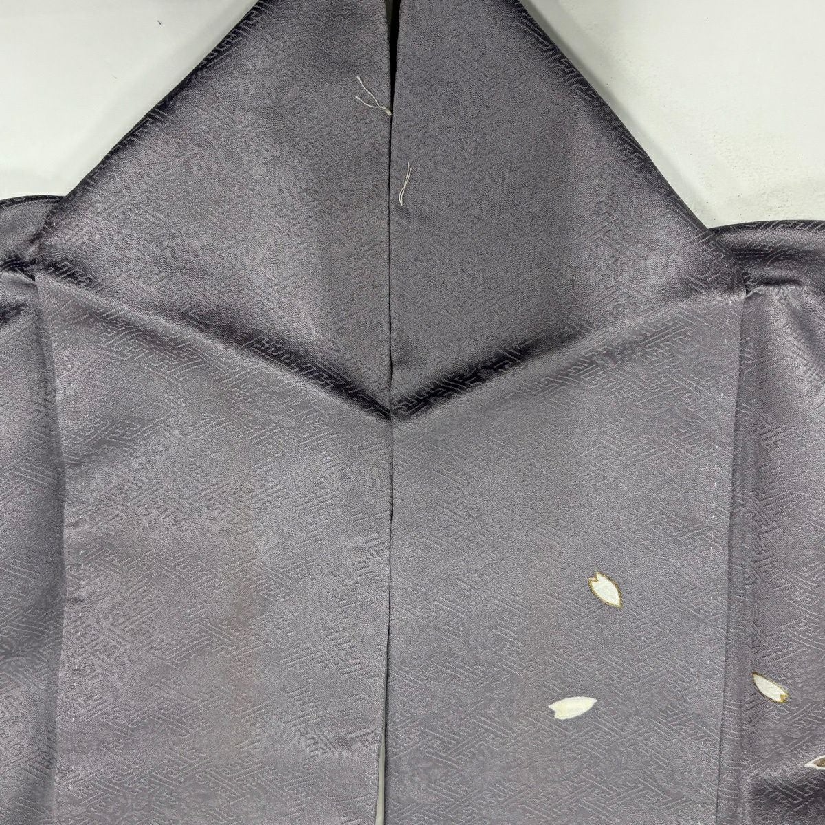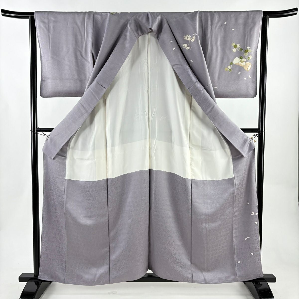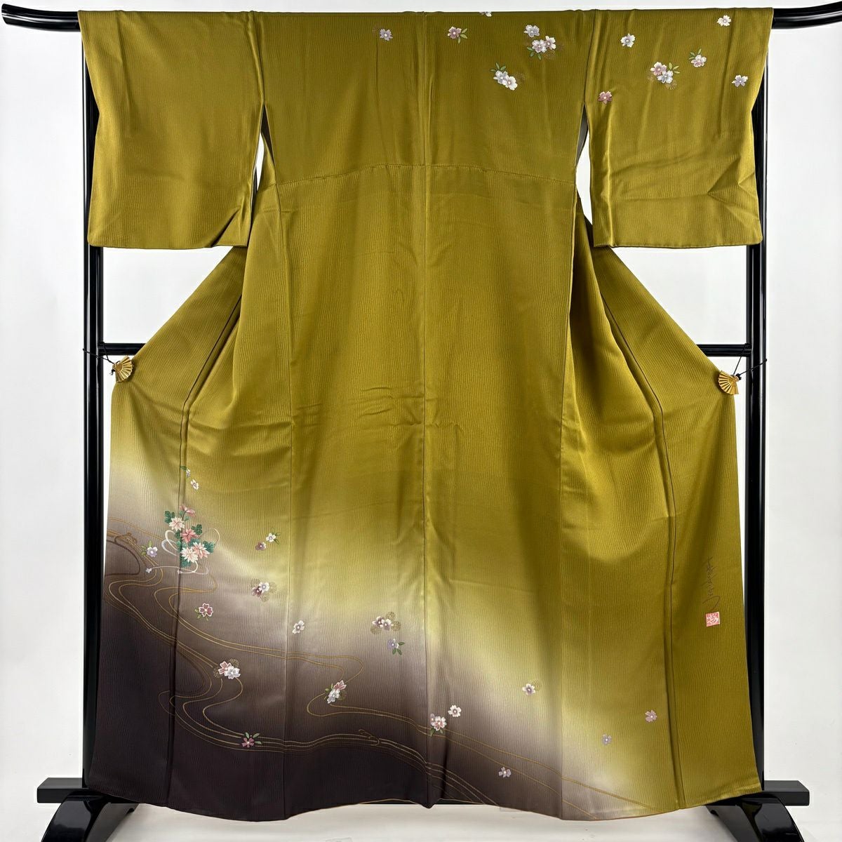 付下げ 身丈153.5cm 裄丈64.5cm M 袷 落款あり 桜 花びら 染め分け ぼかし 灰緑 正絹 秀品