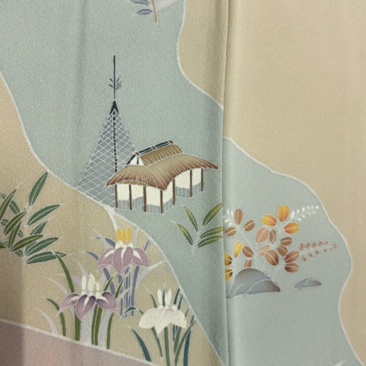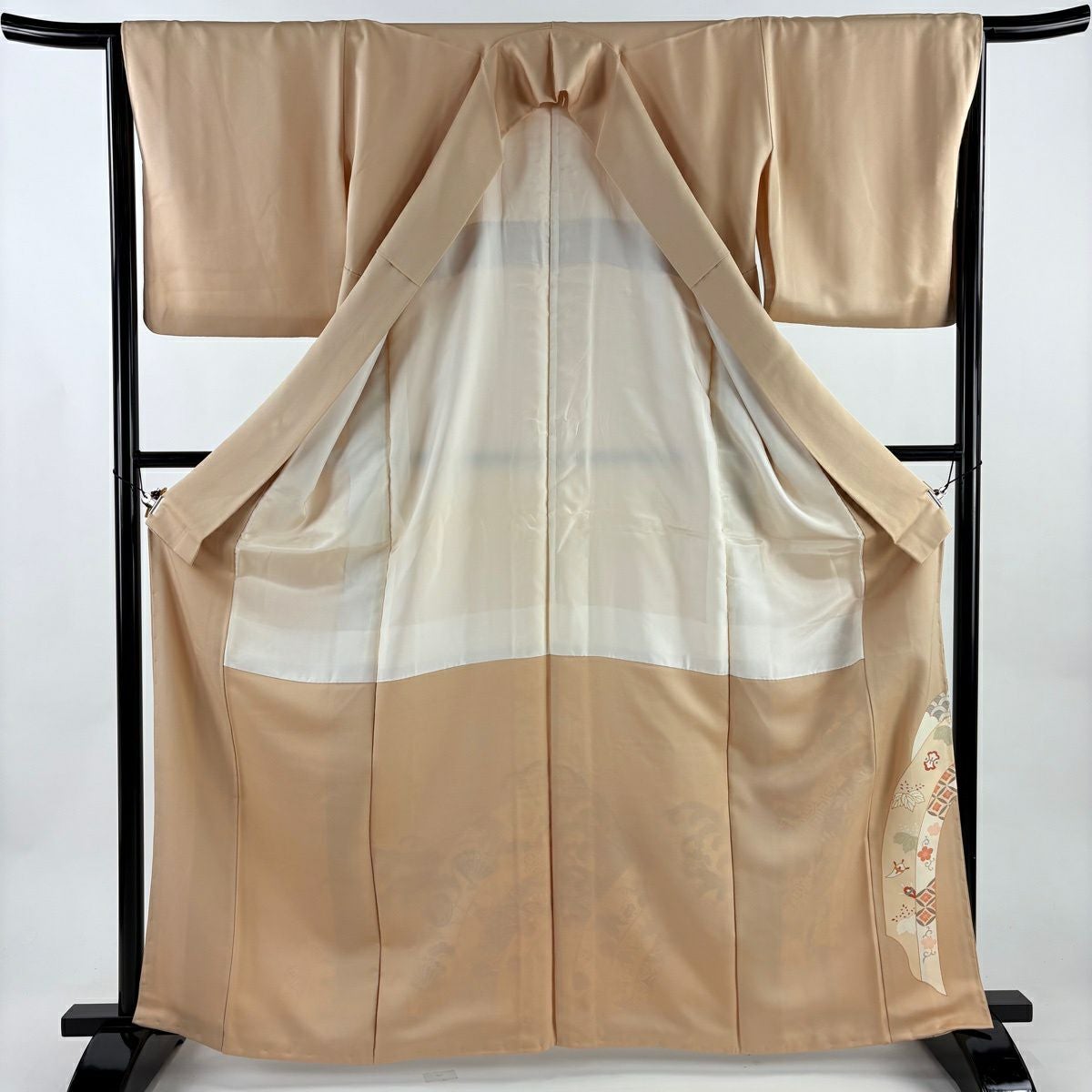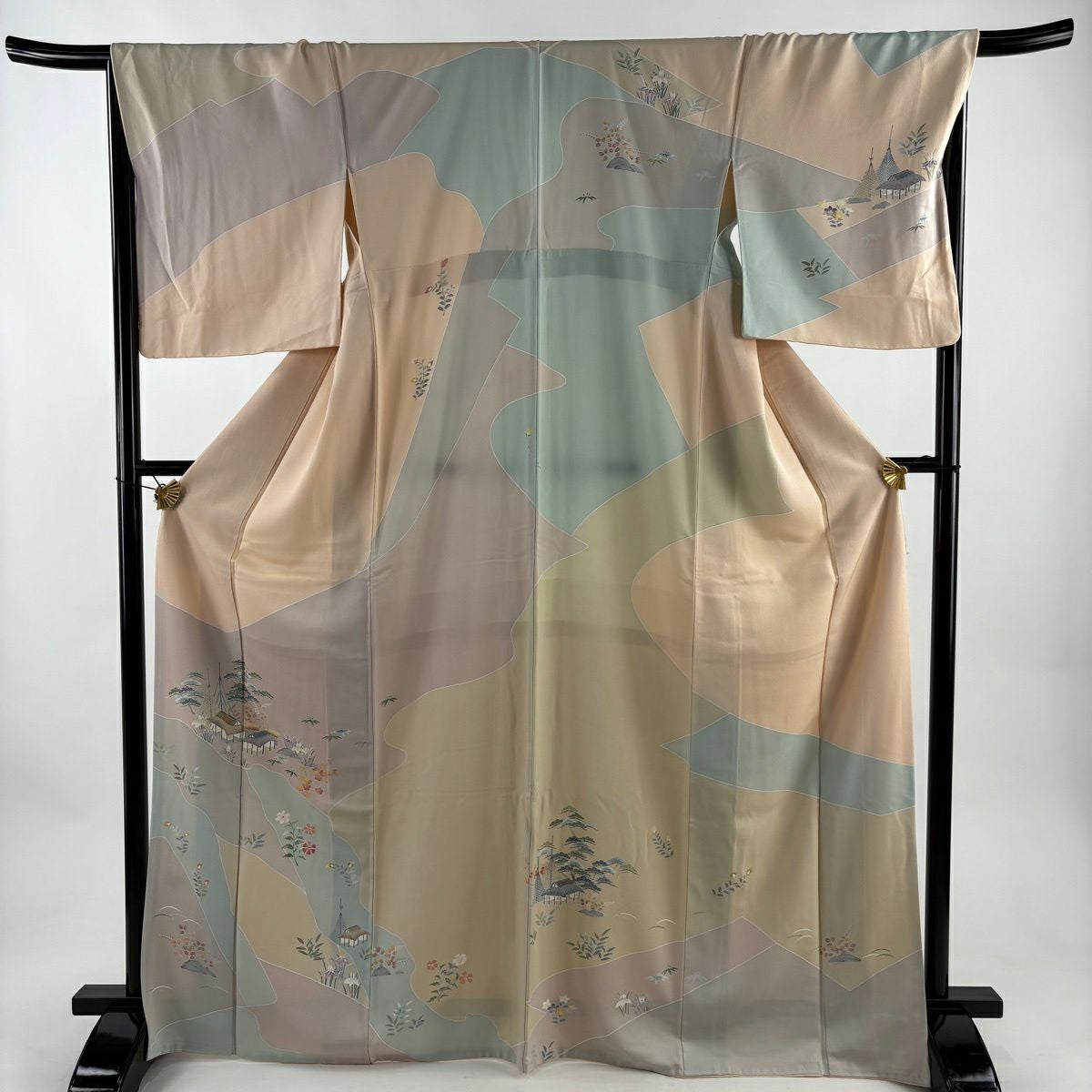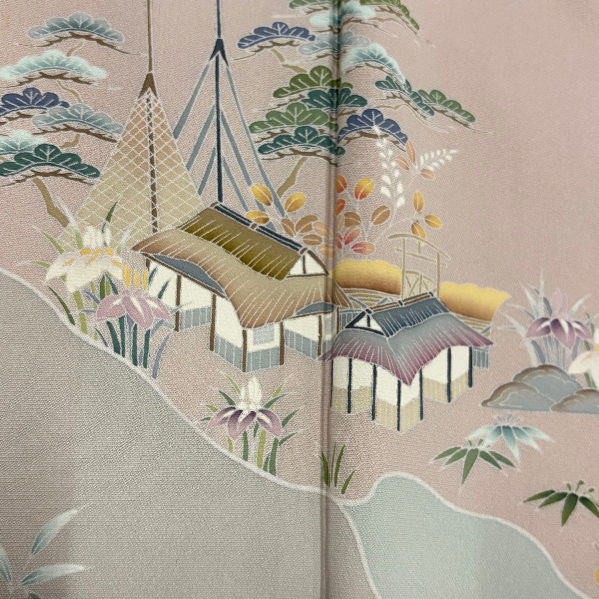 【美品】 訪問着 身丈169.5cm 裄丈68cm L 袷 家屋 松竹梅 ピンクベージュ 正絹 秀品