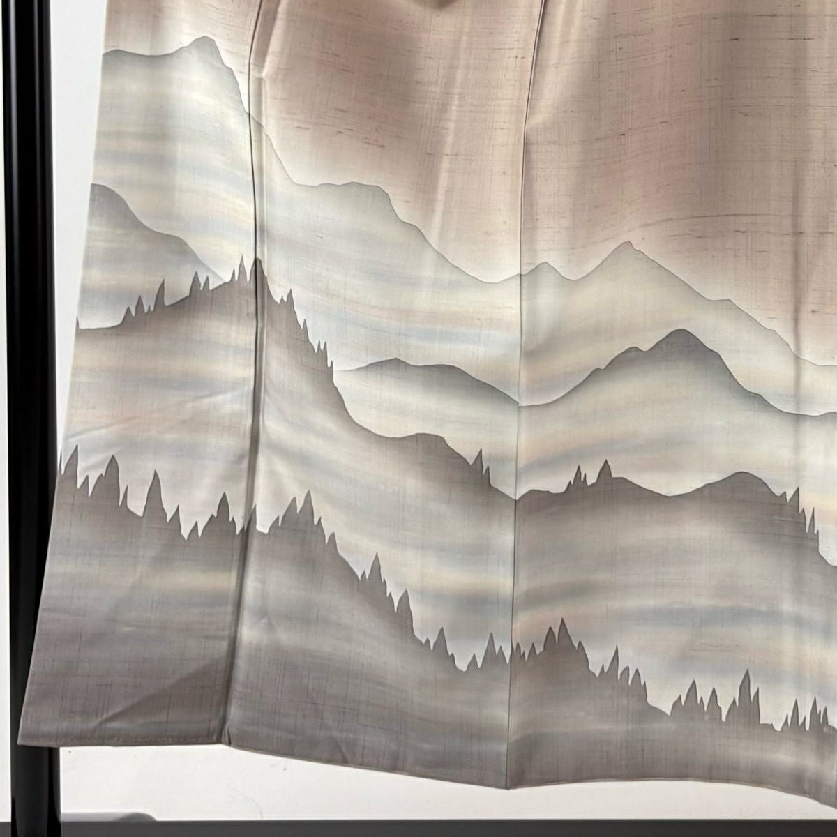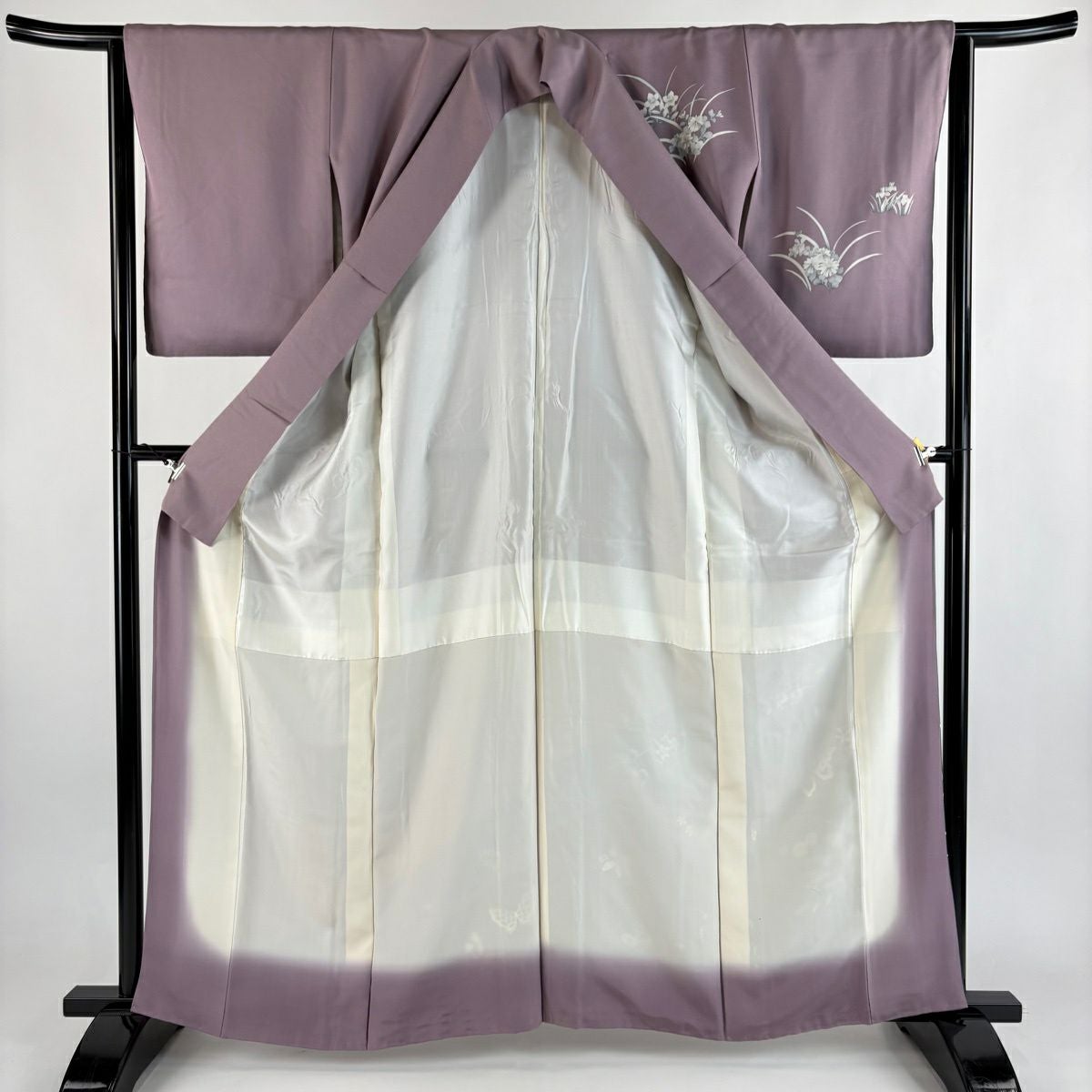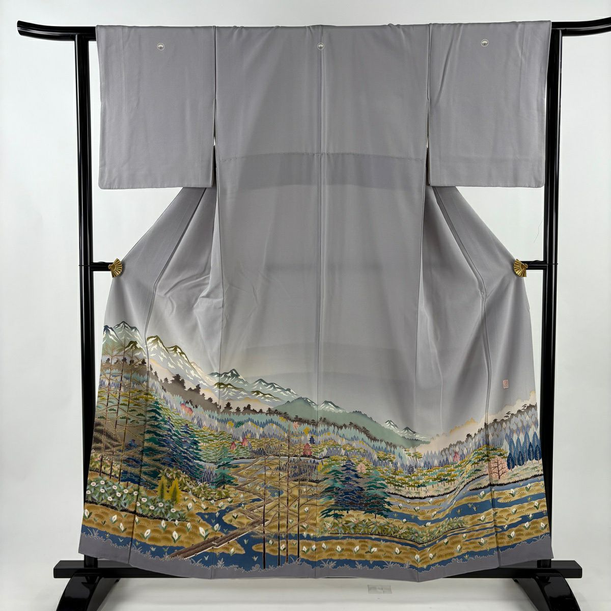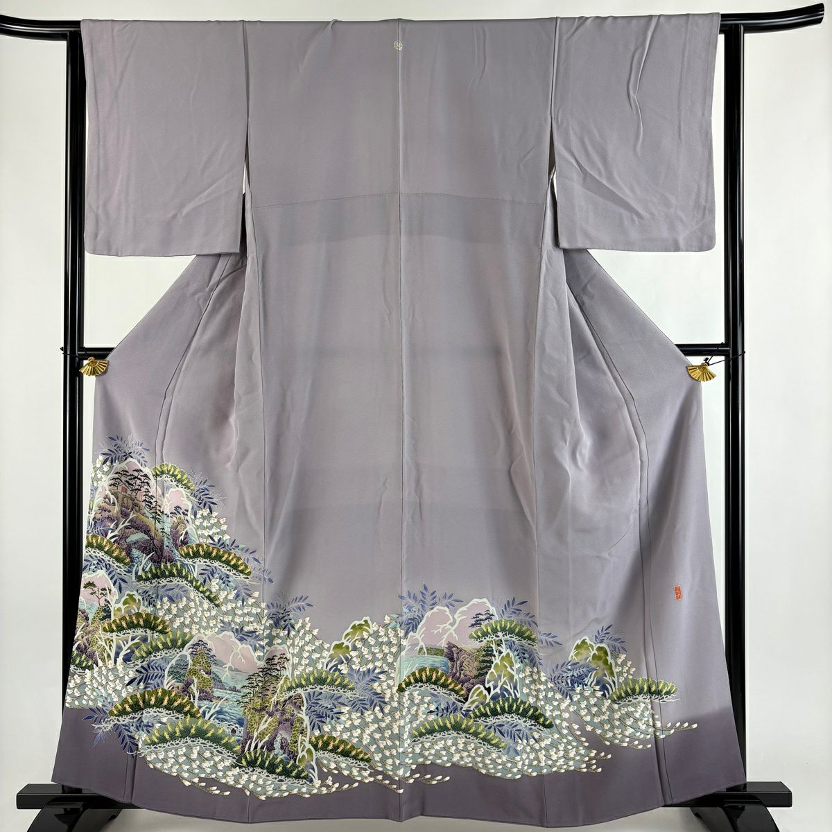 色留袖 身丈158.5cm 裄丈62.5cm S 袷 落款あり 風景 山並み ぼかし 灰紫 正絹 秀品 三つ紋