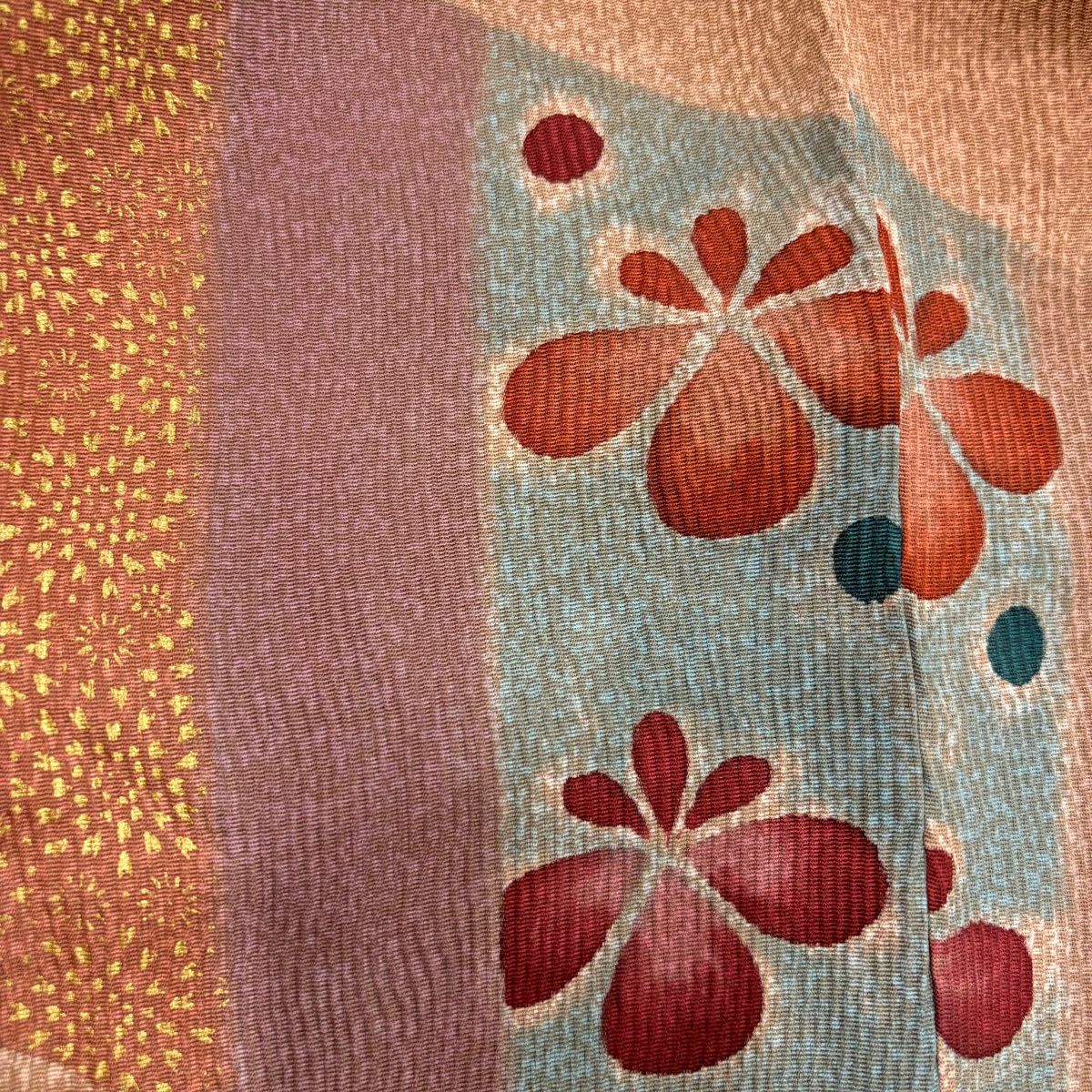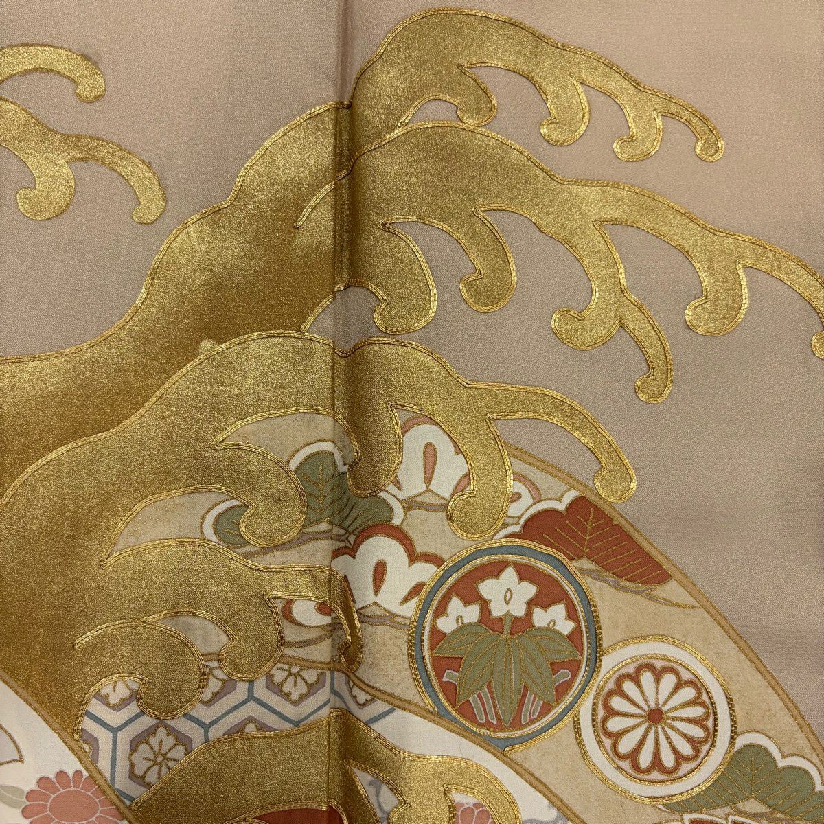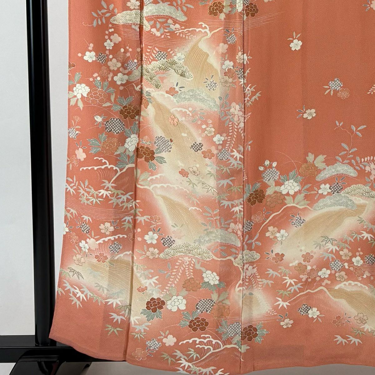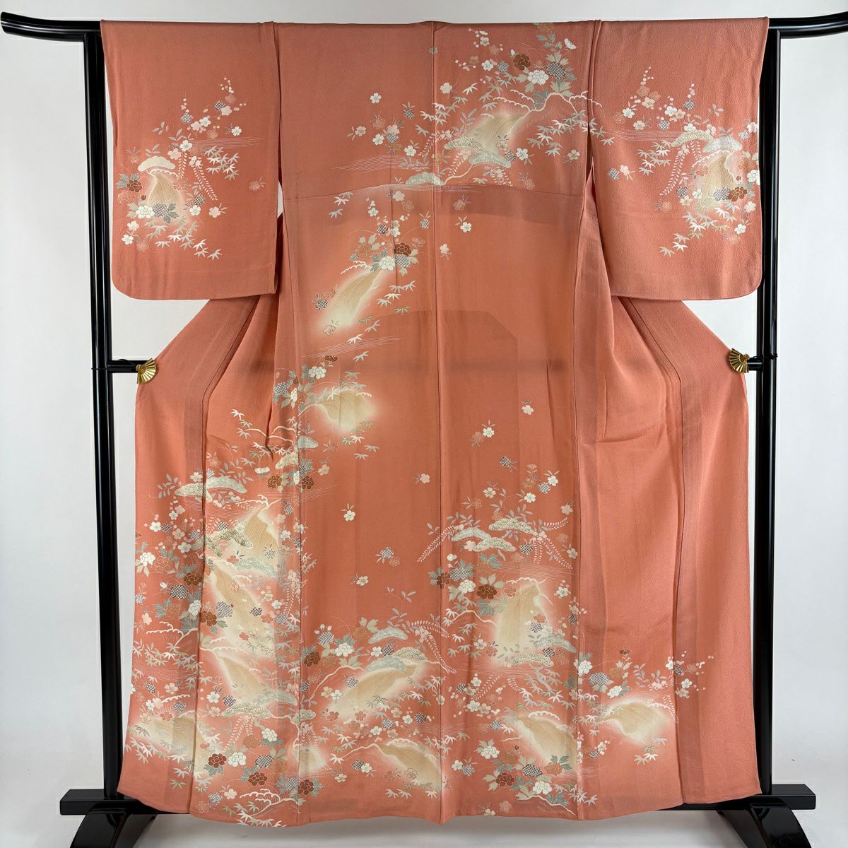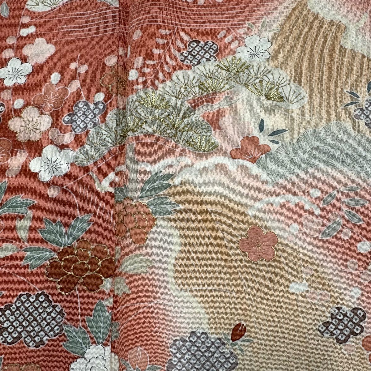 訪問着 身丈155cm 裄丈62.5cm S 袷 鈴乃屋 扇 波 金彩 ぼかし サーモンピンク 正絹 秀品