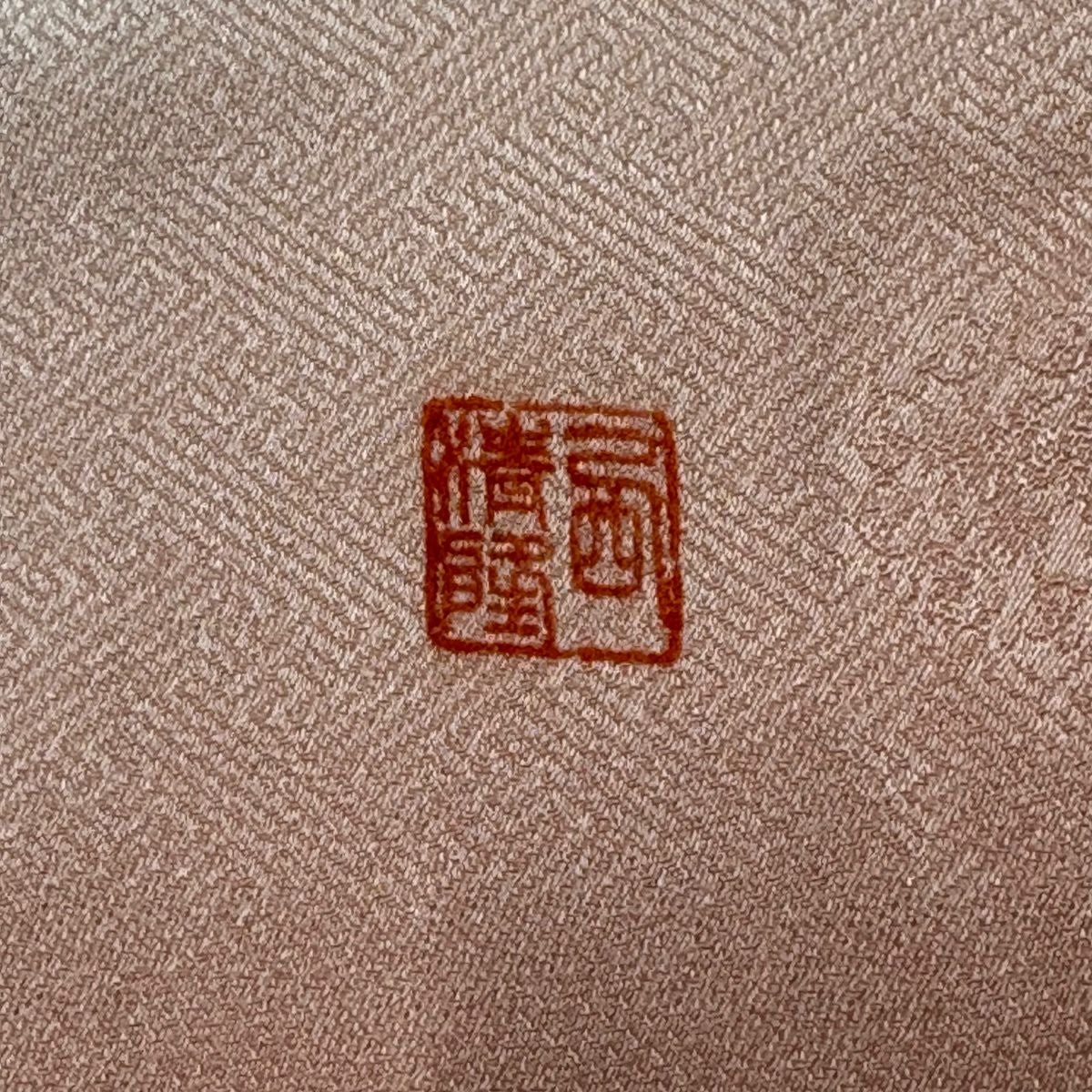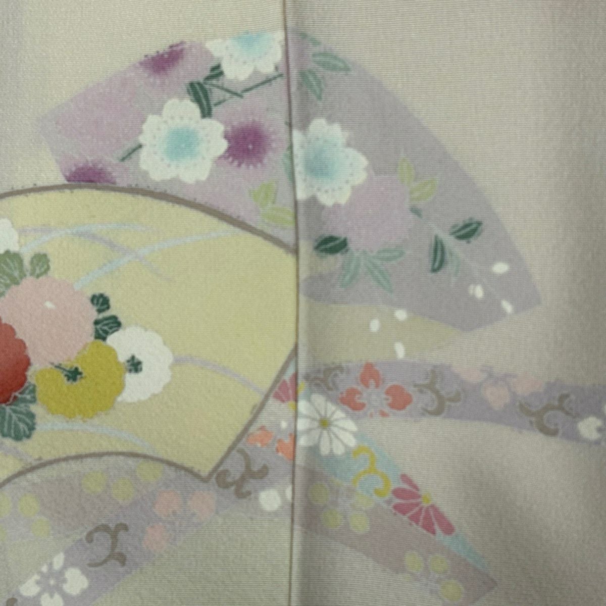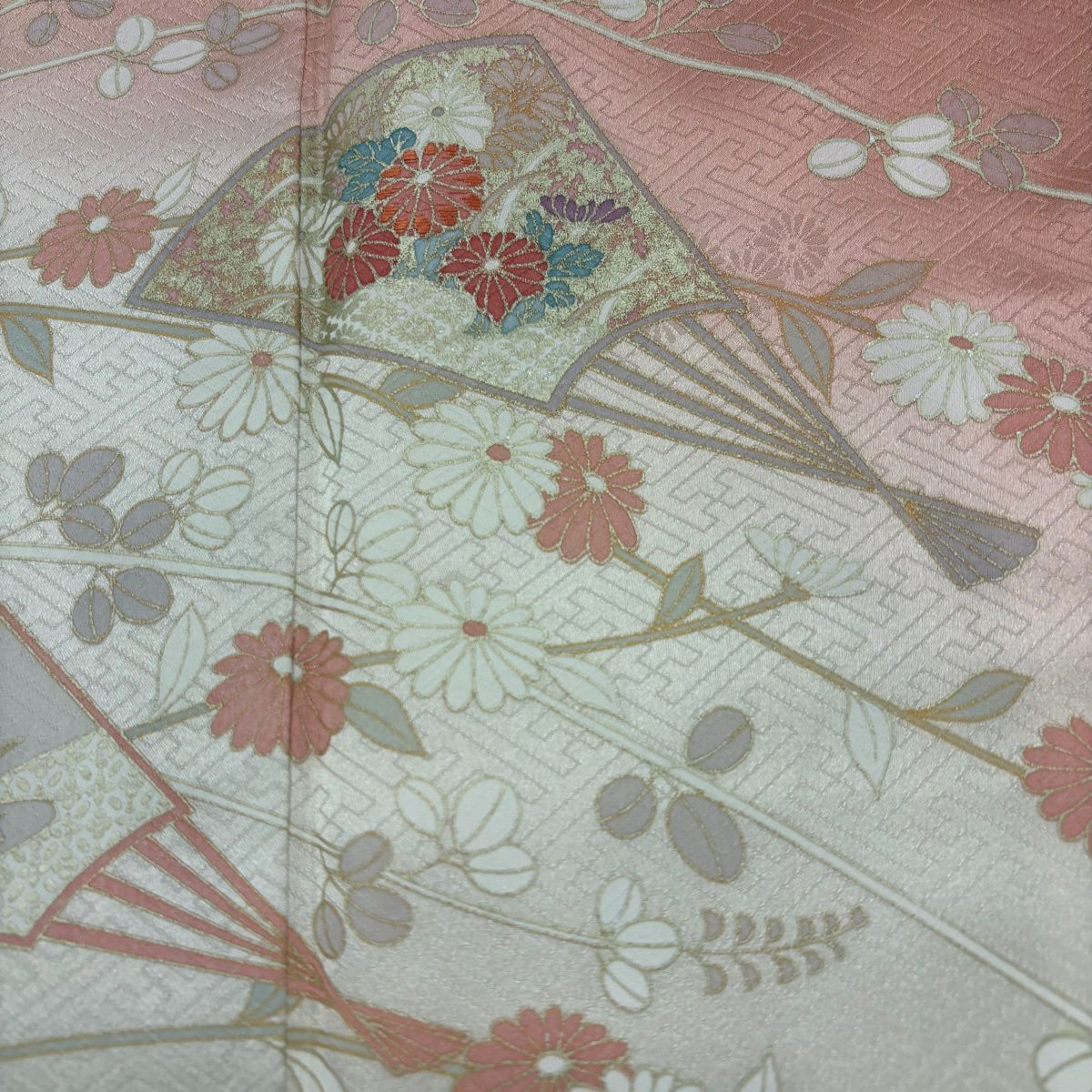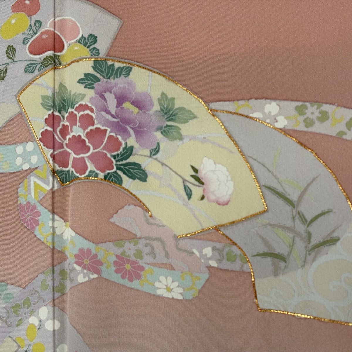 訪問着 身丈166cm 裄丈67.5cm L 袷 落款あり 扇面 草花 金糸 ぼかし ピンク 正絹 秀品