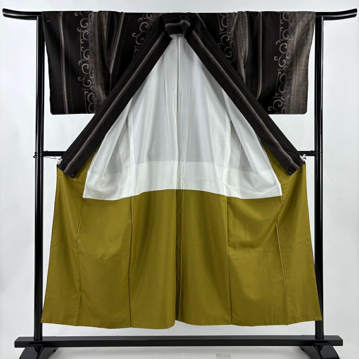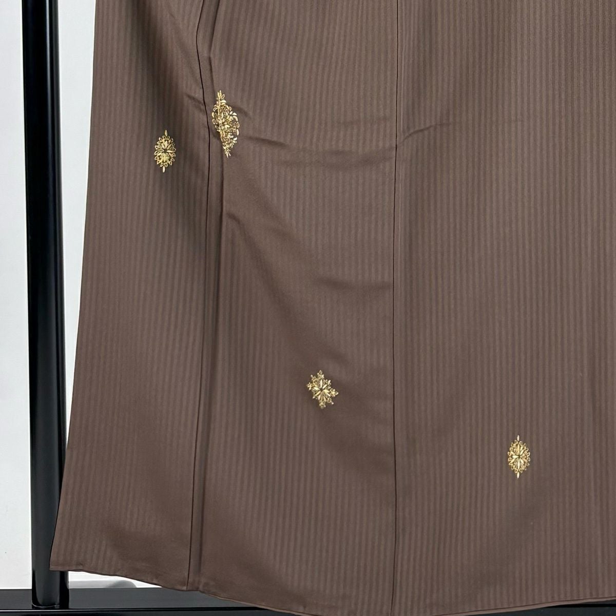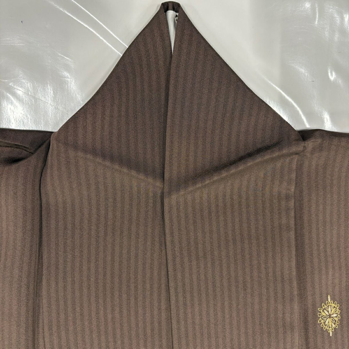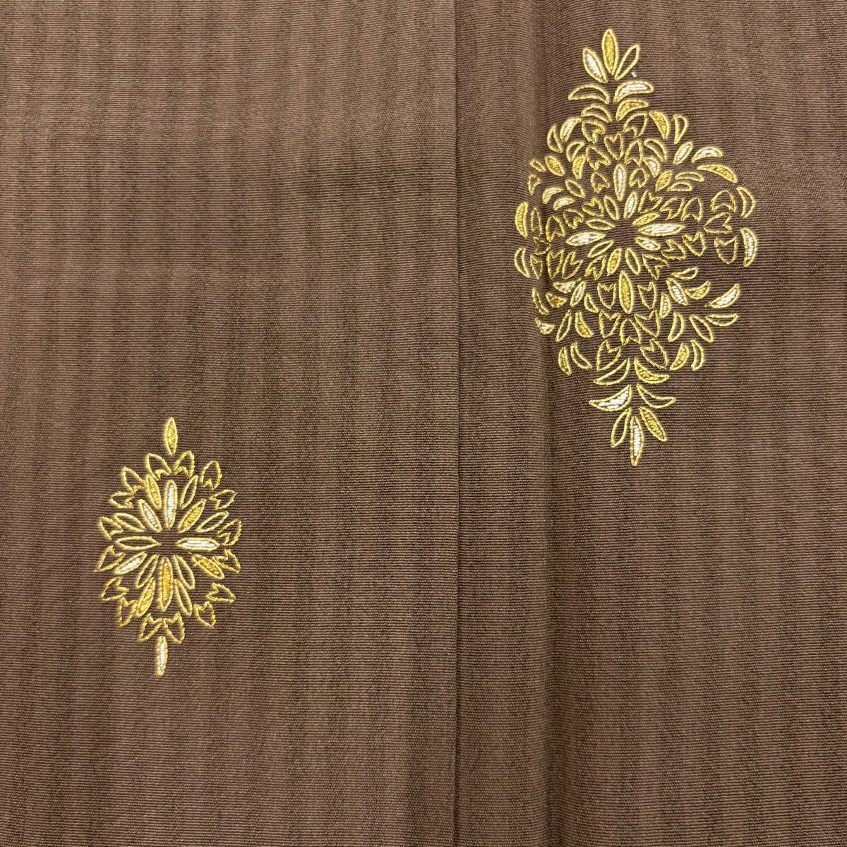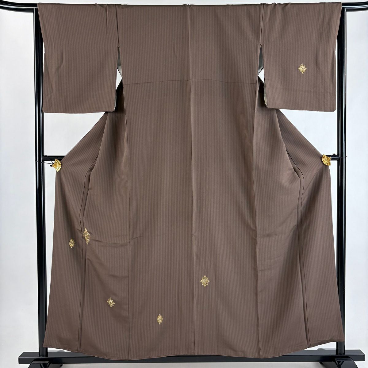 【美品】 付下げ 身丈156cm 裄丈65.5cm M 袷 華文 縦縞模様 金糸 刺繍 焦茶色 正絹 秀品