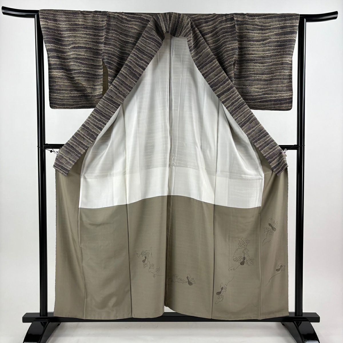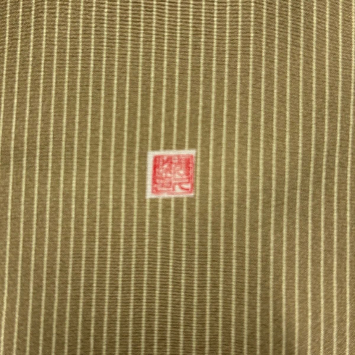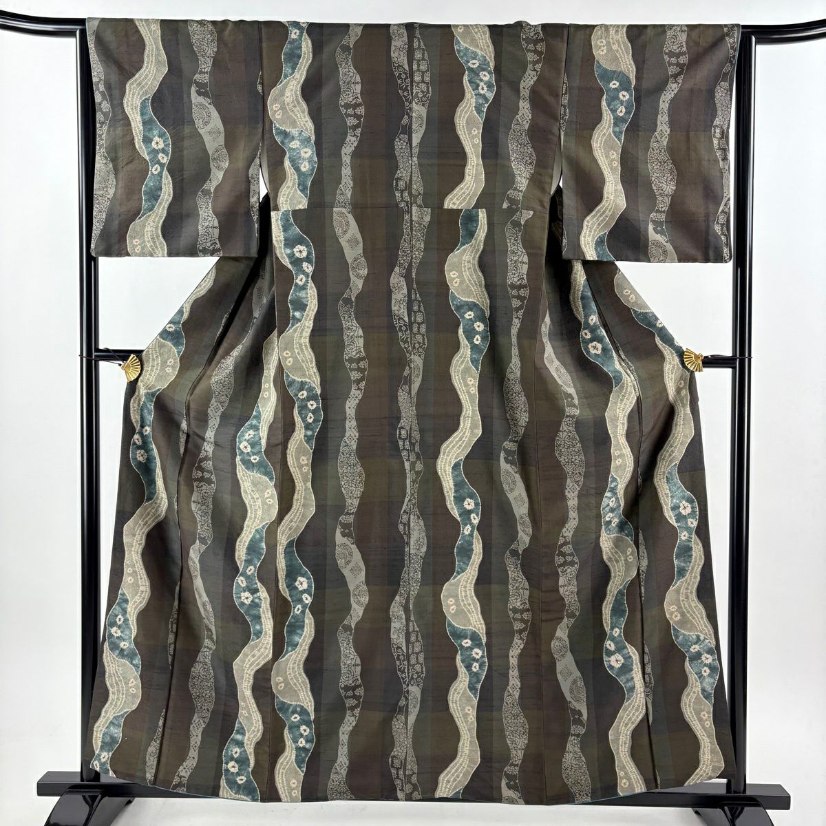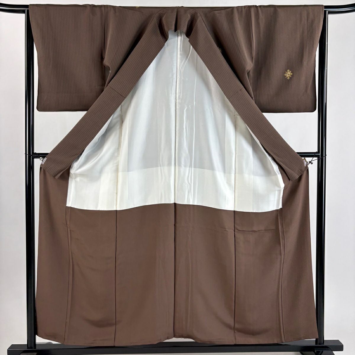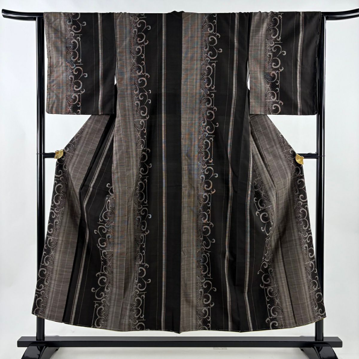 【美品】 付下げ 身丈156cm 裄丈65.5cm M 袷 華文 縦縞模様 金糸 刺繍 焦茶色 正絹 秀品