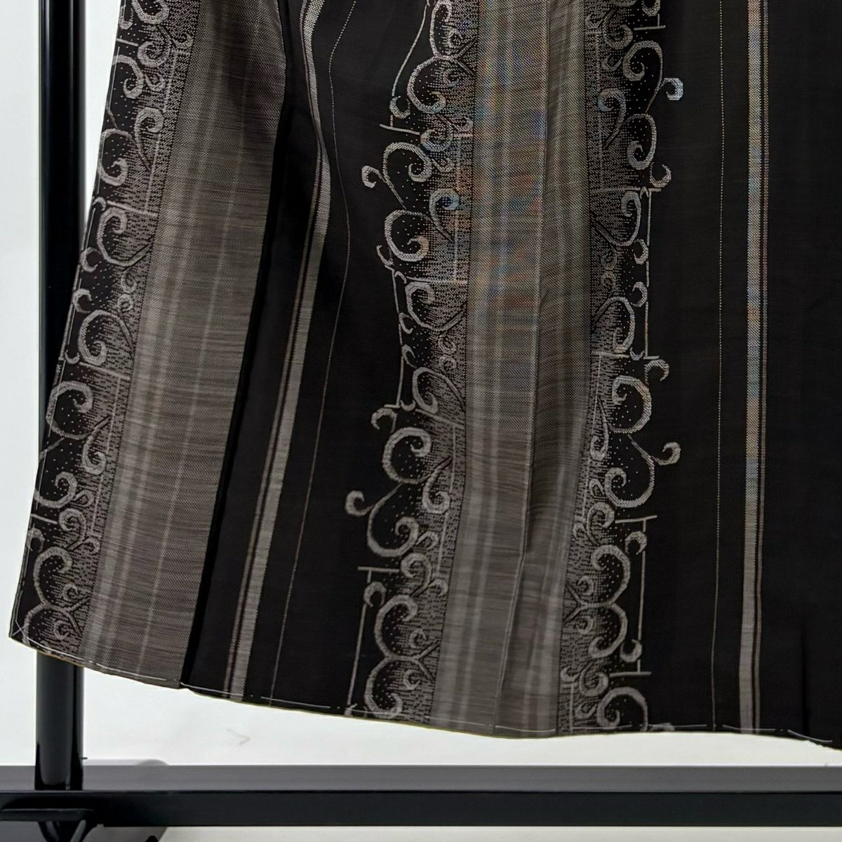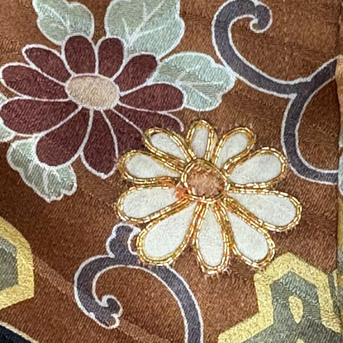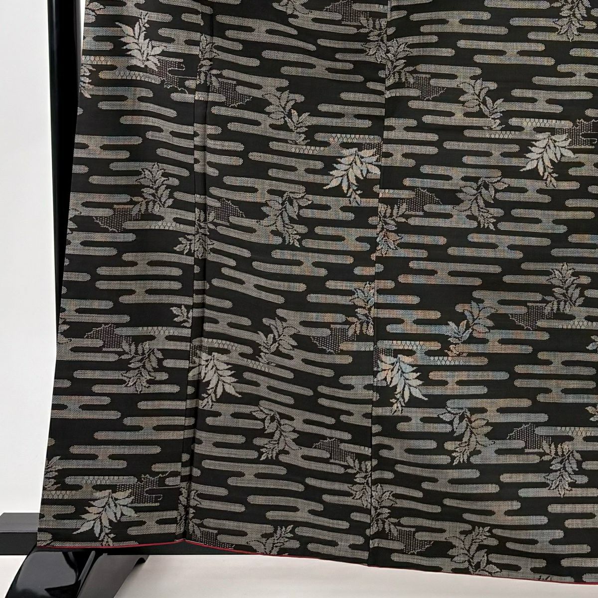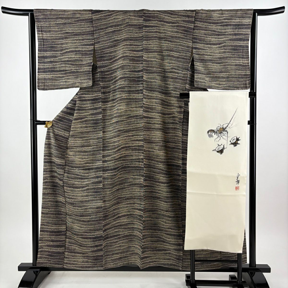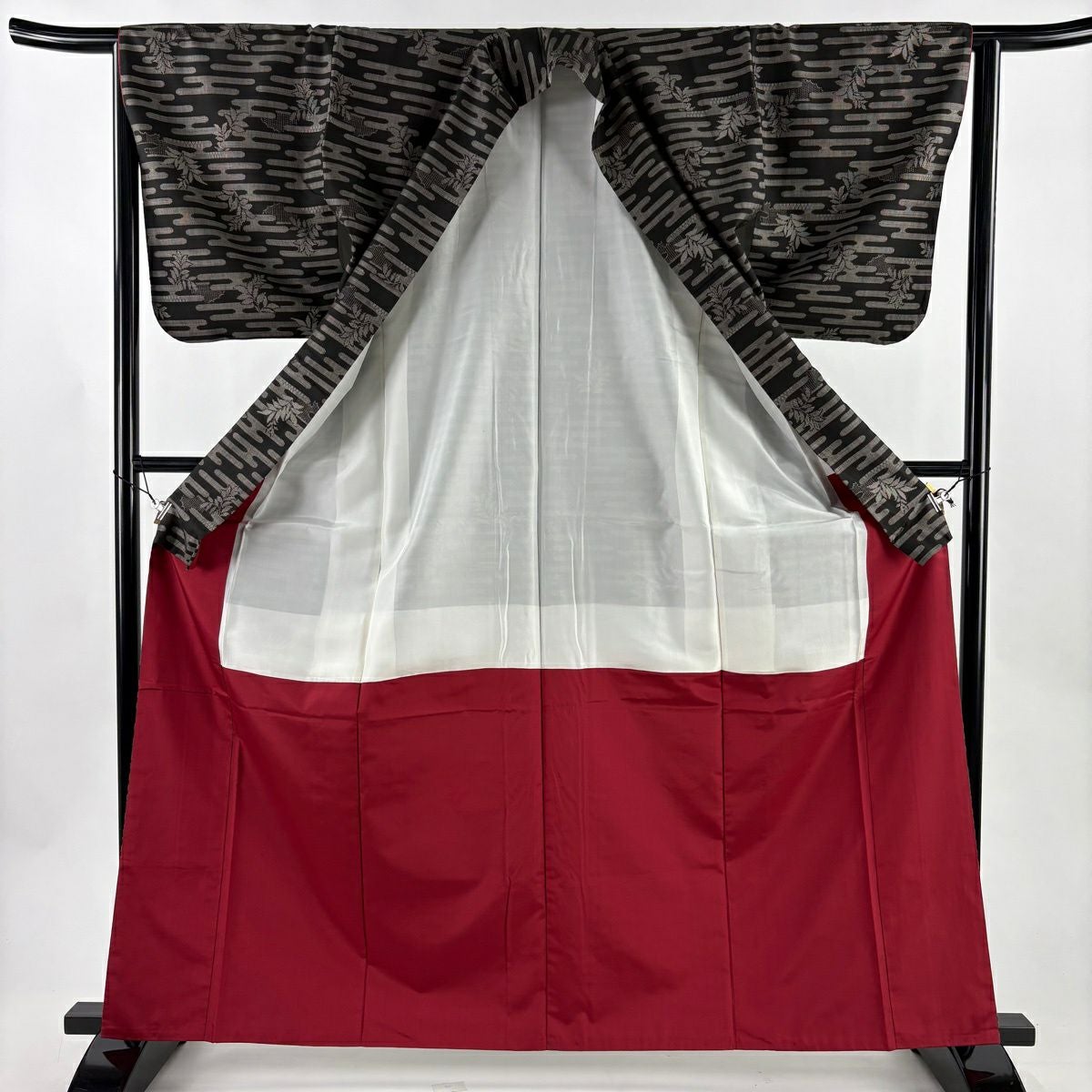 【美品】 付下げ 身丈156cm 裄丈65.5cm M 袷 華文 縦縞模様 金糸 刺繍 焦茶色 正絹 秀品