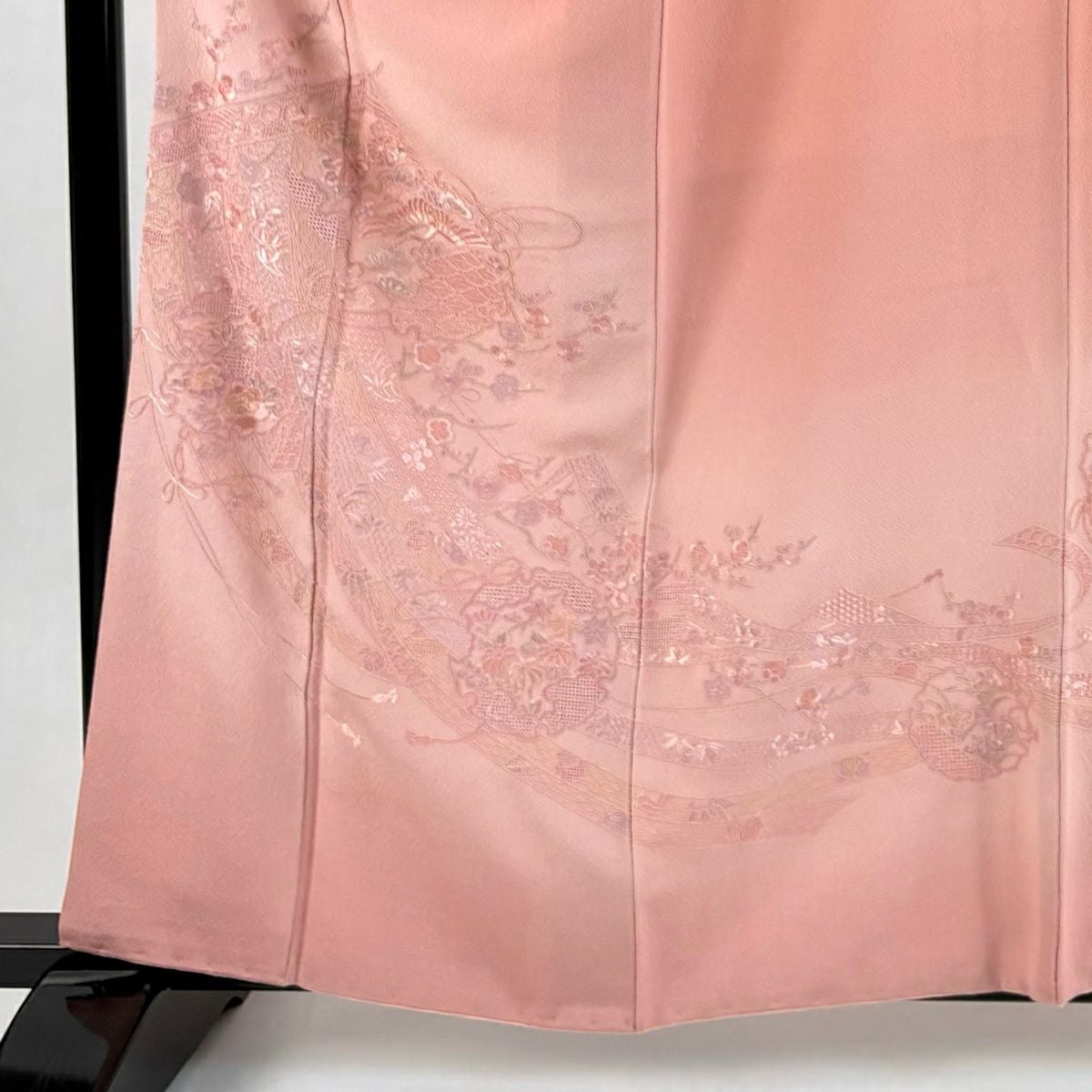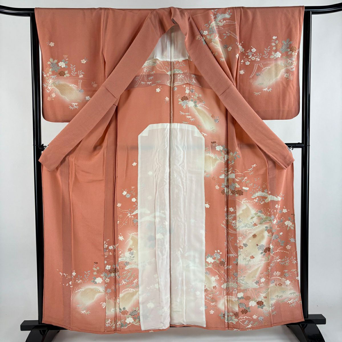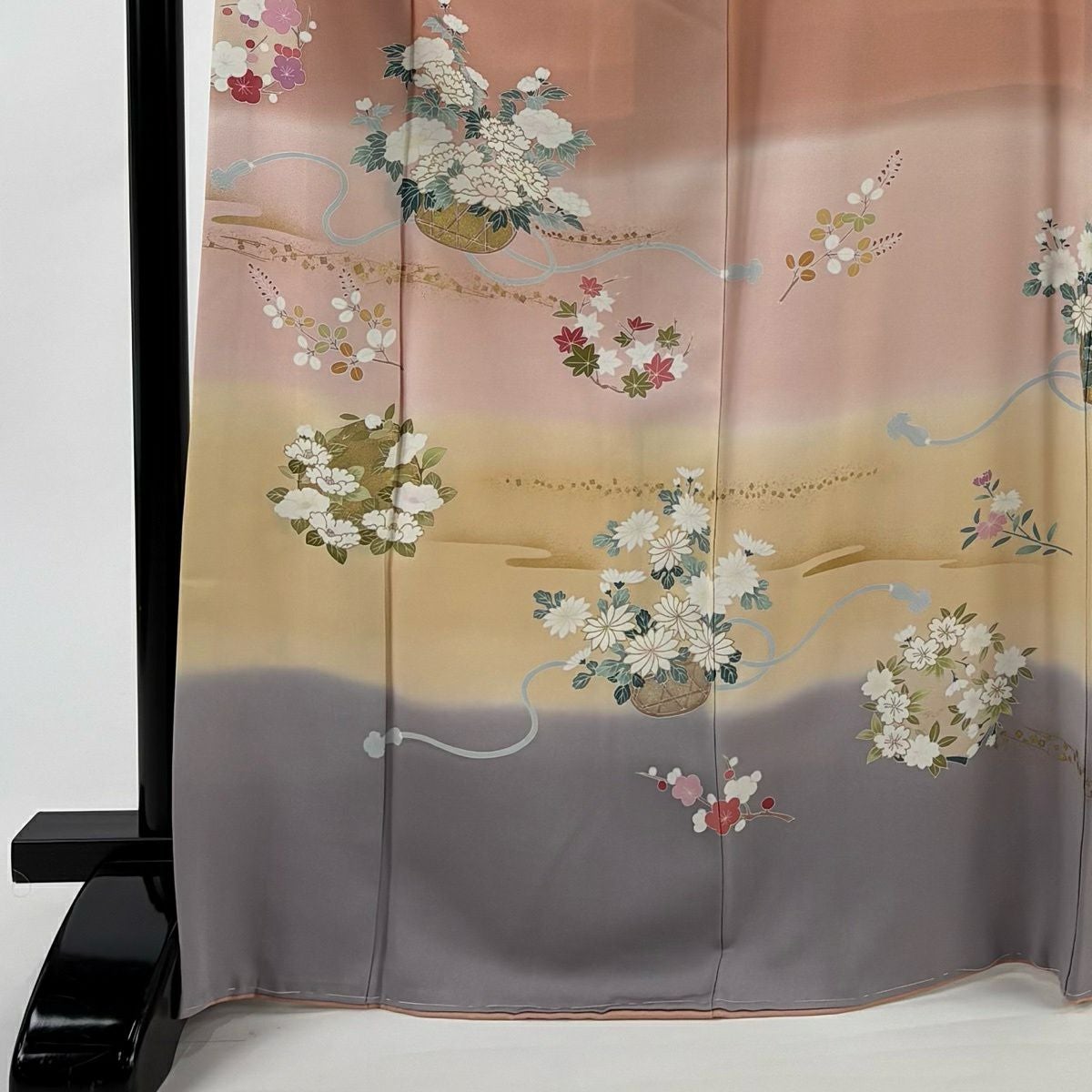 訪問着 身丈170cm 裄丈67.5cm L 袷 花籠 花丸文 金彩 染め分け サーモンピンク 正絹 秀品
