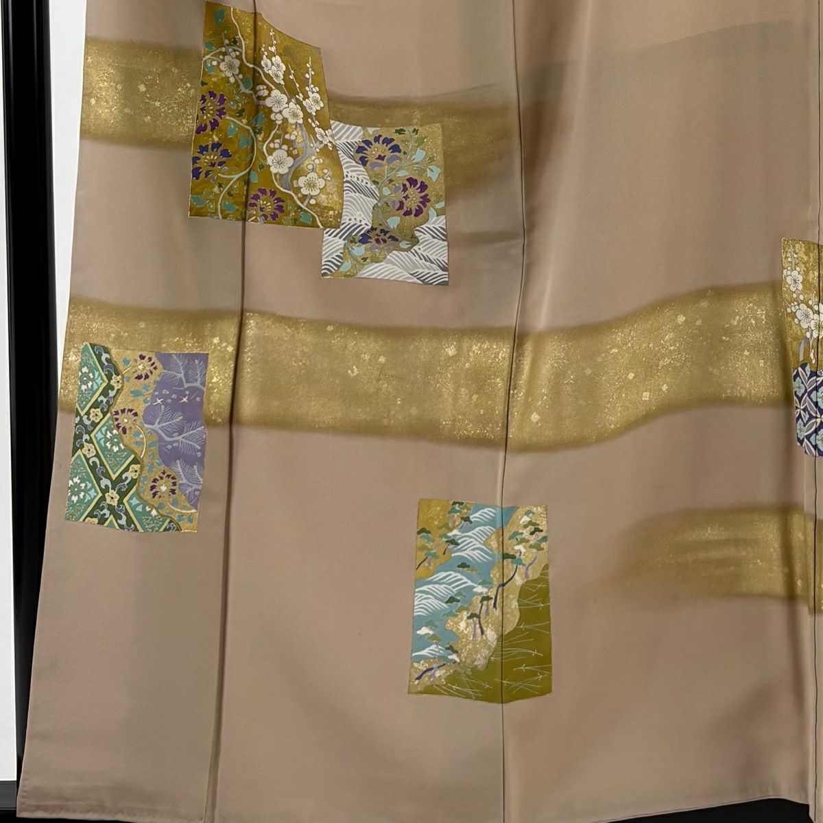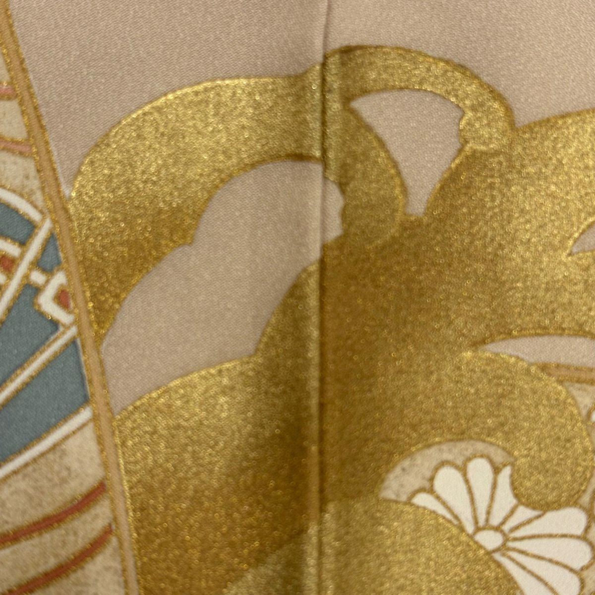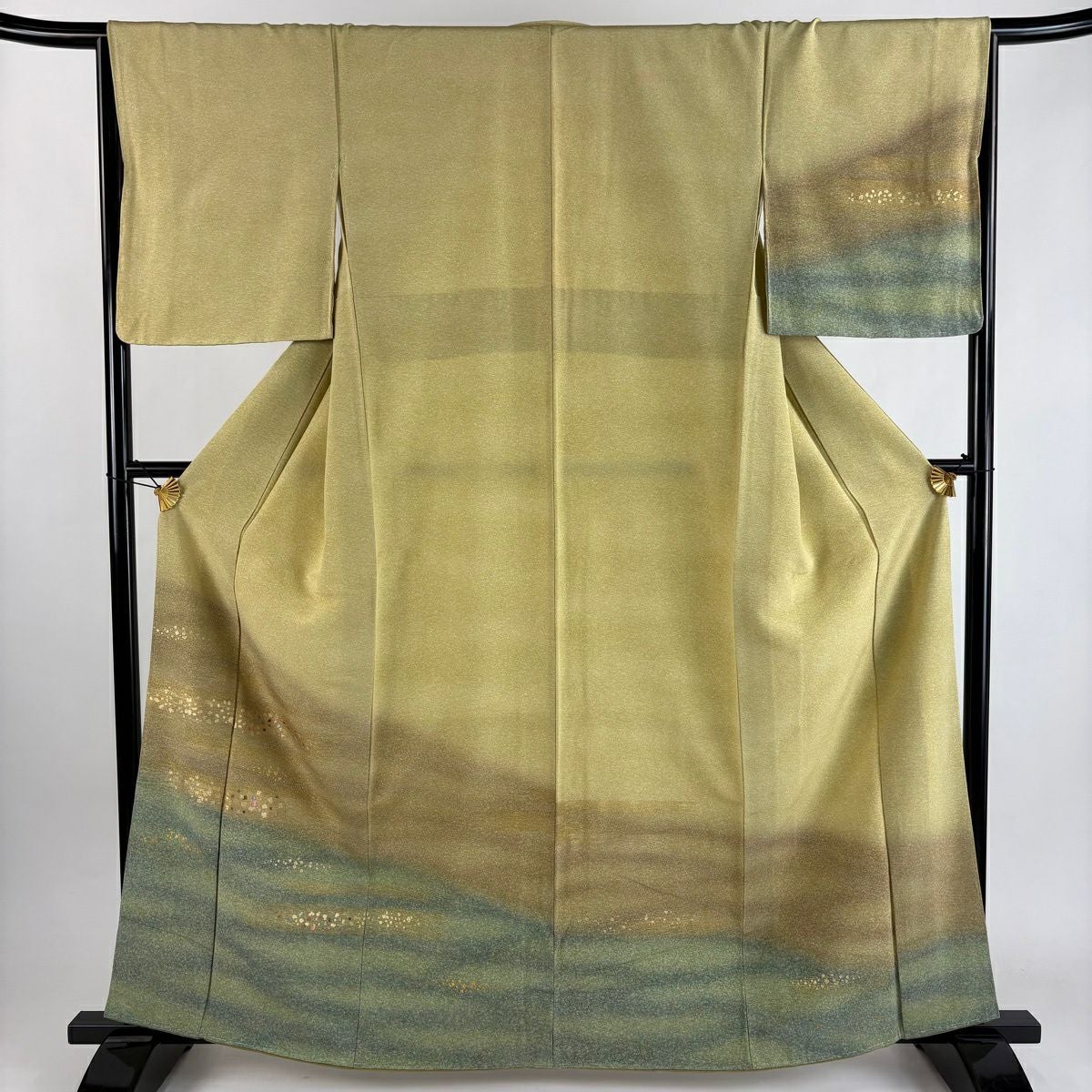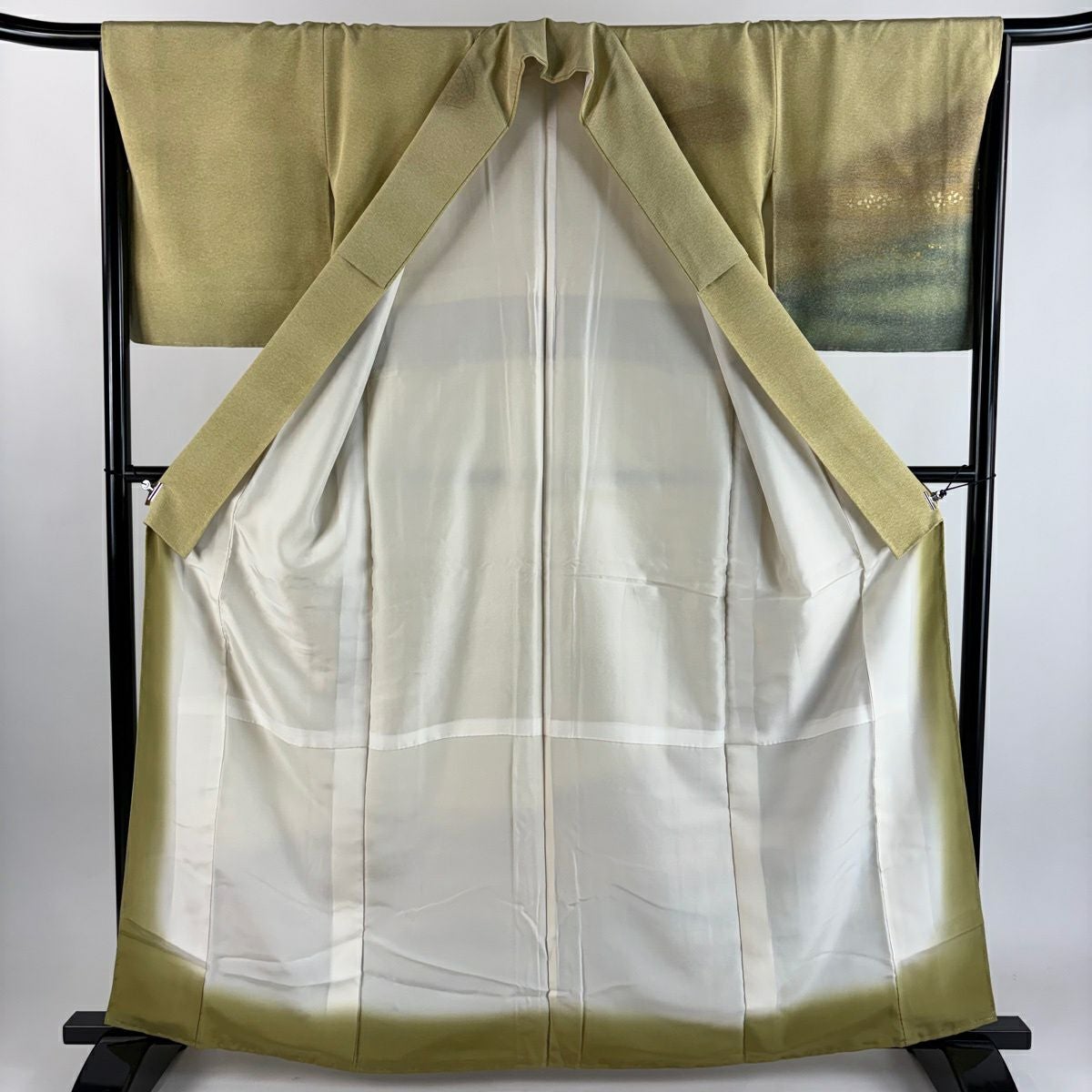【美品】 付下げ 身丈163cm 裄丈66cm M 袷 霞 箔ちらし 刺繍 金彩 ベージュ 正絹 秀品