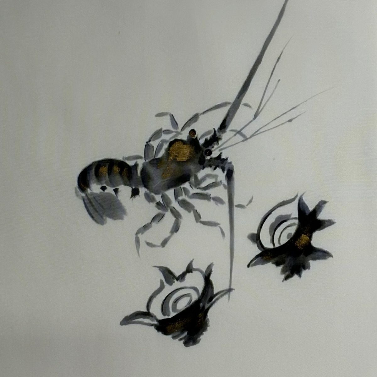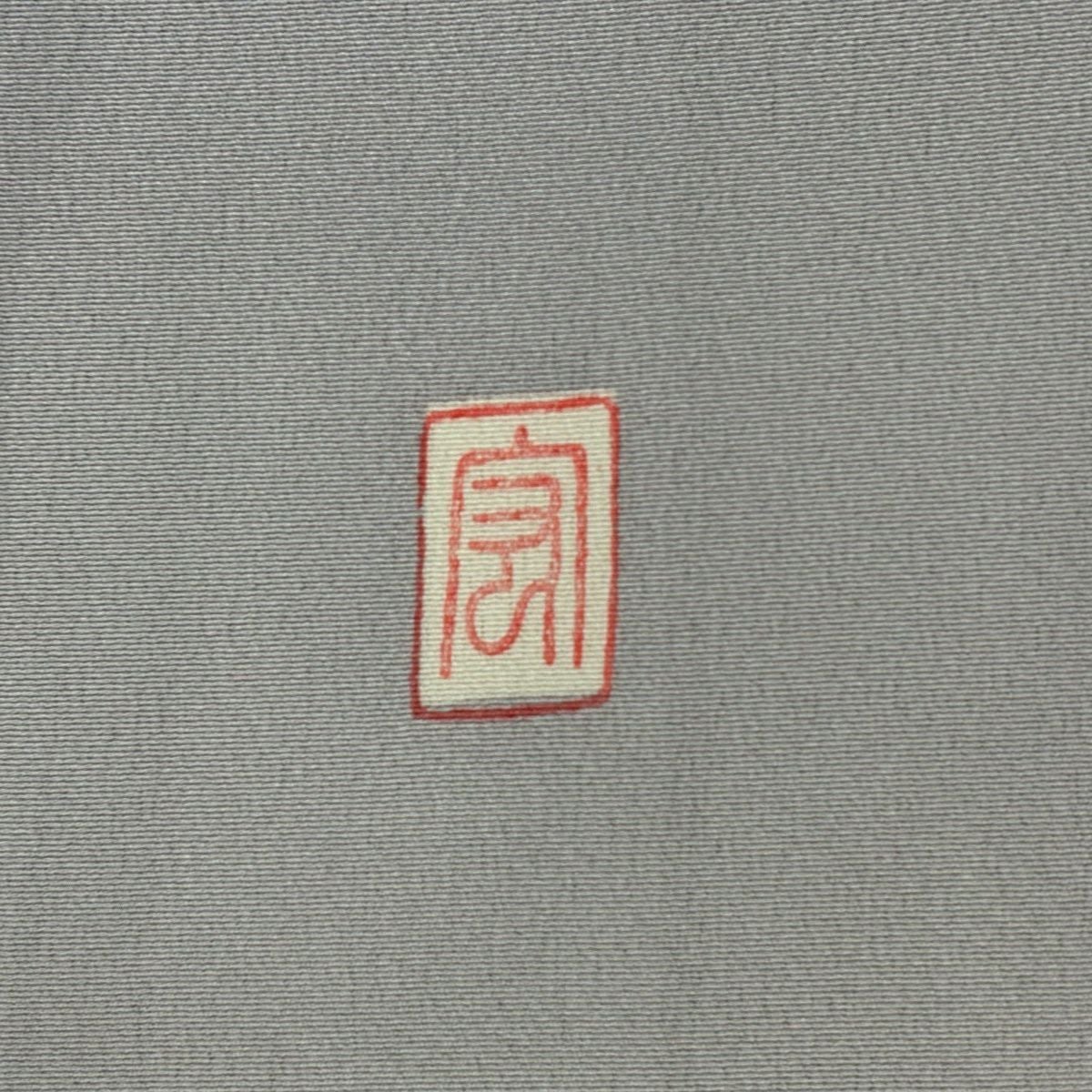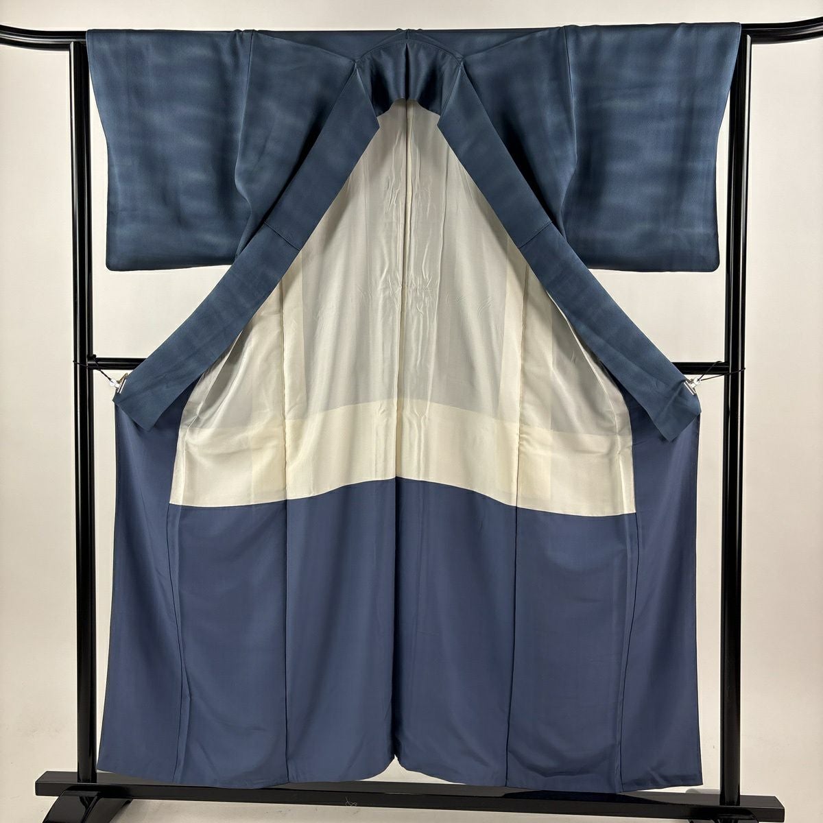 訪問着 身丈168cm 裄丈67cm M 袷 落款あり 枝花 シルエット 金彩 ぼかし 青灰色 正絹 秀品