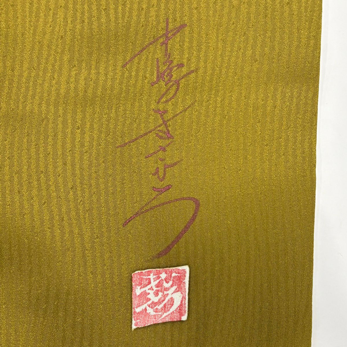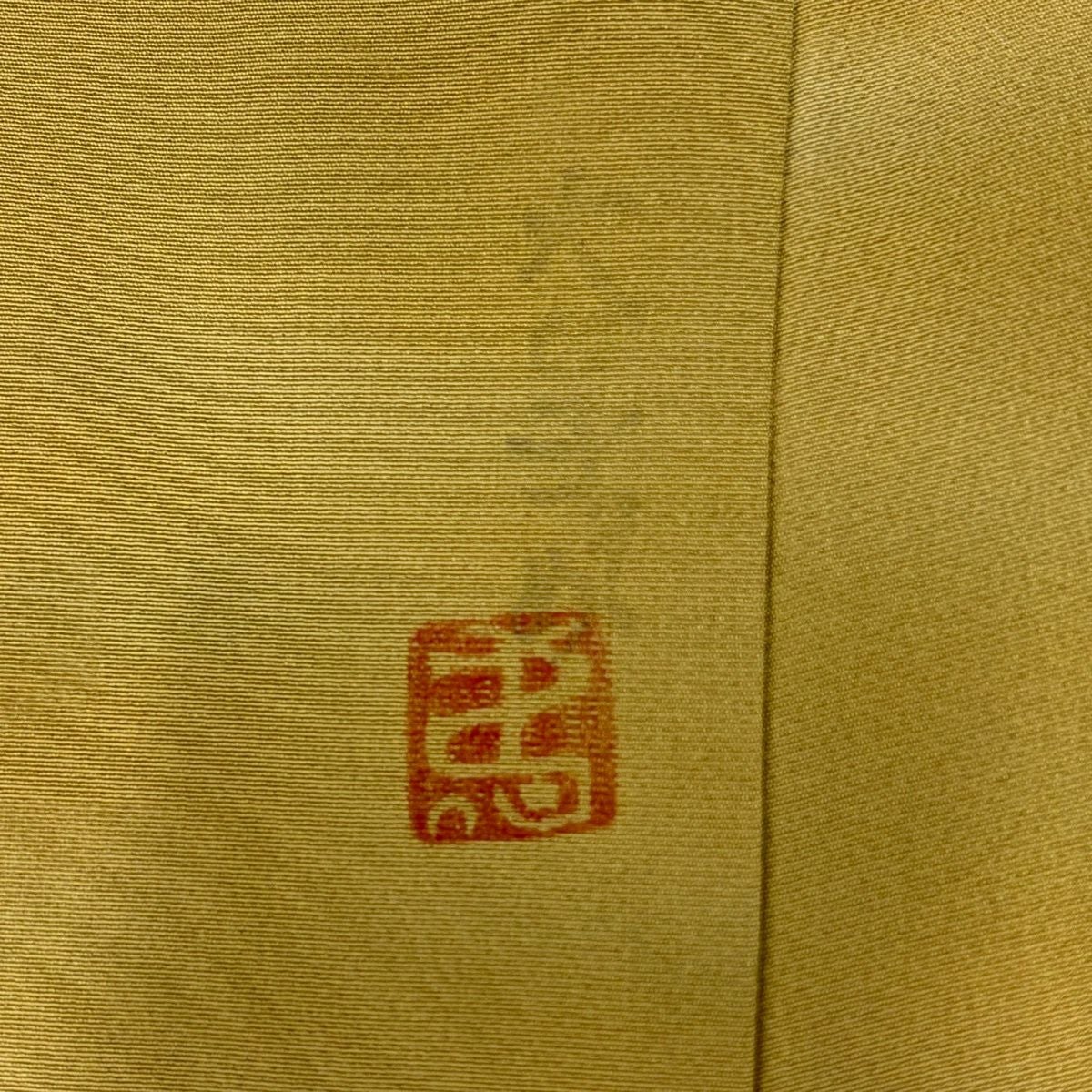 【美品】 小紋 身丈154.5cm 裄丈64.5cm M 袷 落款あり ぼかし柄 大田子染 からし色 正絹 秀品