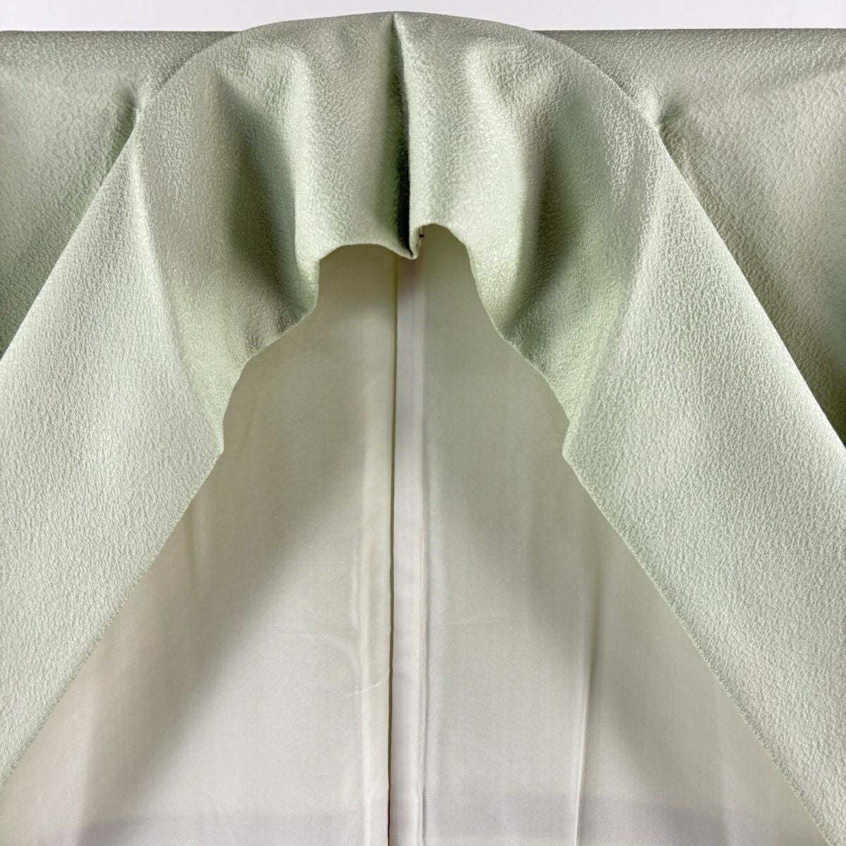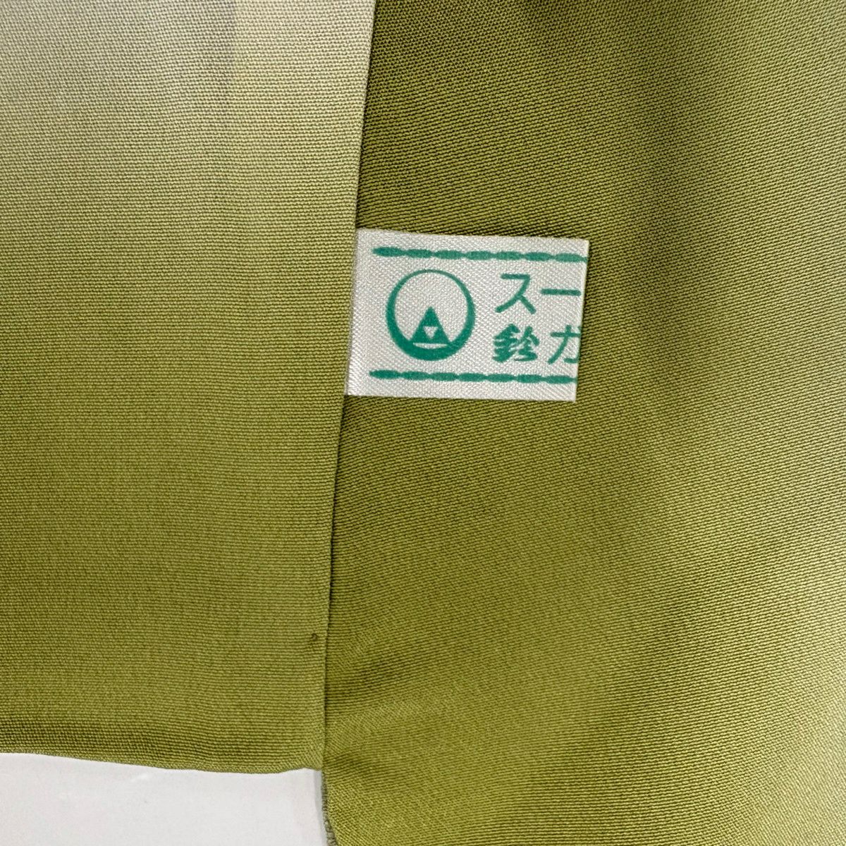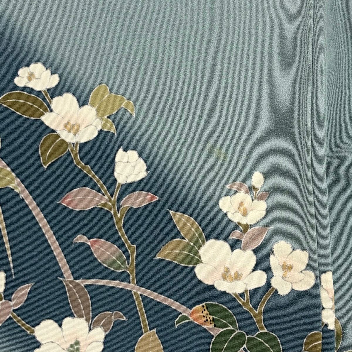 【美品】 訪問着 身丈169cm 裄丈65cm M 袷 袋帯セット 椿 霞 絞り ぼかし 灰緑 正絹 秀品