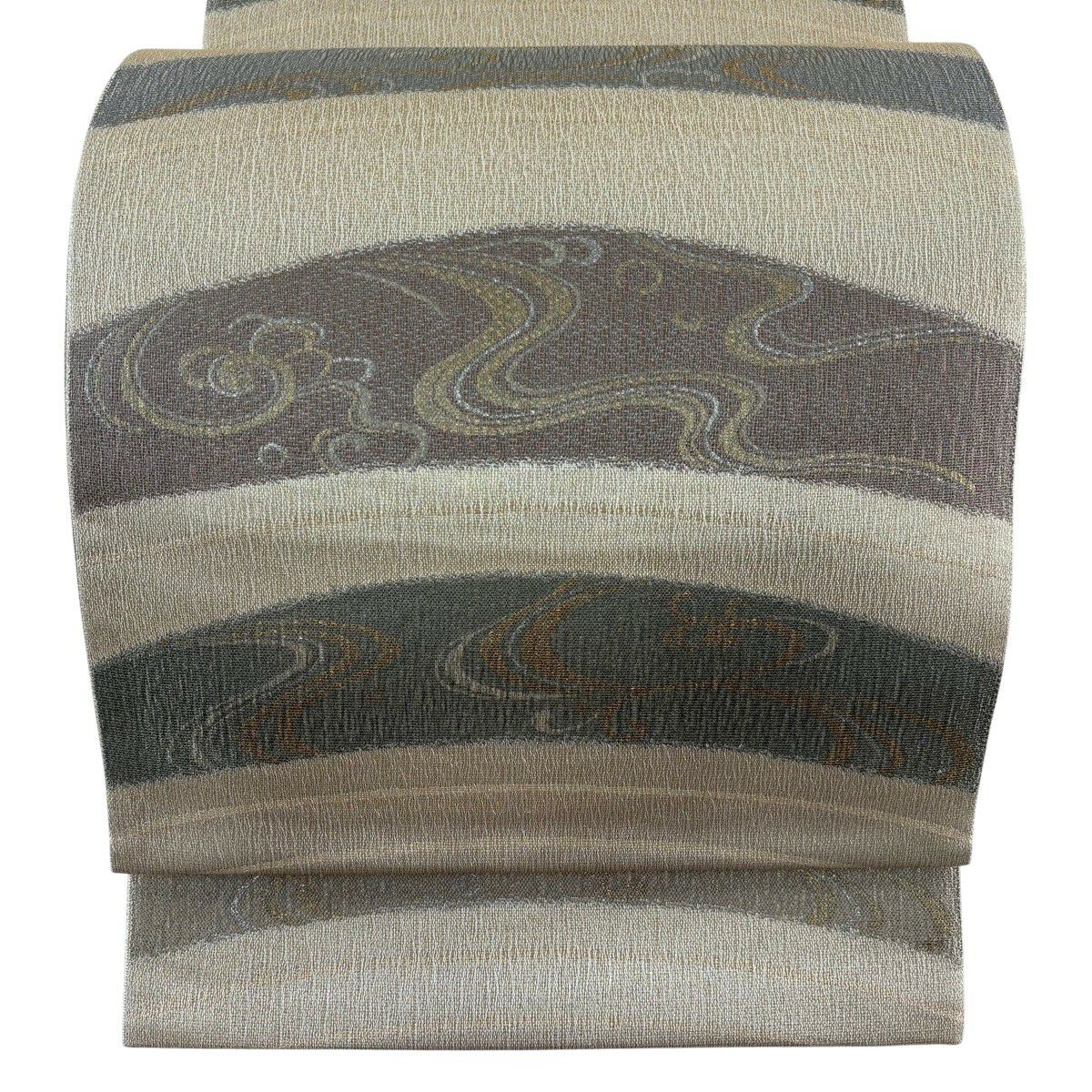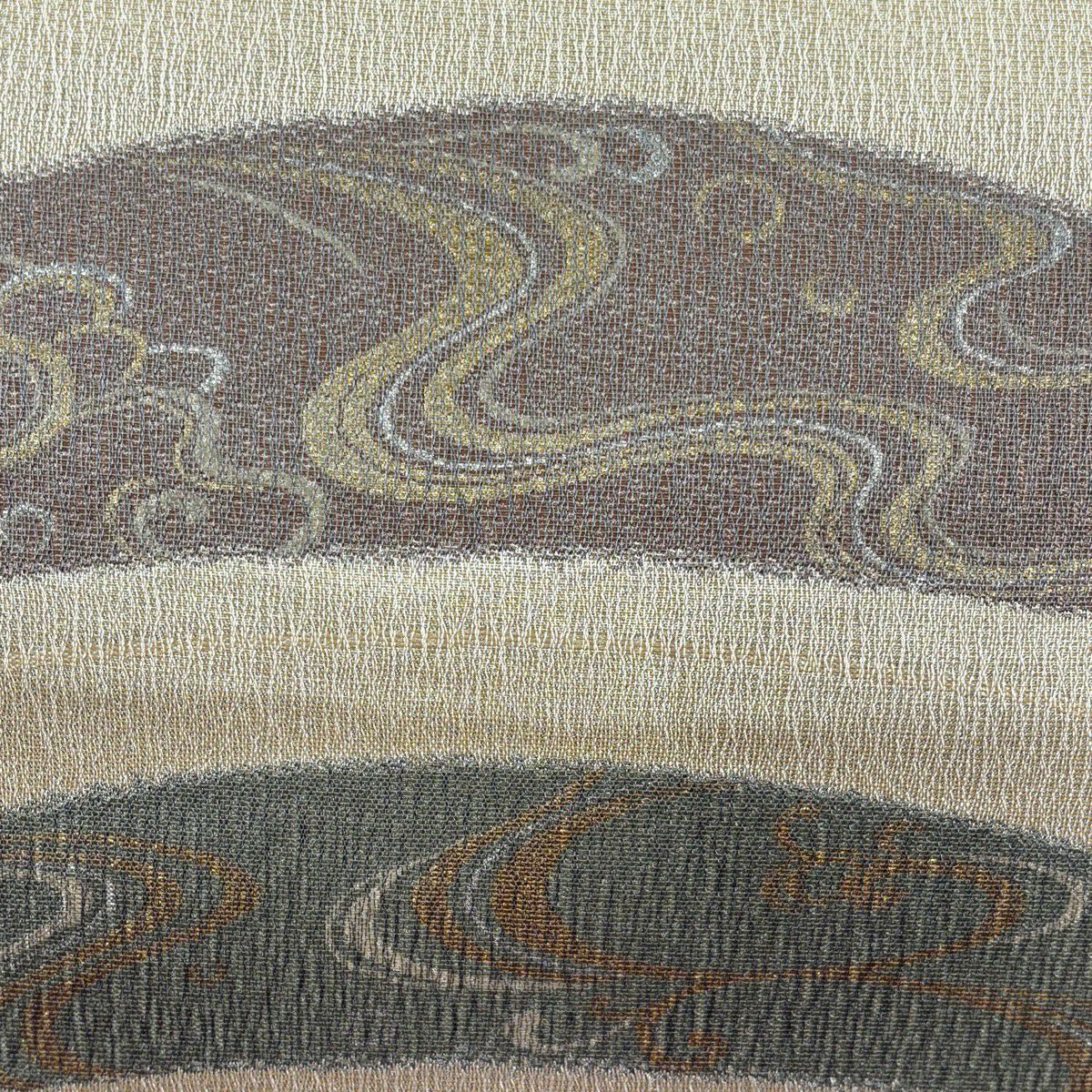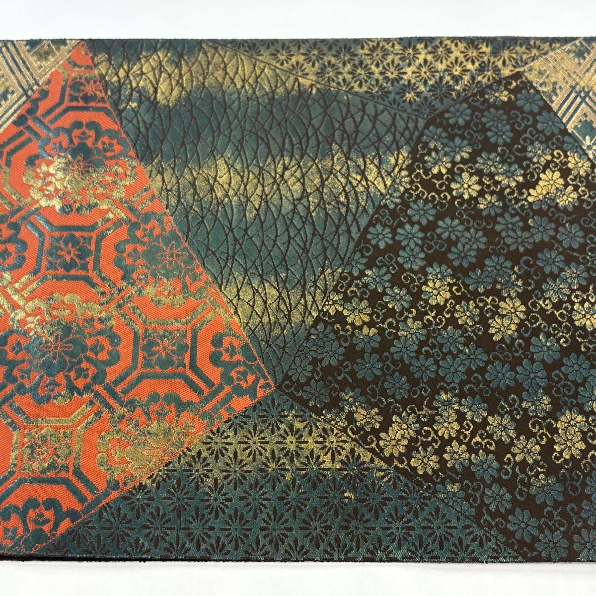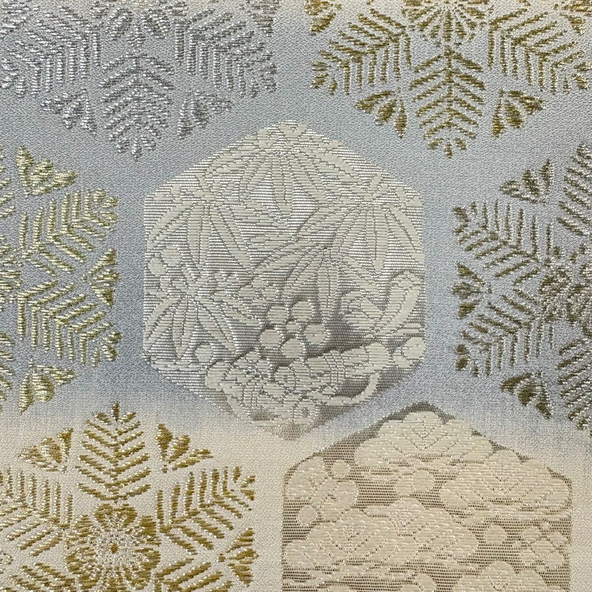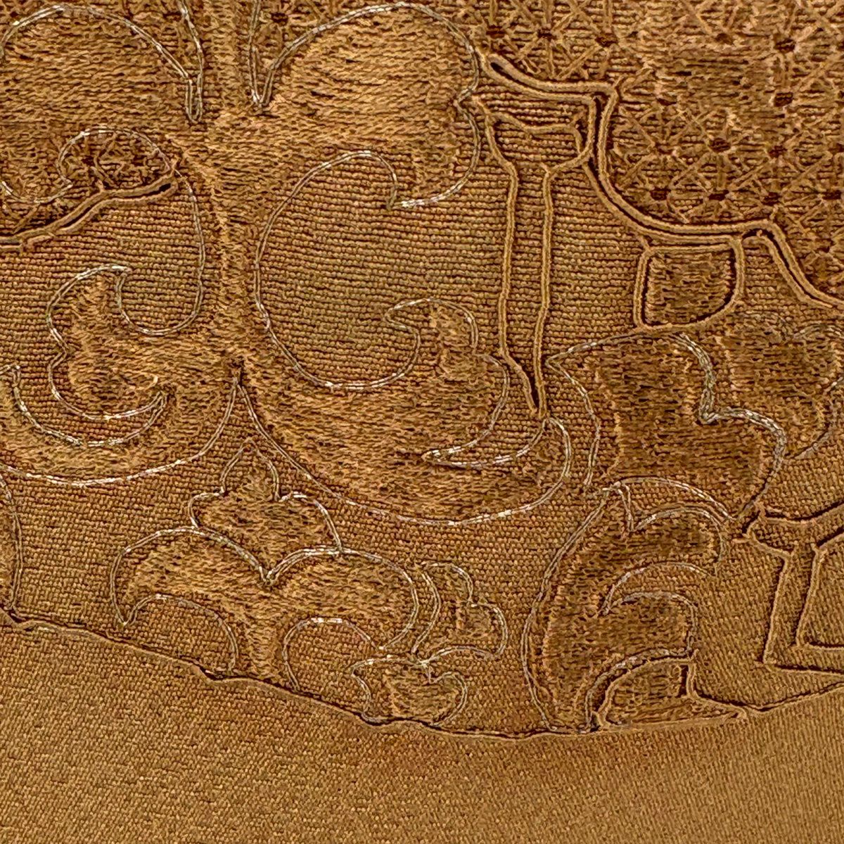 【美品】 袋帯 秀品 服部織物 落款あり こはく錦 手工芸 蜀江文 花唐草 金糸 箔 焦茶色 六通 正絹