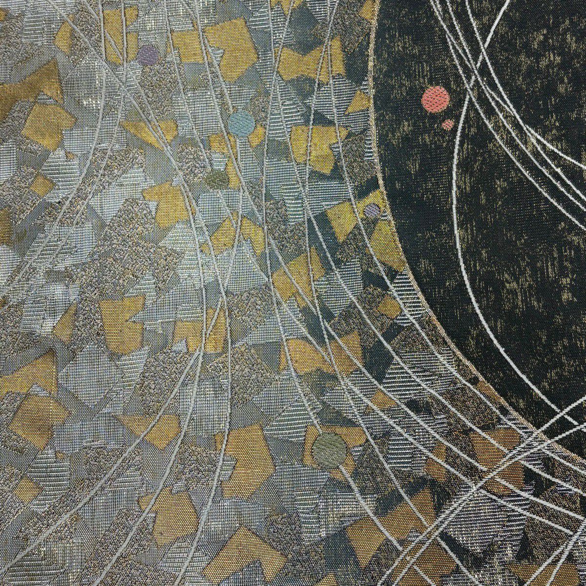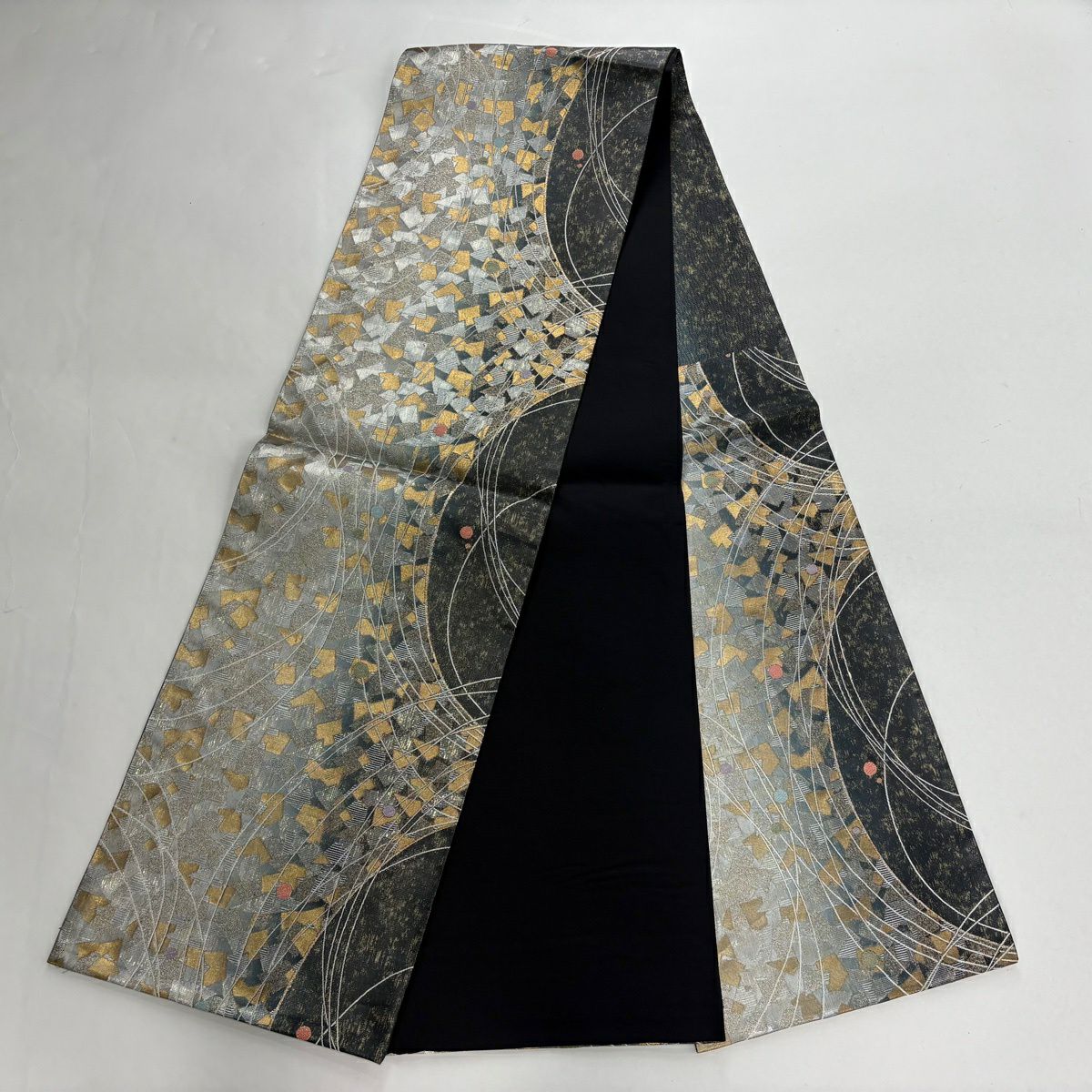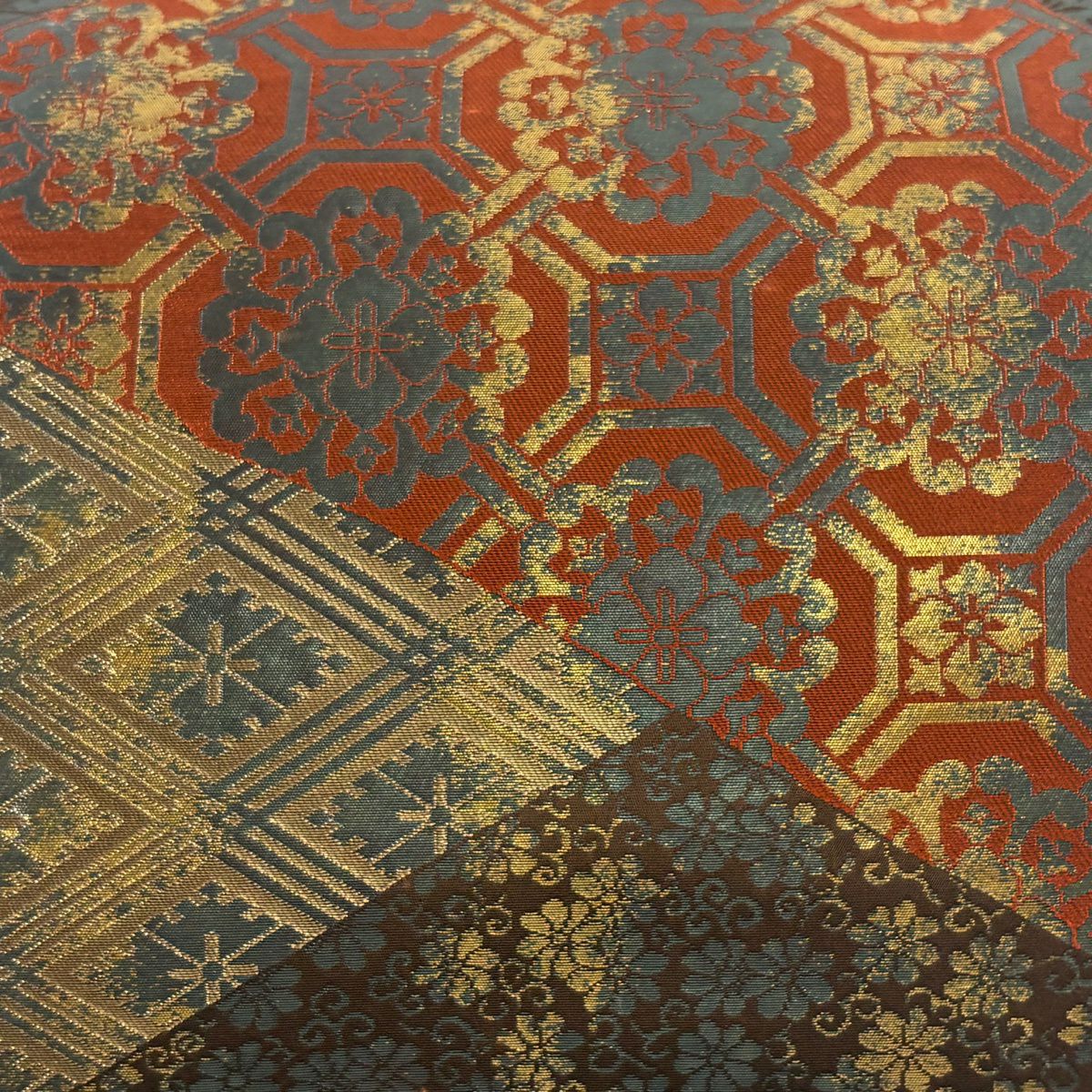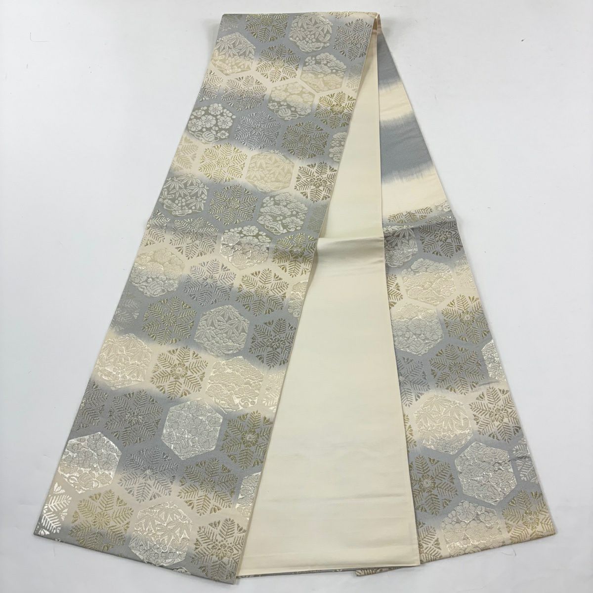 【美品】 袋帯 秀品 服部織物 落款あり こはく錦 手工芸 蜀江文 花唐草 金糸 箔 焦茶色 六通 正絹
