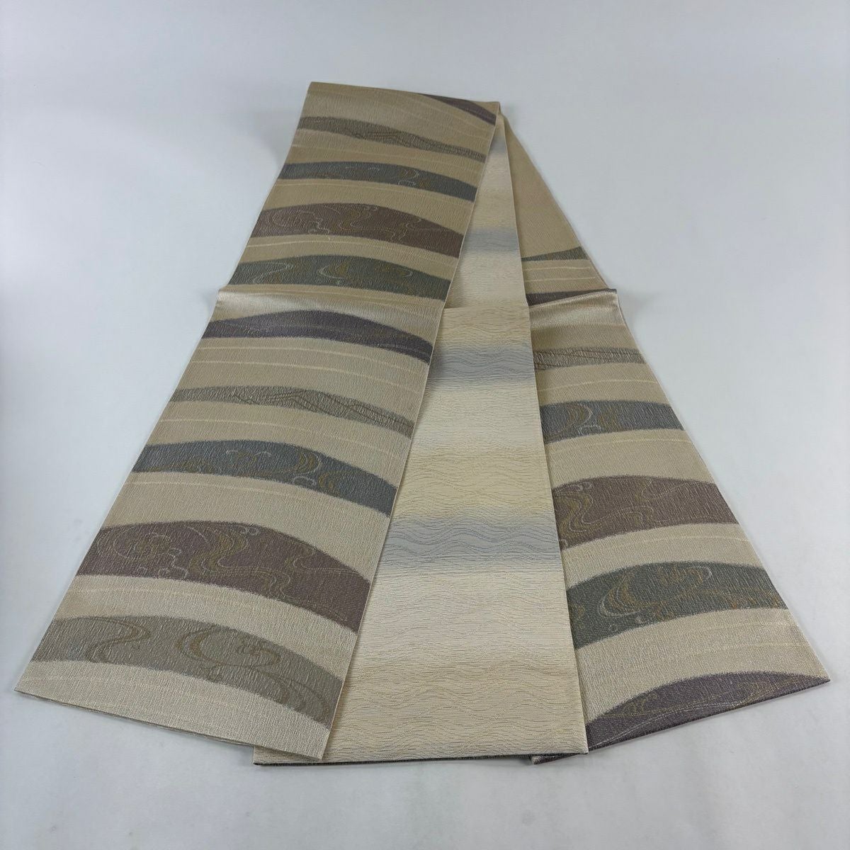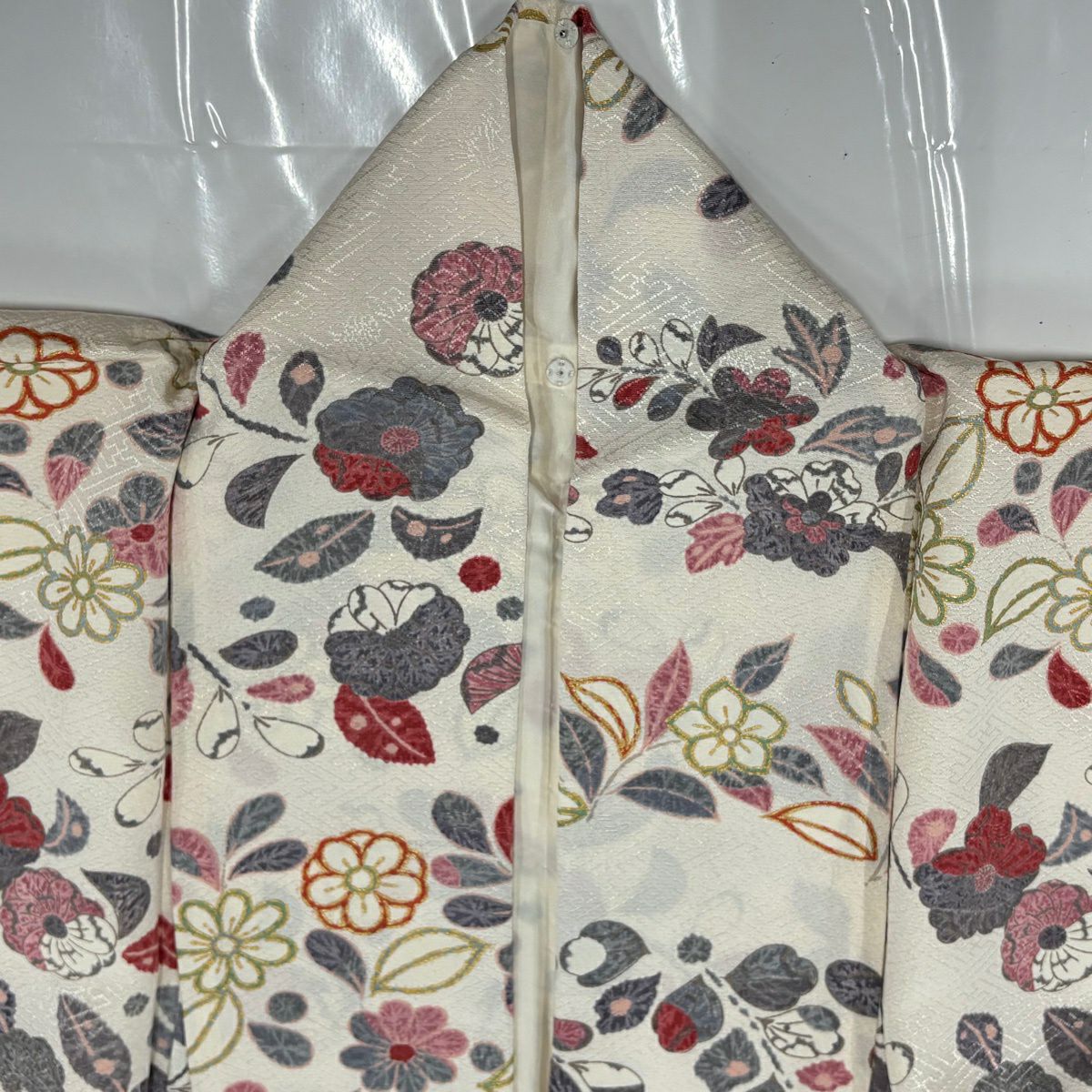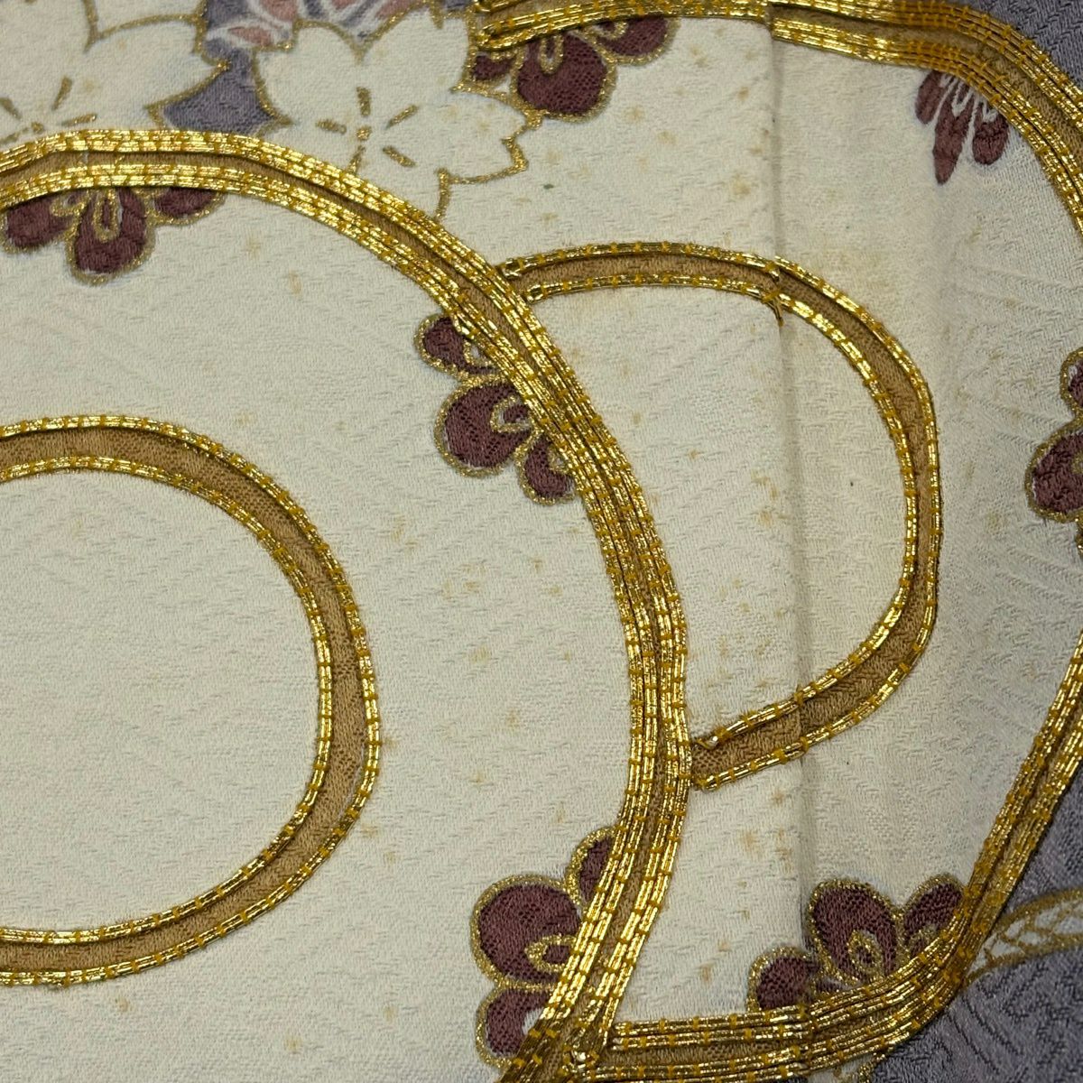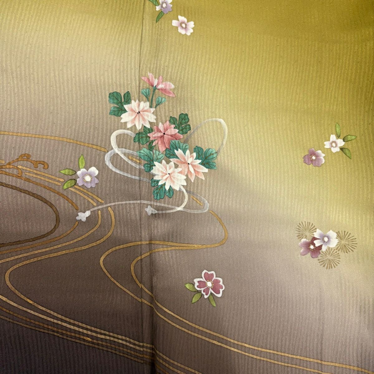 【美品】 訪問着 身丈156.5cm 裄丈62cm S 袷 草花 段縞 金彩 ぼかし クリーム 正絹 秀品