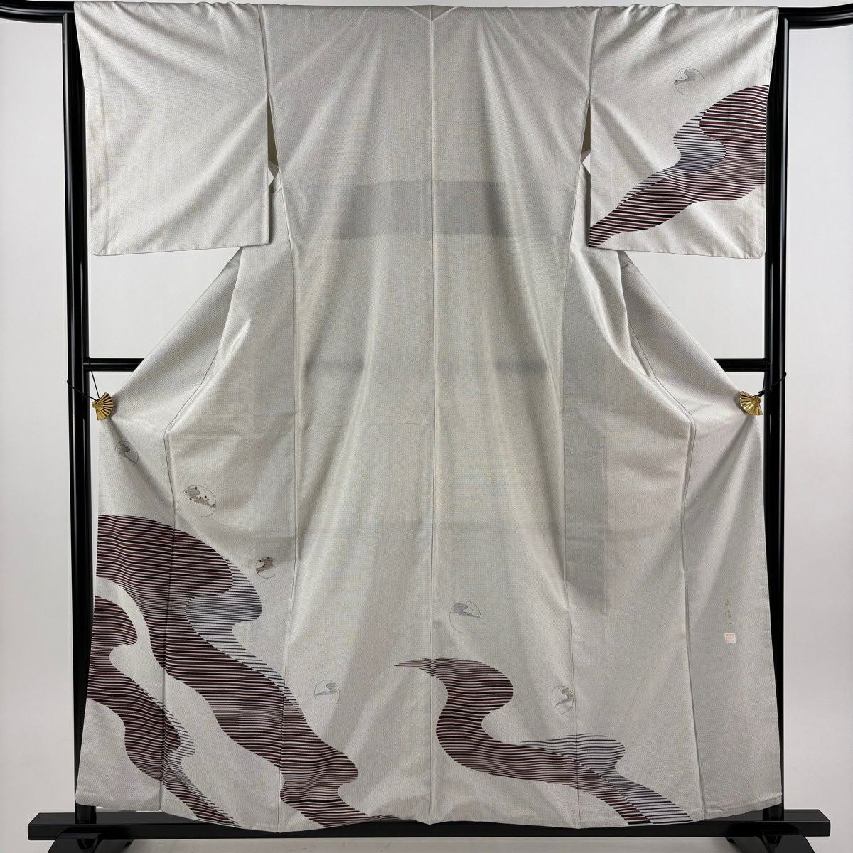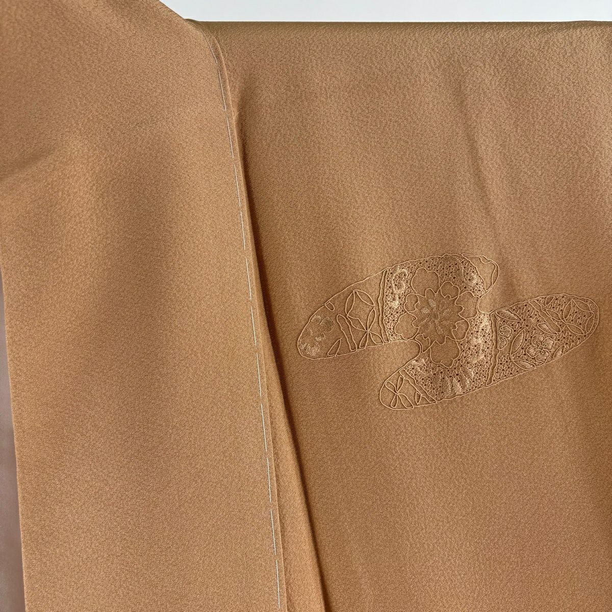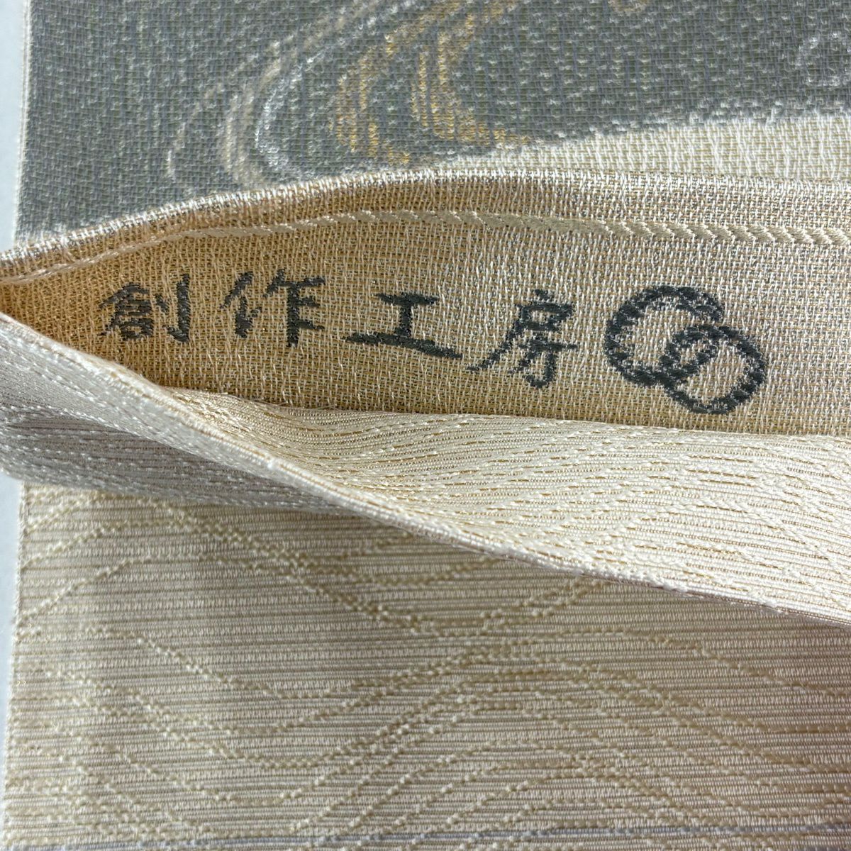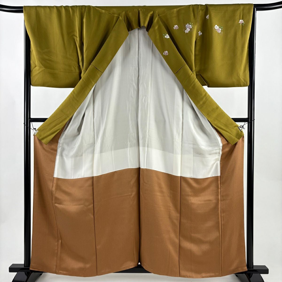 付下げ 身丈166.5cm 裄丈67.5cm L 袷 袋帯セット 鳳凰 花唐草 刺繍 銀糸 薄茶色 正絹 秀品