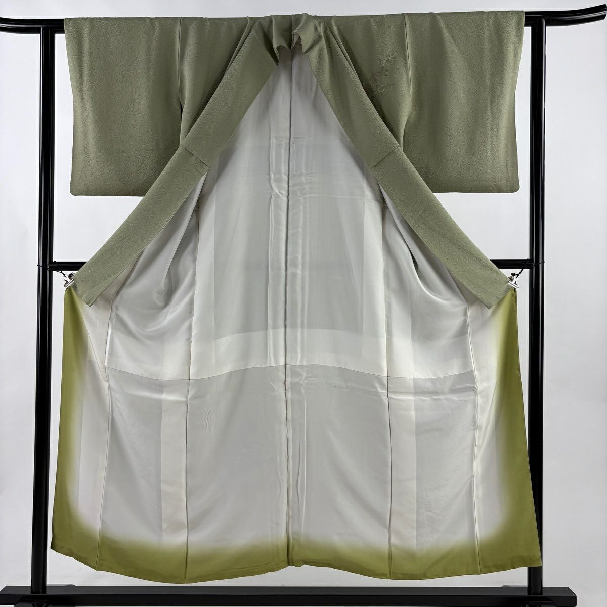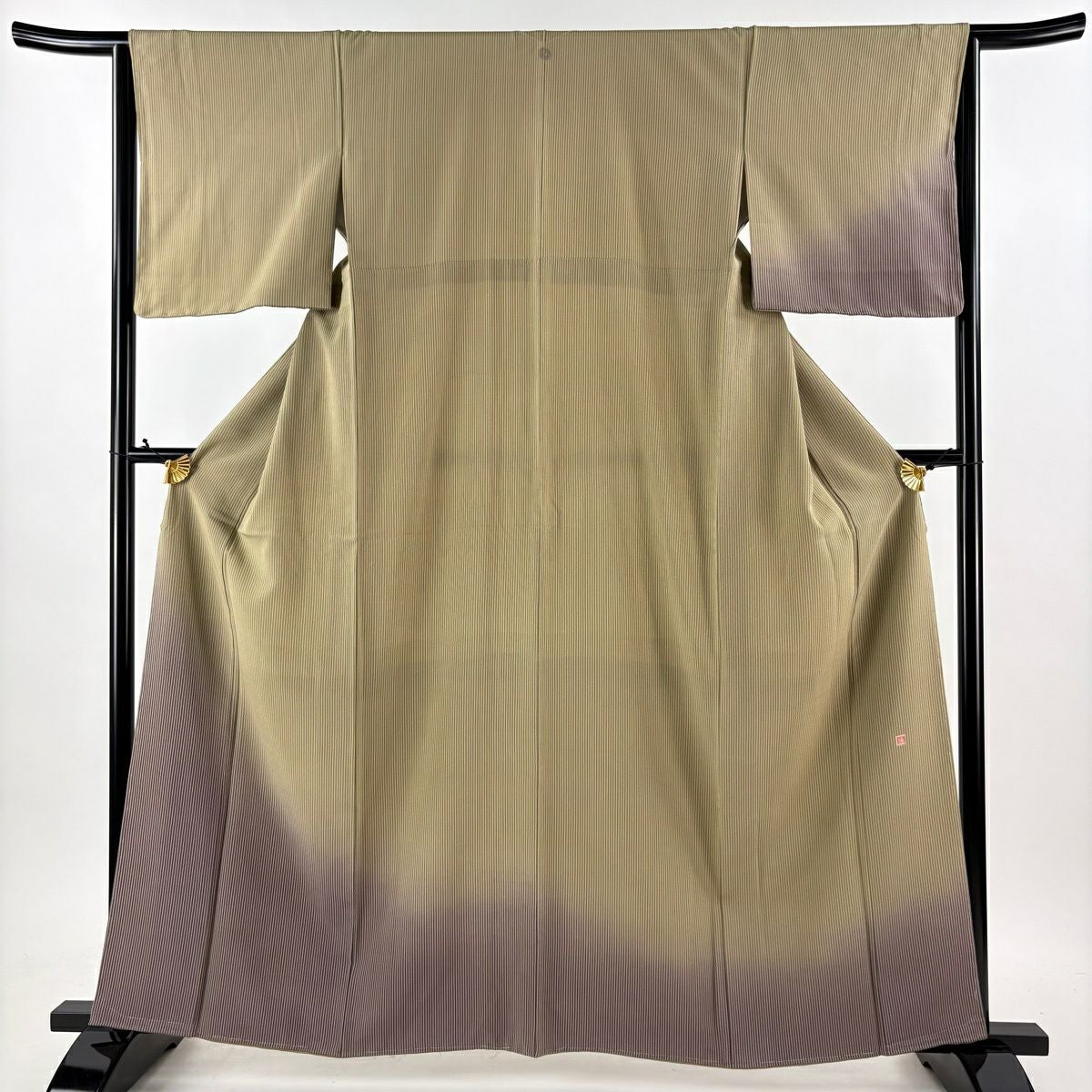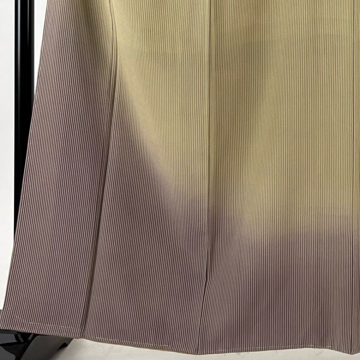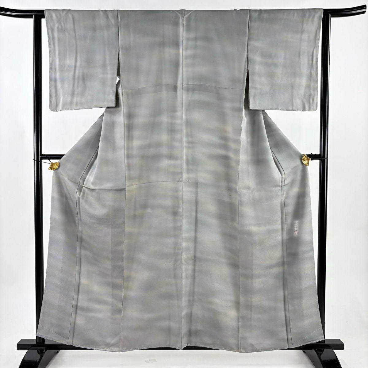 【美品】 付下げ 身丈162cm 裄丈64.5cm M 袷 落款あり 縞 ぼかし 灰緑 正絹 秀品 一つ紋