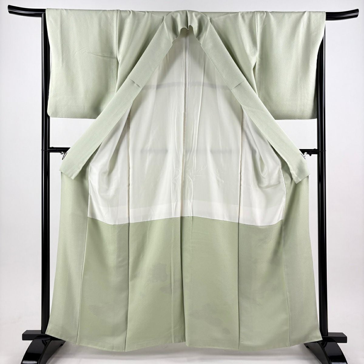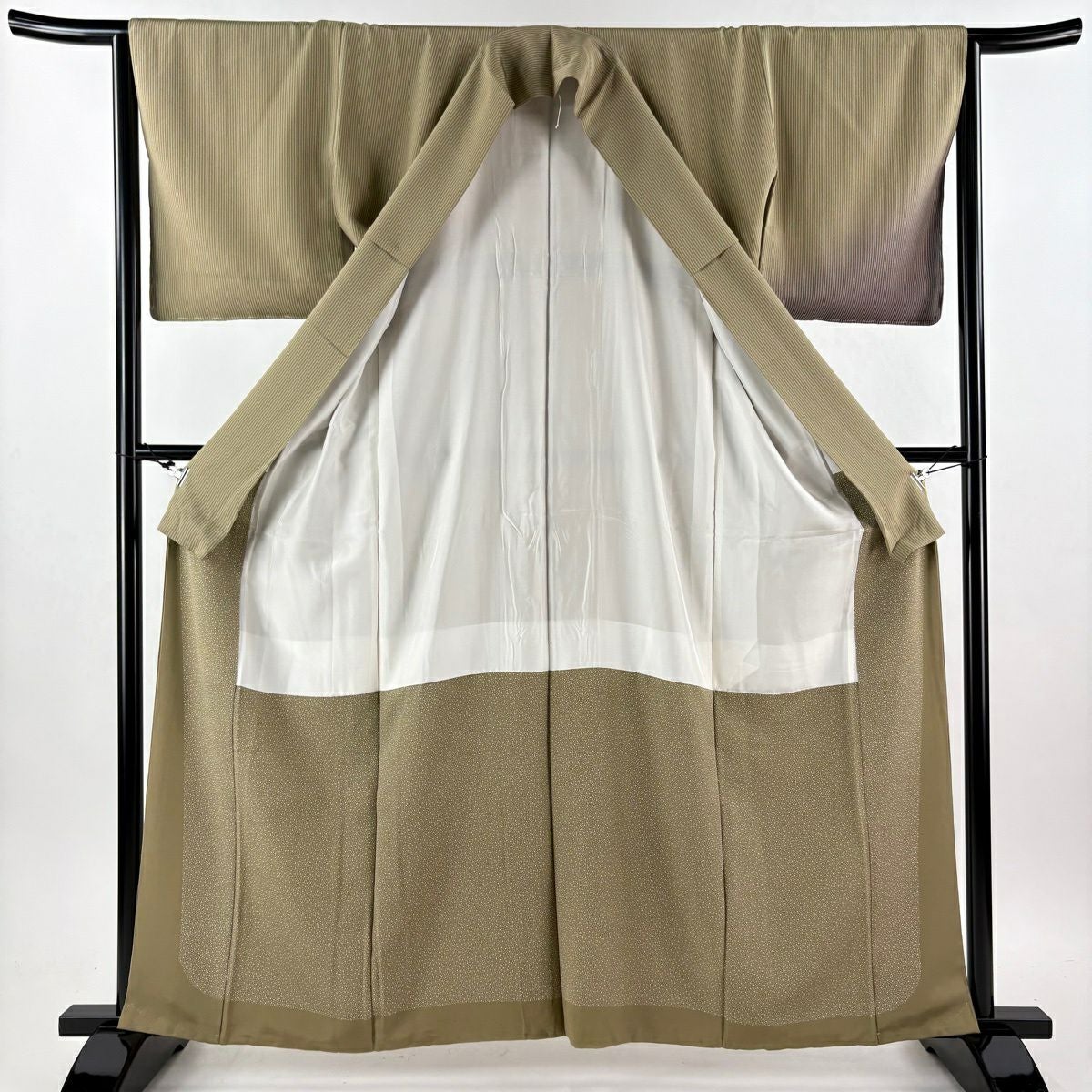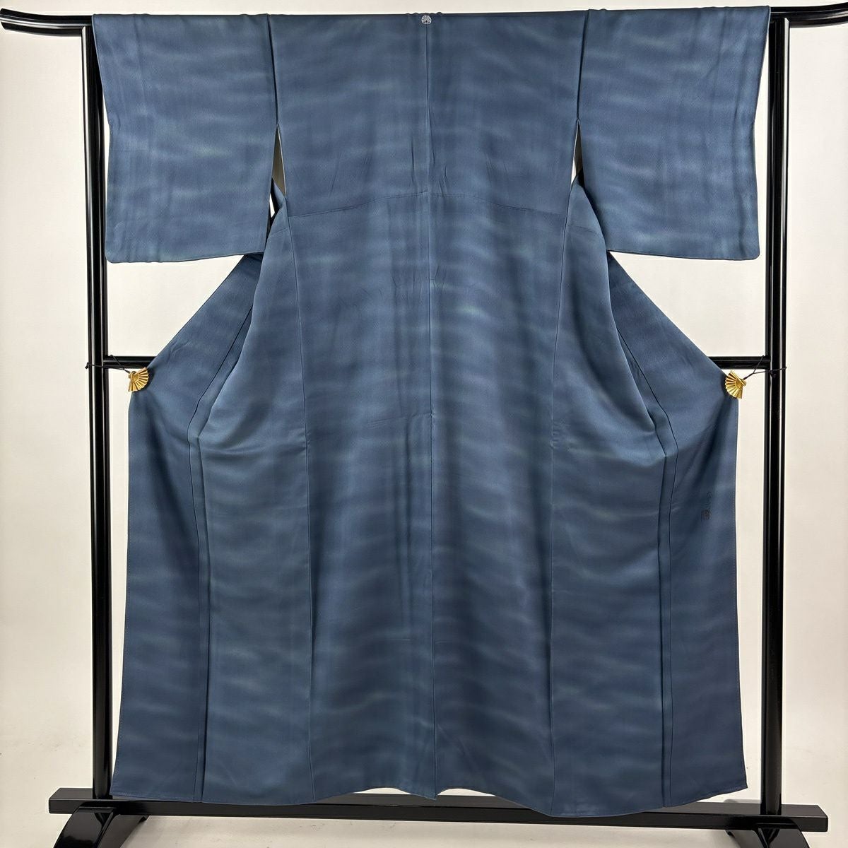【美品】 付下げ 身丈162cm 裄丈64.5cm M 袷 落款あり 縞 ぼかし 灰緑 正絹 秀品 一つ紋