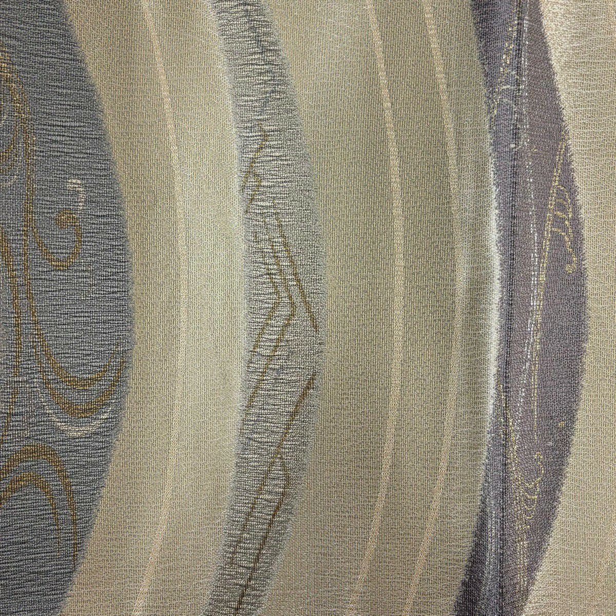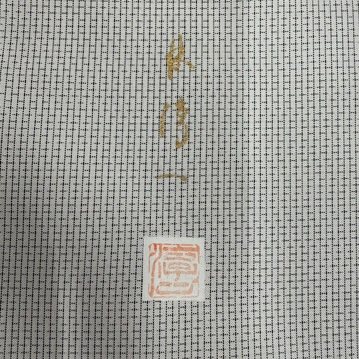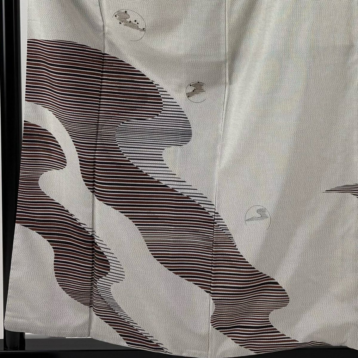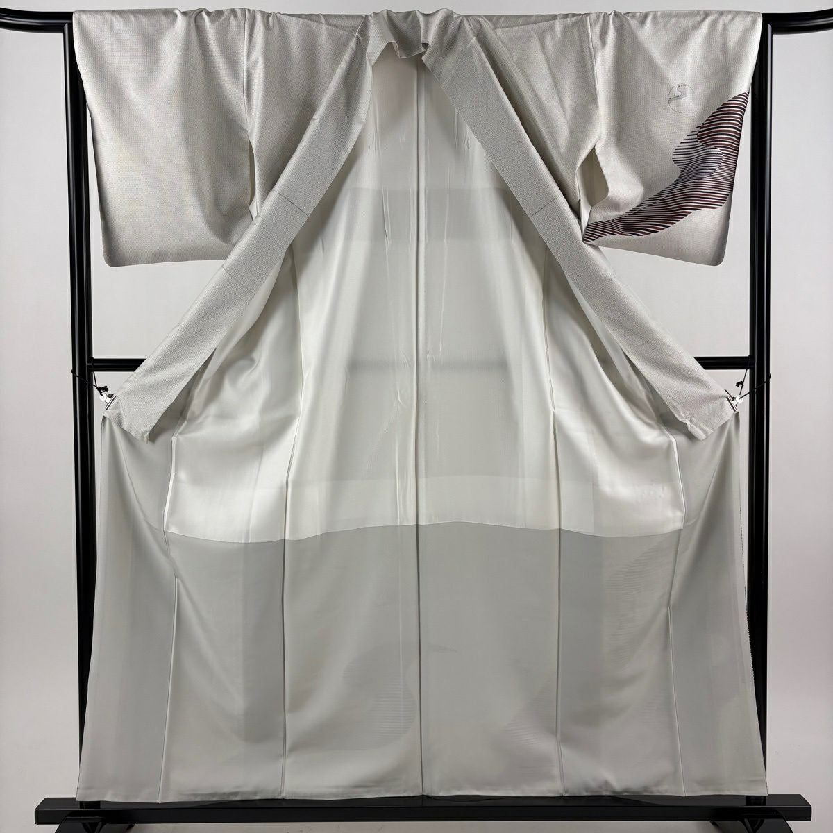 【美品】 付下げ 身丈162cm 裄丈64.5cm M 袷 落款あり 縞 ぼかし 灰緑 正絹 秀品 一つ紋