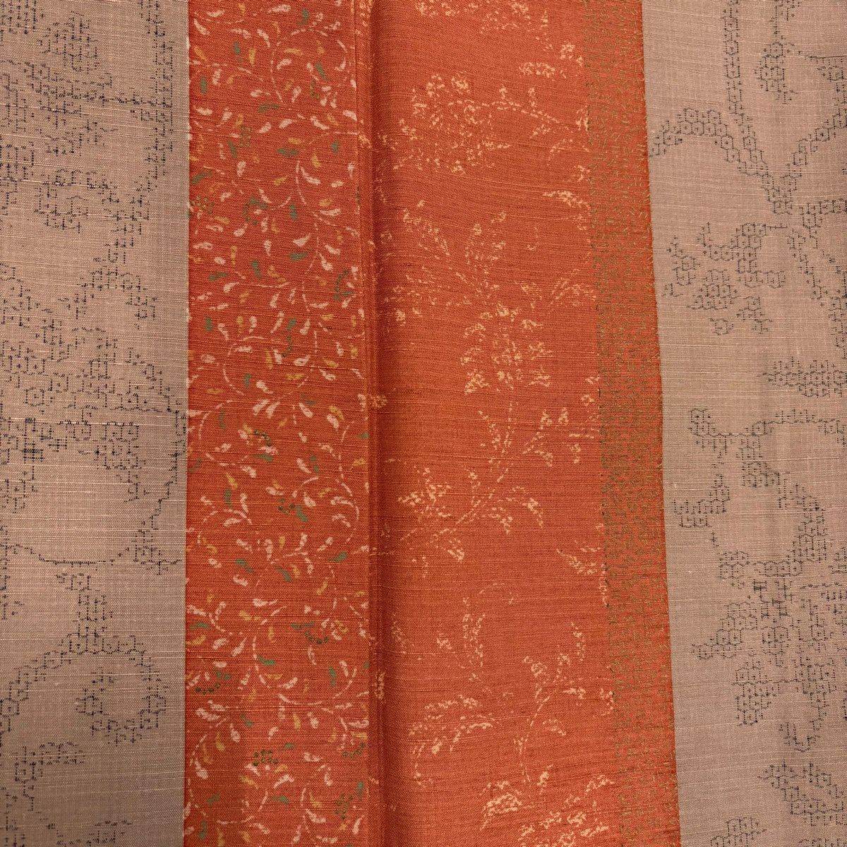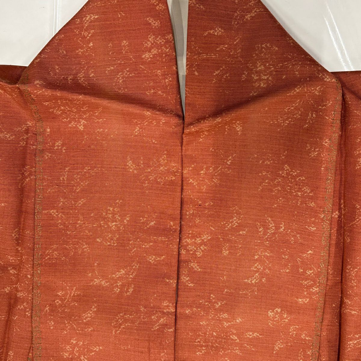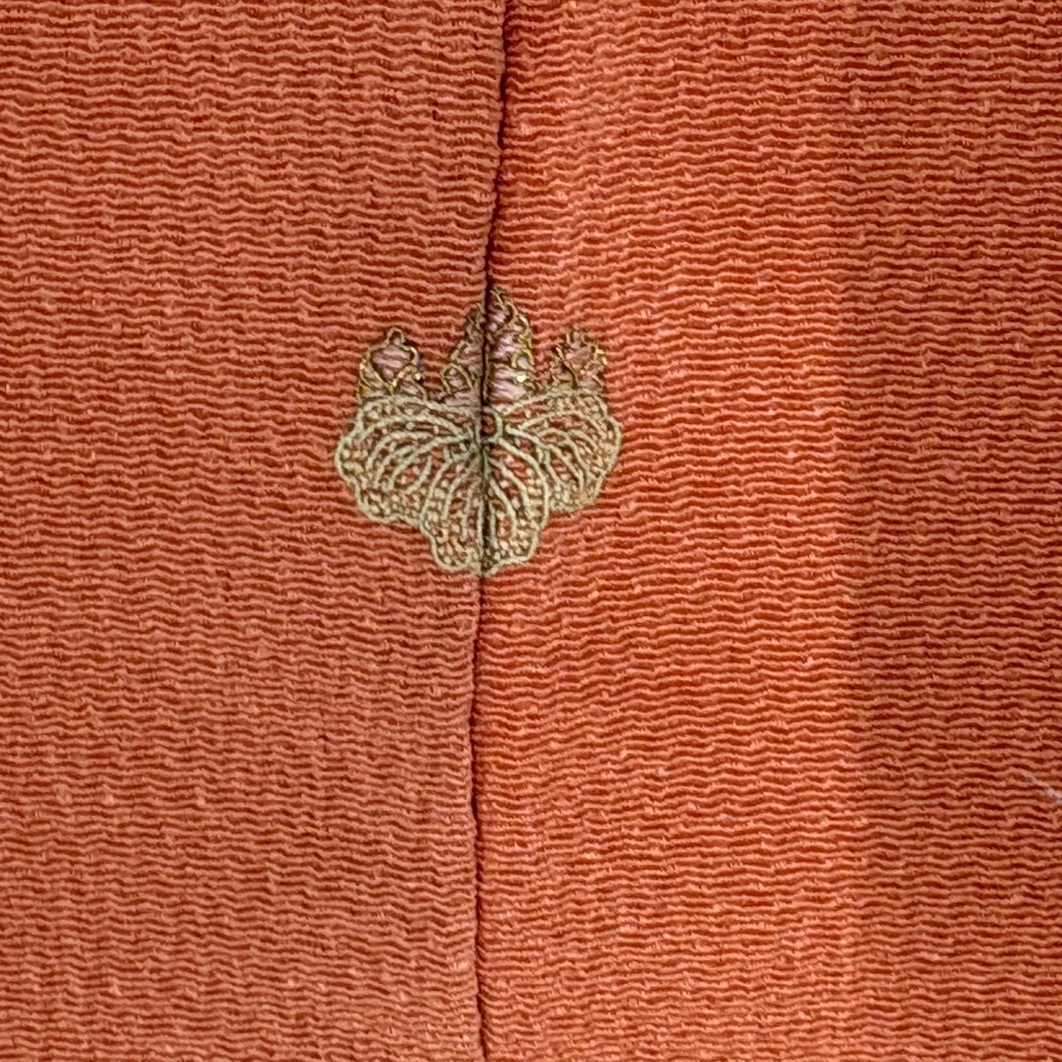 【美品】 付下げ 身丈159.5cm 裄丈65cm M 袷 紬地 草花 雲文 刺繍 薄オレンジ 正絹 秀品