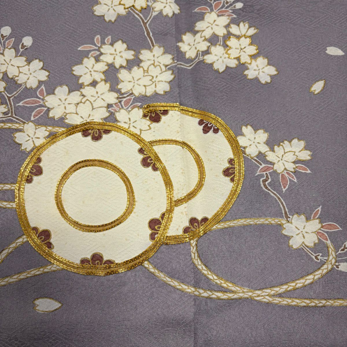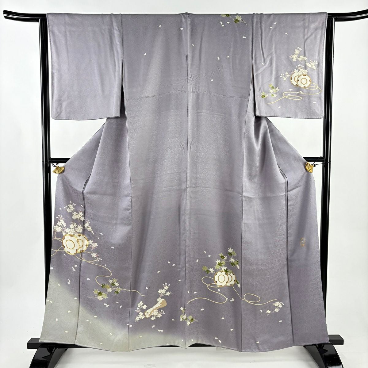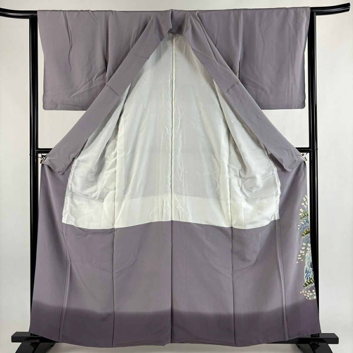 色留袖 身丈163.5cm 裄丈67cm M 袷 落款あり 松竹梅 霞 金糸 金彩 灰紫 正絹 秀品 一つ紋