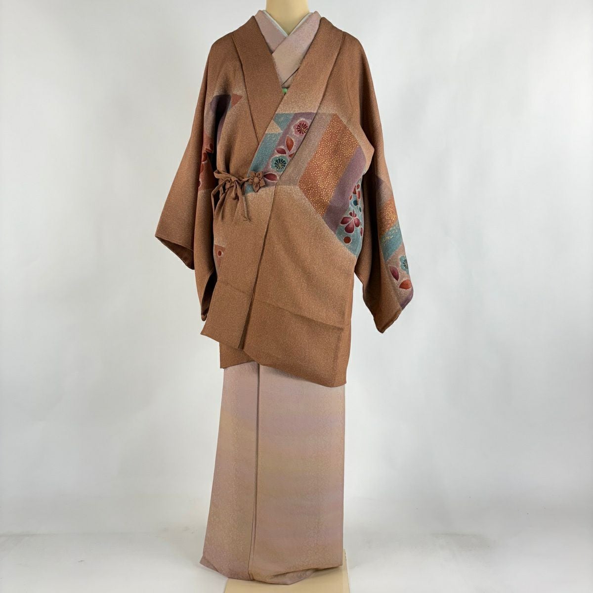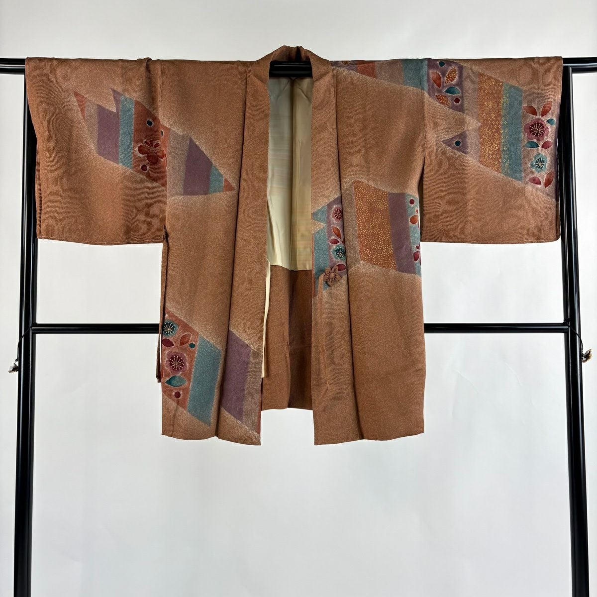 【美品】 道行 身丈83cm 裄丈61cm S 和装コート 角衿 うさぎ 地紋 金銀彩 焦茶色 正絹 秀品