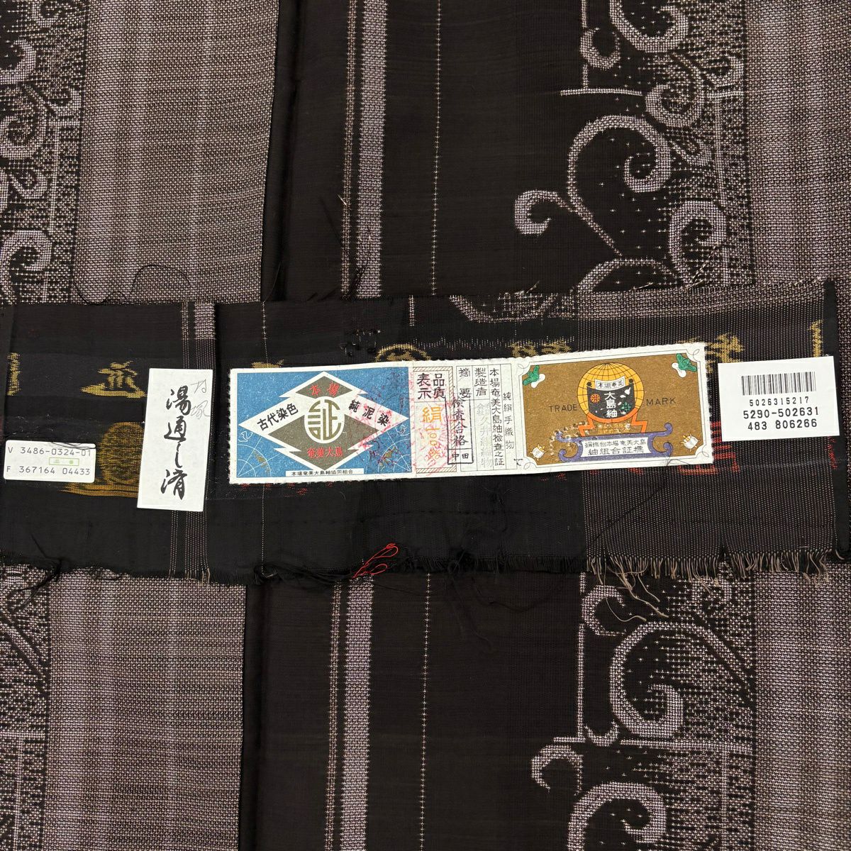 【美品】 大島紬 身丈163.5cm 裄丈65cm M 袷 証紙あり 草花 ヱ霞 純泥染 焦茶色 正絹 秀品