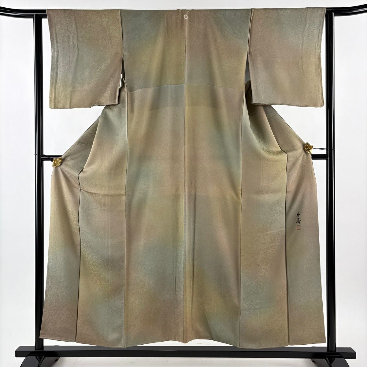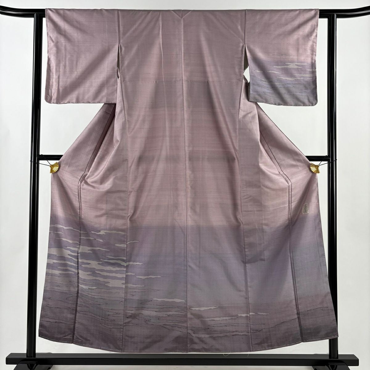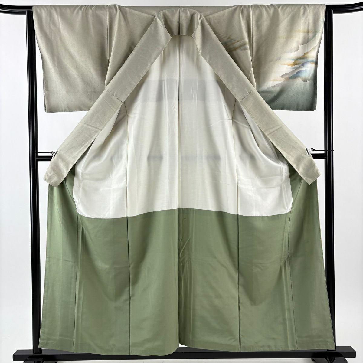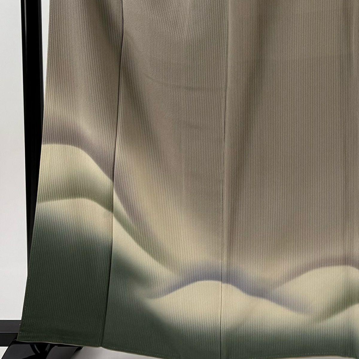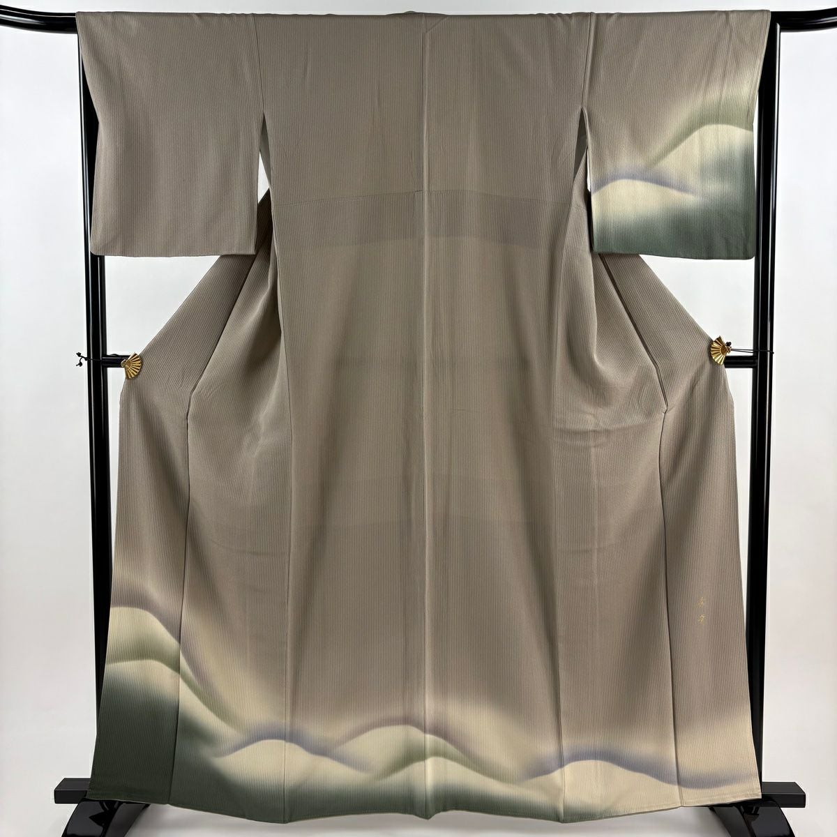 付下げ 身丈162cm 裄丈66cm M 袷 落款あり 縦縞模様 山並み ぼかし 灰茶 正絹 秀品 一つ紋