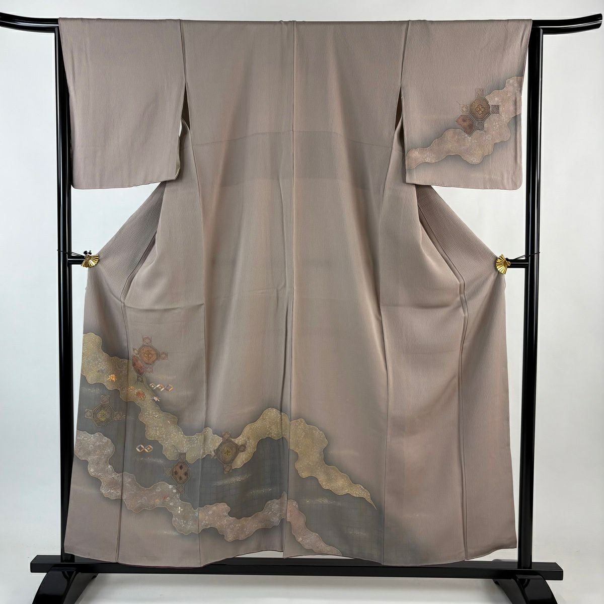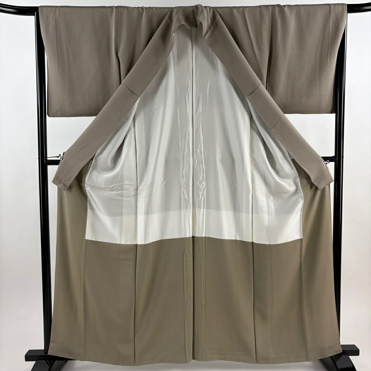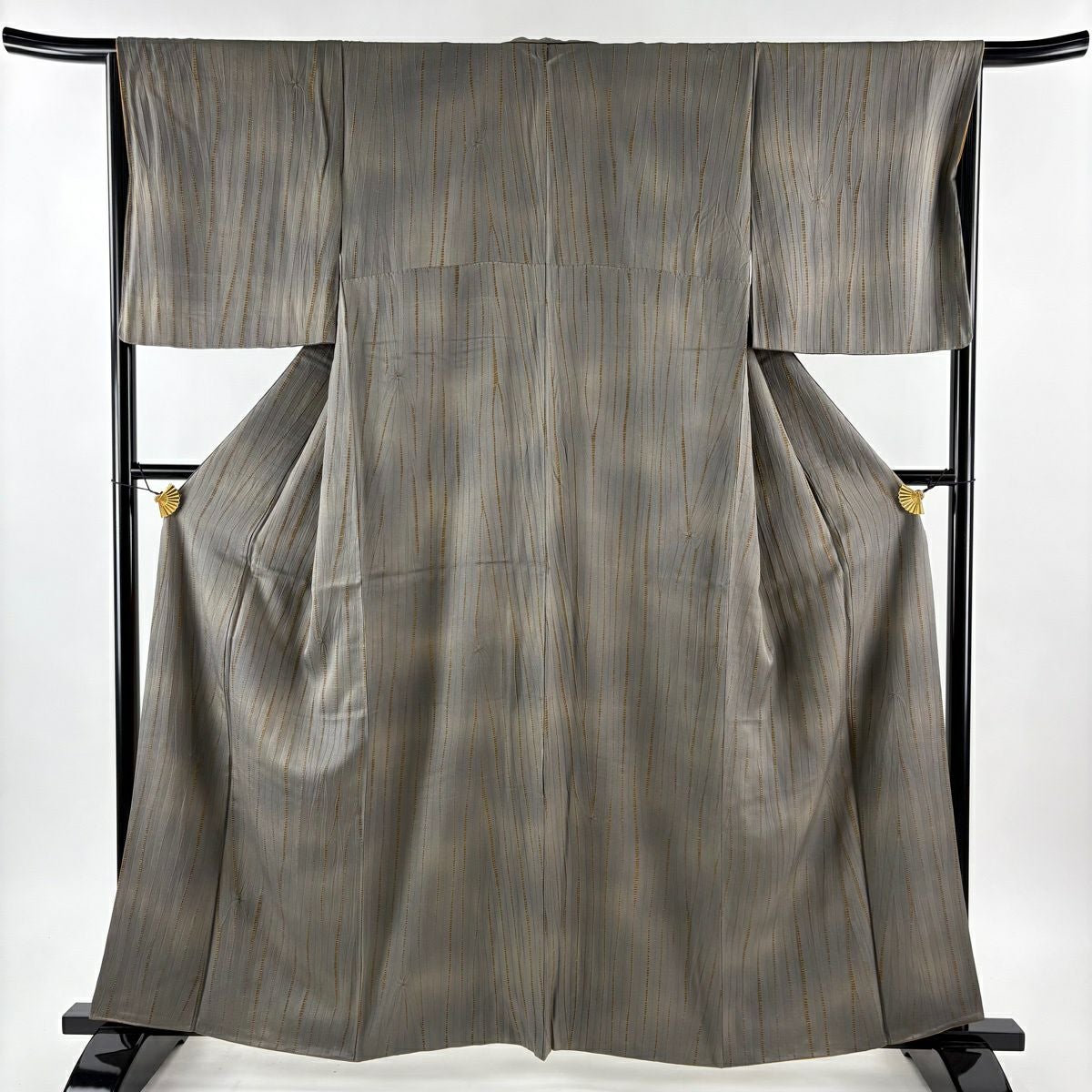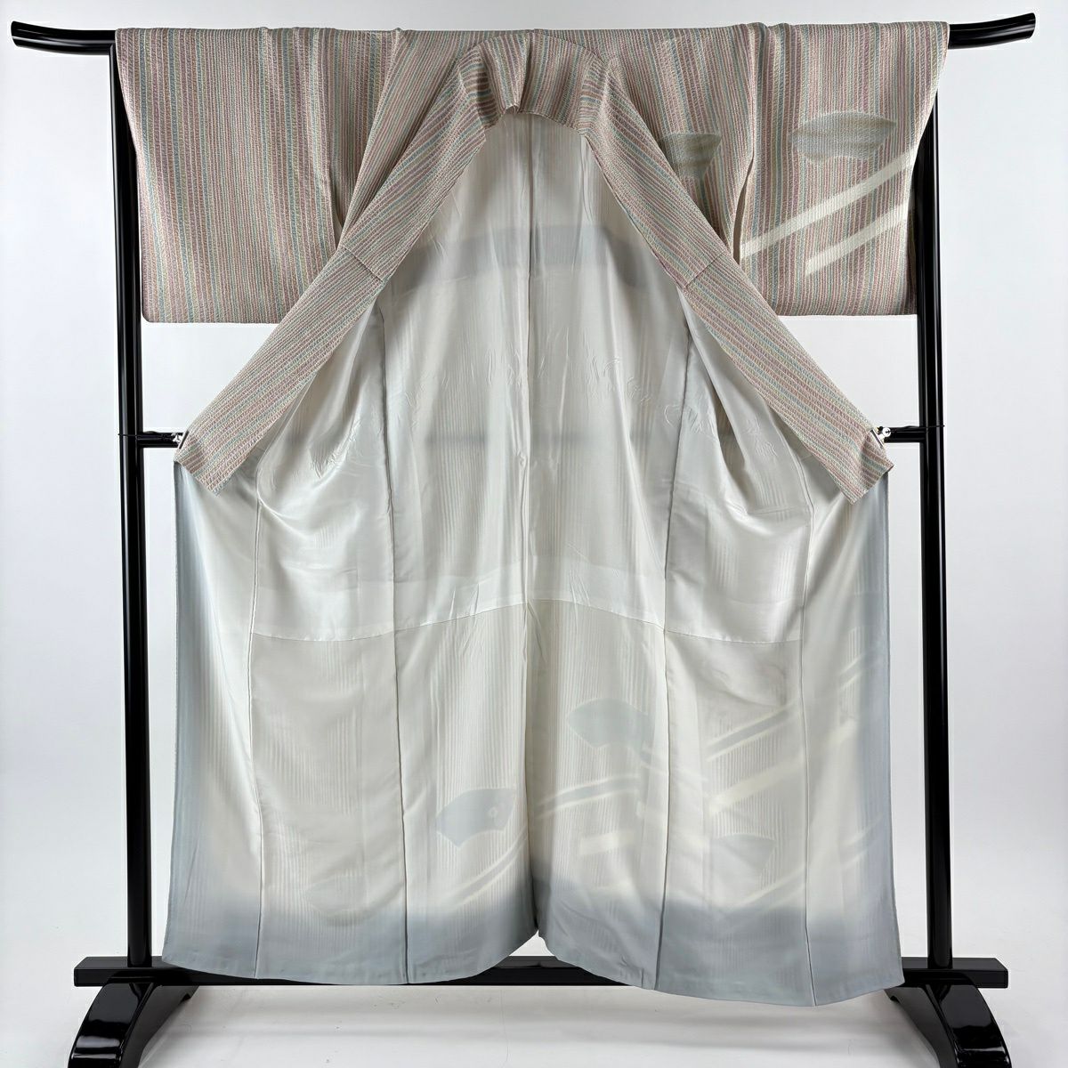 付下げ 身丈162cm 裄丈66cm M 袷 落款あり 縦縞模様 山並み ぼかし 灰茶 正絹 秀品 一つ紋