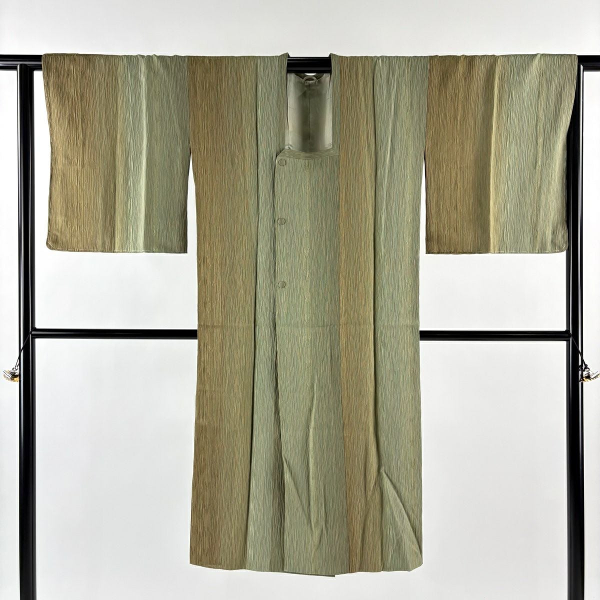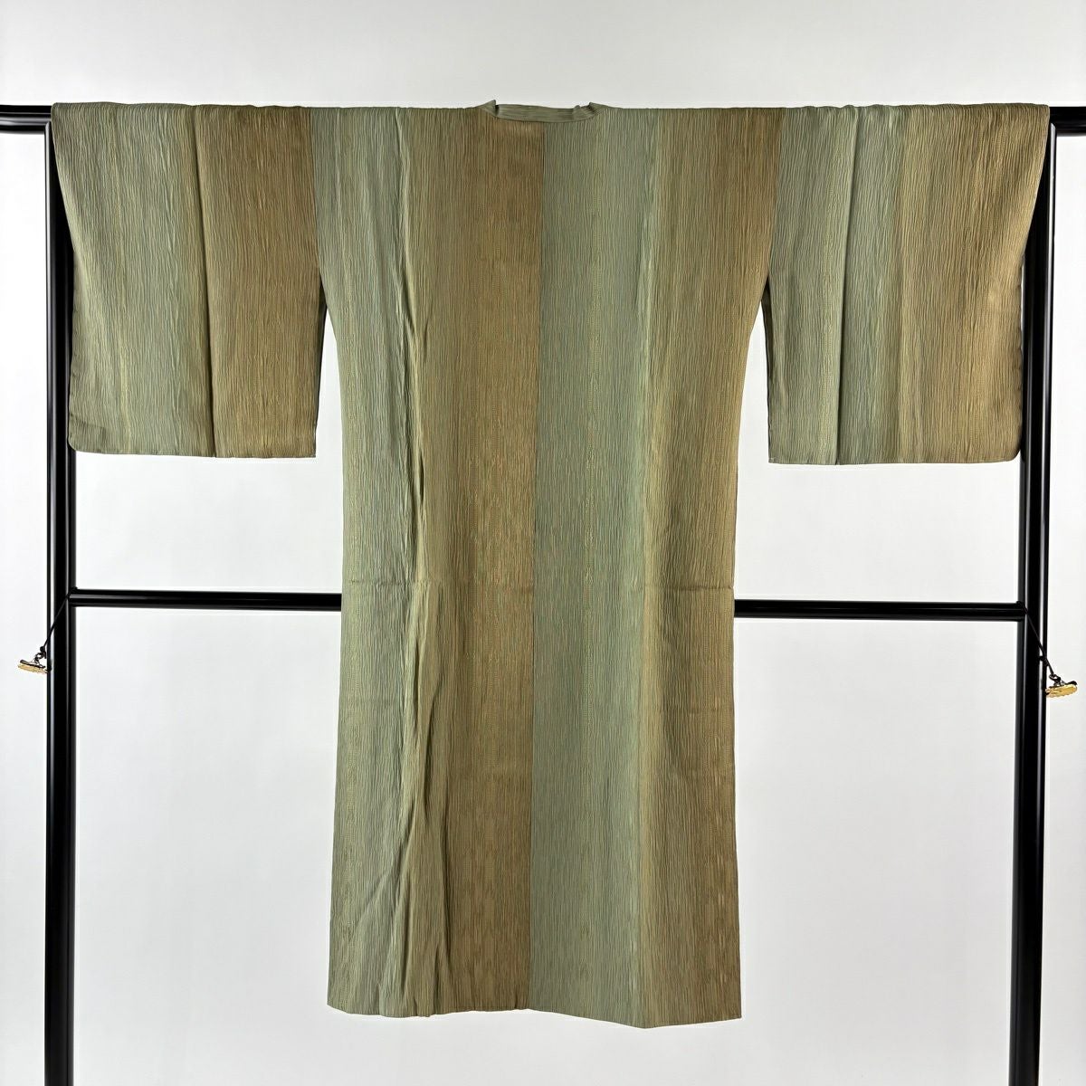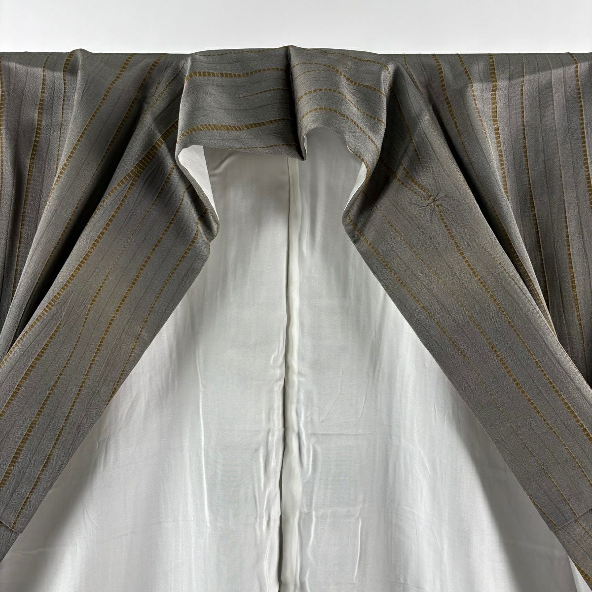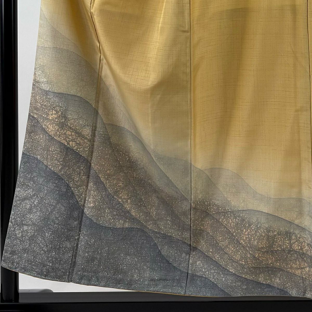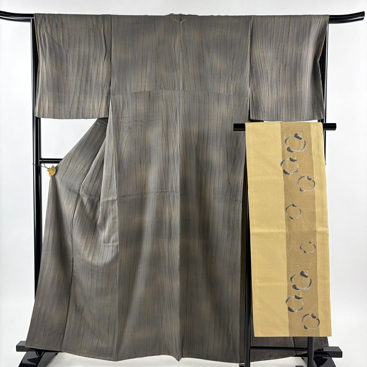 付下げ 身丈162cm 裄丈66cm M 袷 落款あり 縦縞模様 山並み ぼかし 灰茶 正絹 秀品 一つ紋
