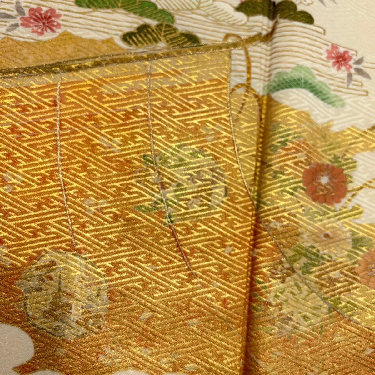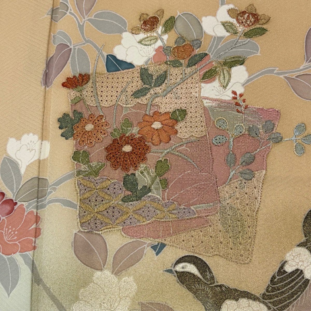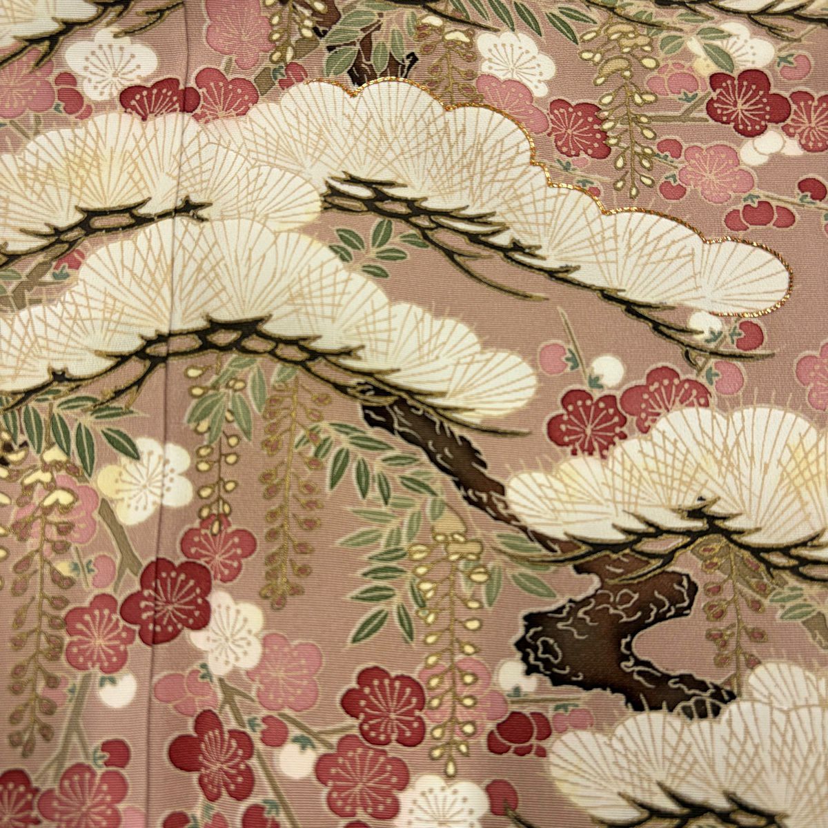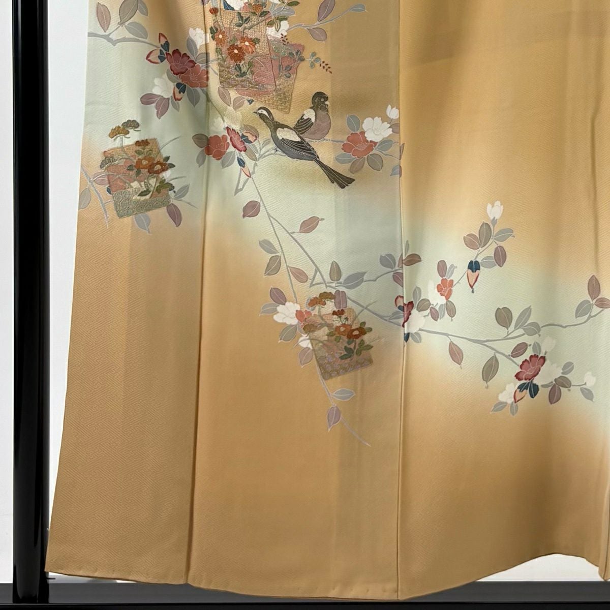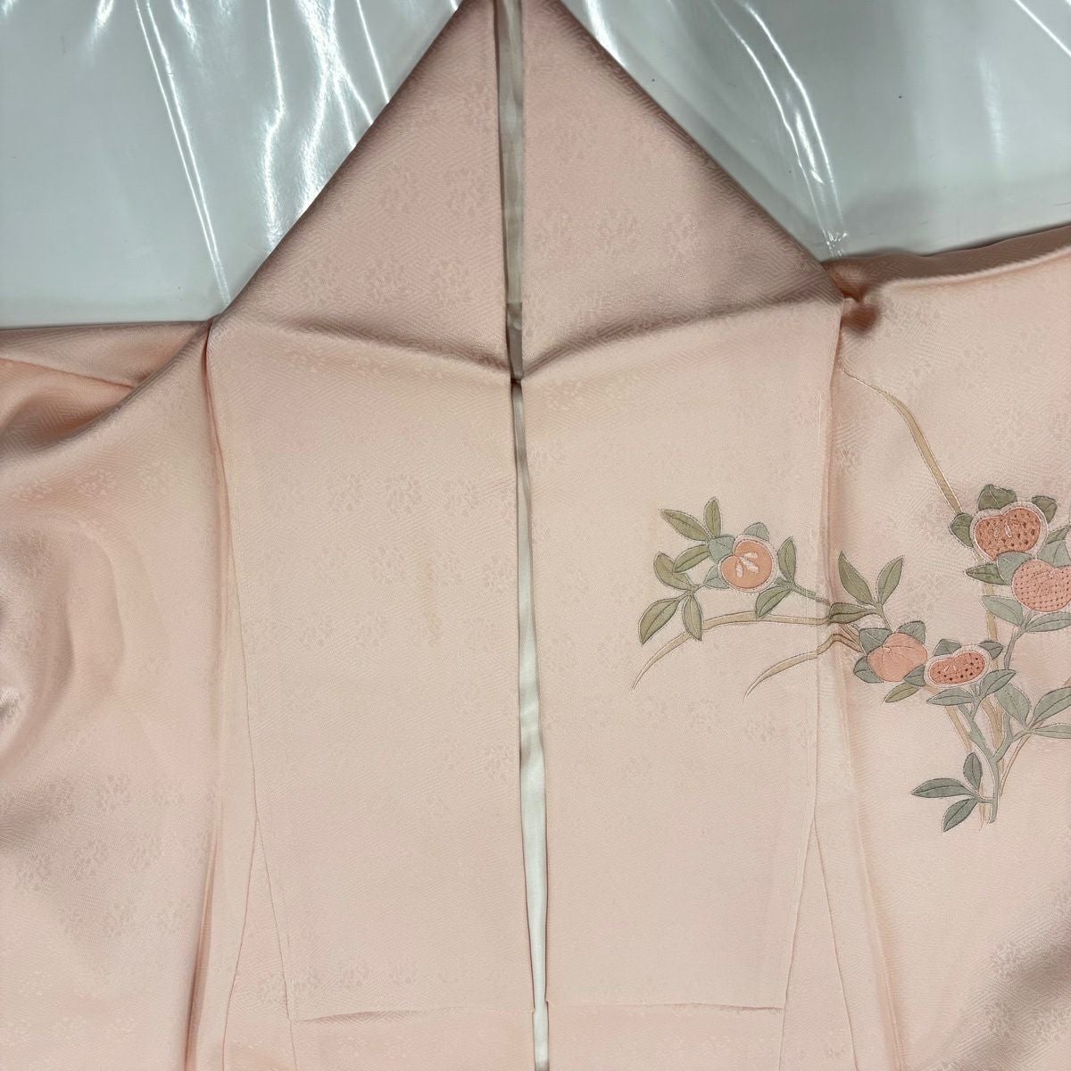 色留袖 身丈161.5cm 裄丈65cm M 袷 松 鳥 金糸 金彩 ピンクベージュ 正絹 秀品 一つ紋